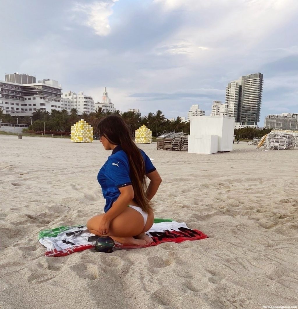 Claudia exibiu suas curvas e bronzeado na praia usando a camisa oficial antes do jogo Euro 2020 Itália – Suíça.