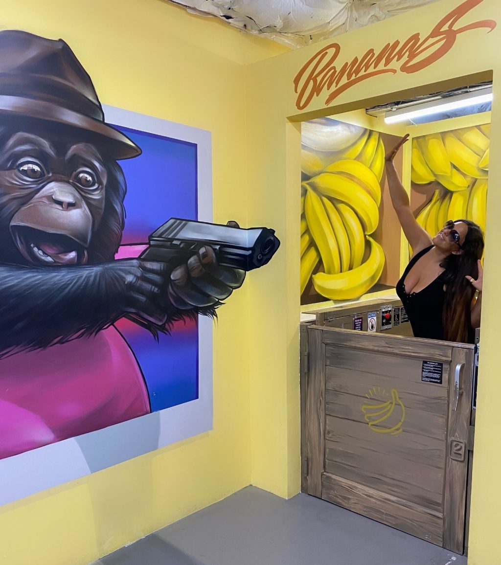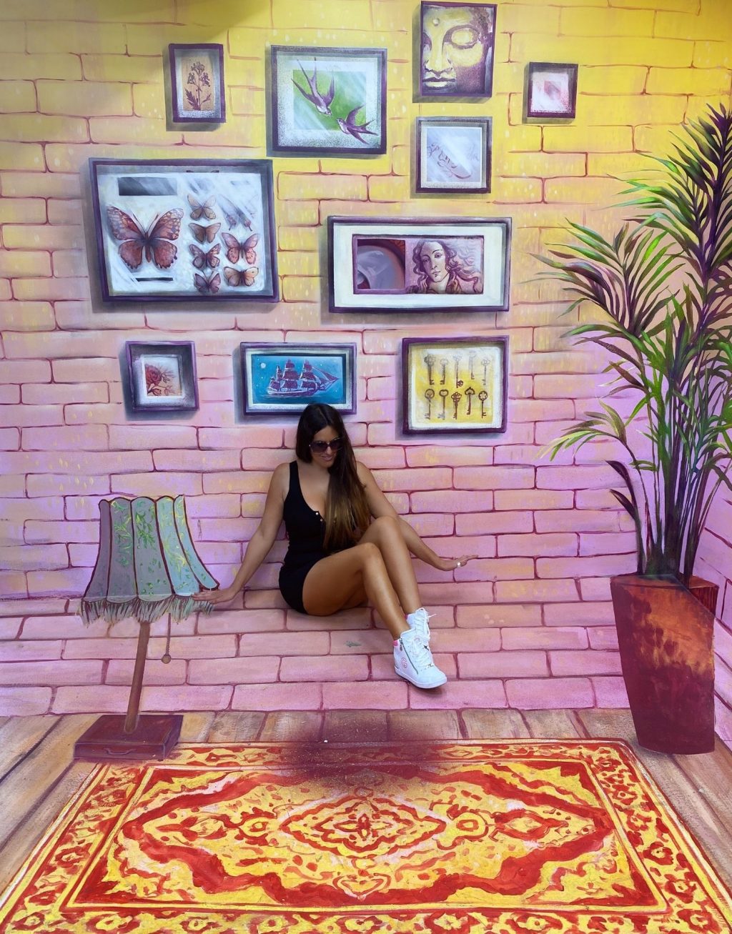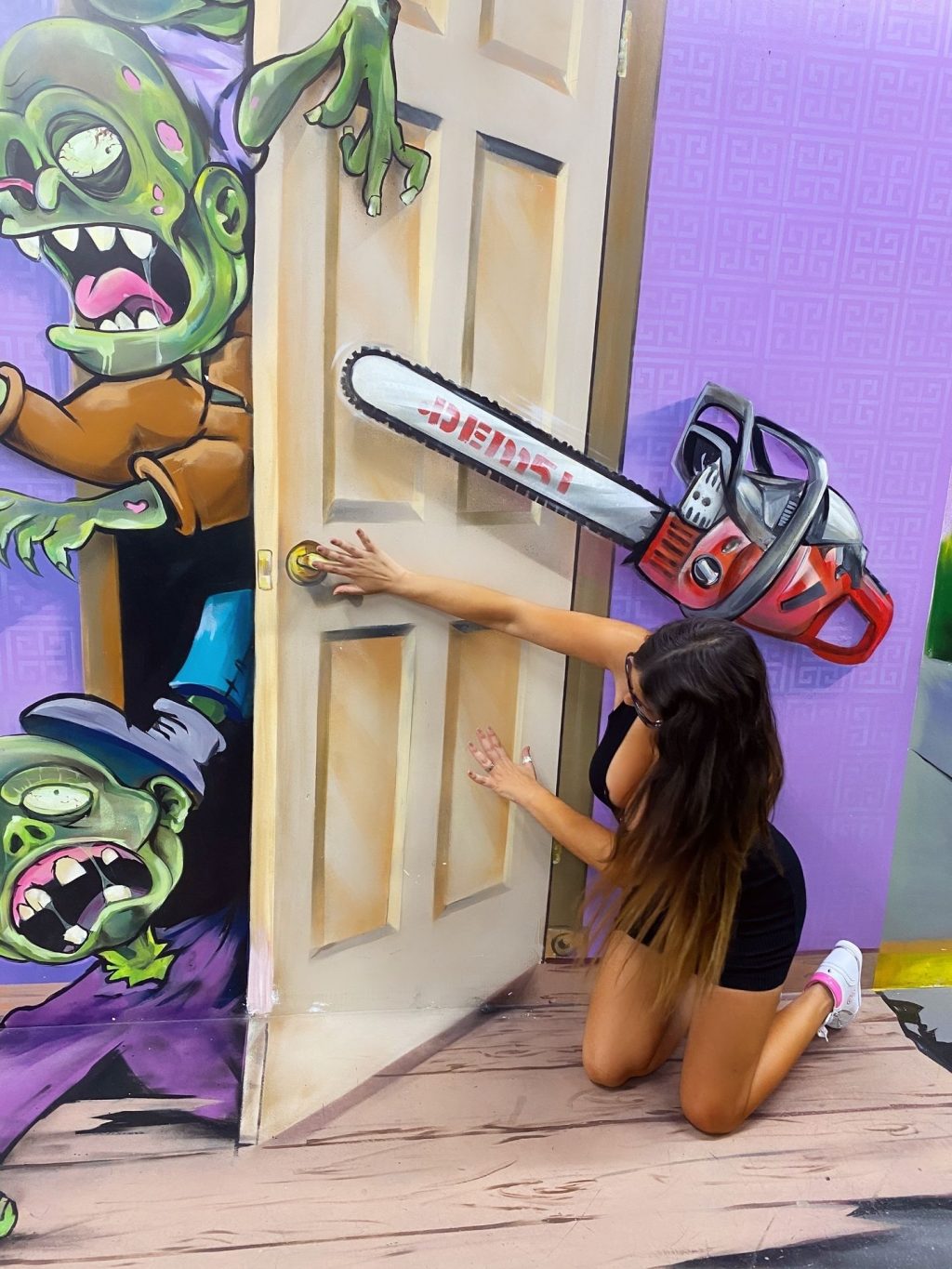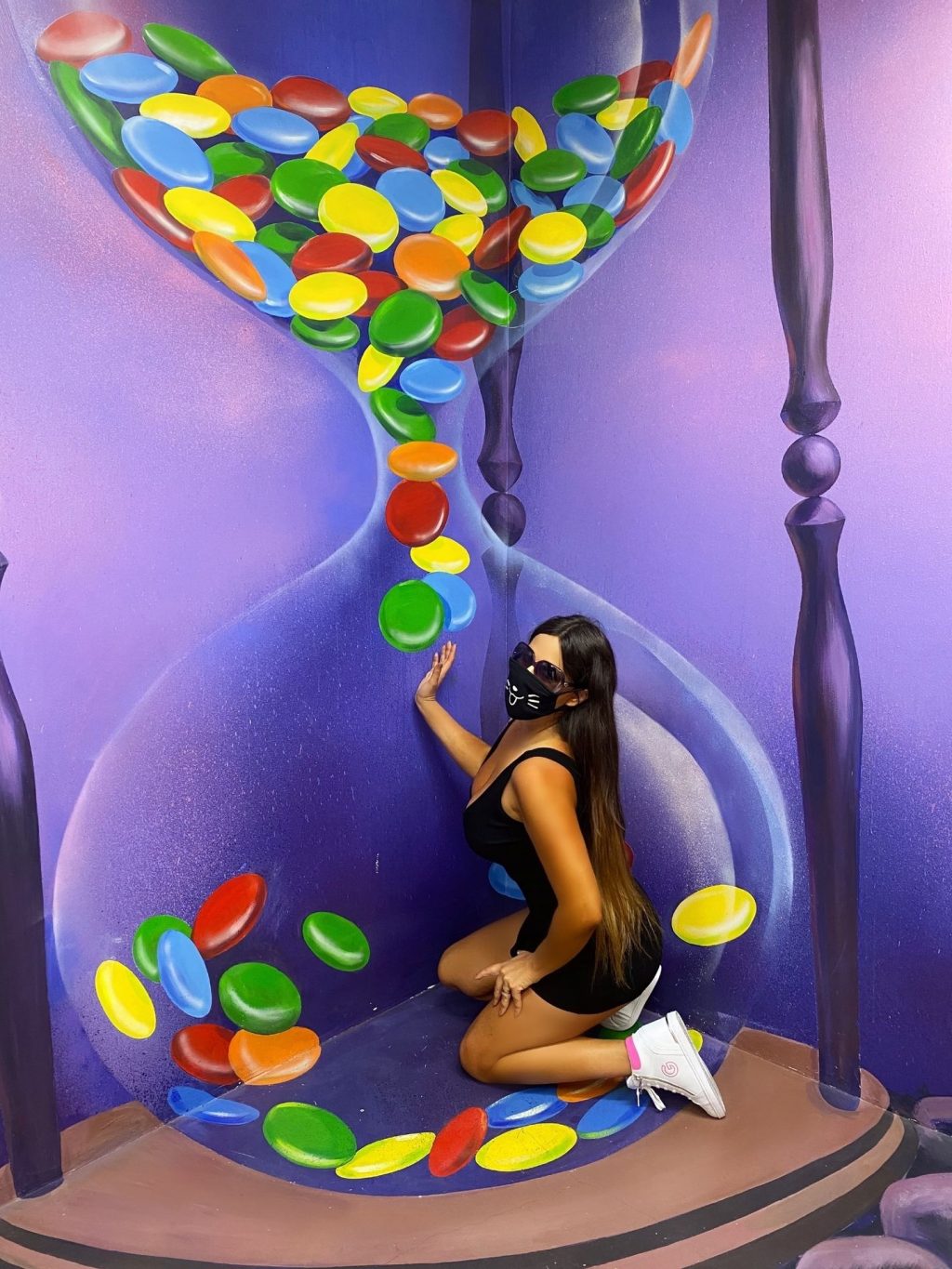 A personalidade de TV ítalo-americana Claudia Romani foi vista se divertindo muito com seu namorado durante uma visita ao Museu das Ilusões na Lincoln Road – Miami Beach, 12/08/2020. A modelo usava um vestidinho preto e tênis brancos e posou para fotos divertidas.