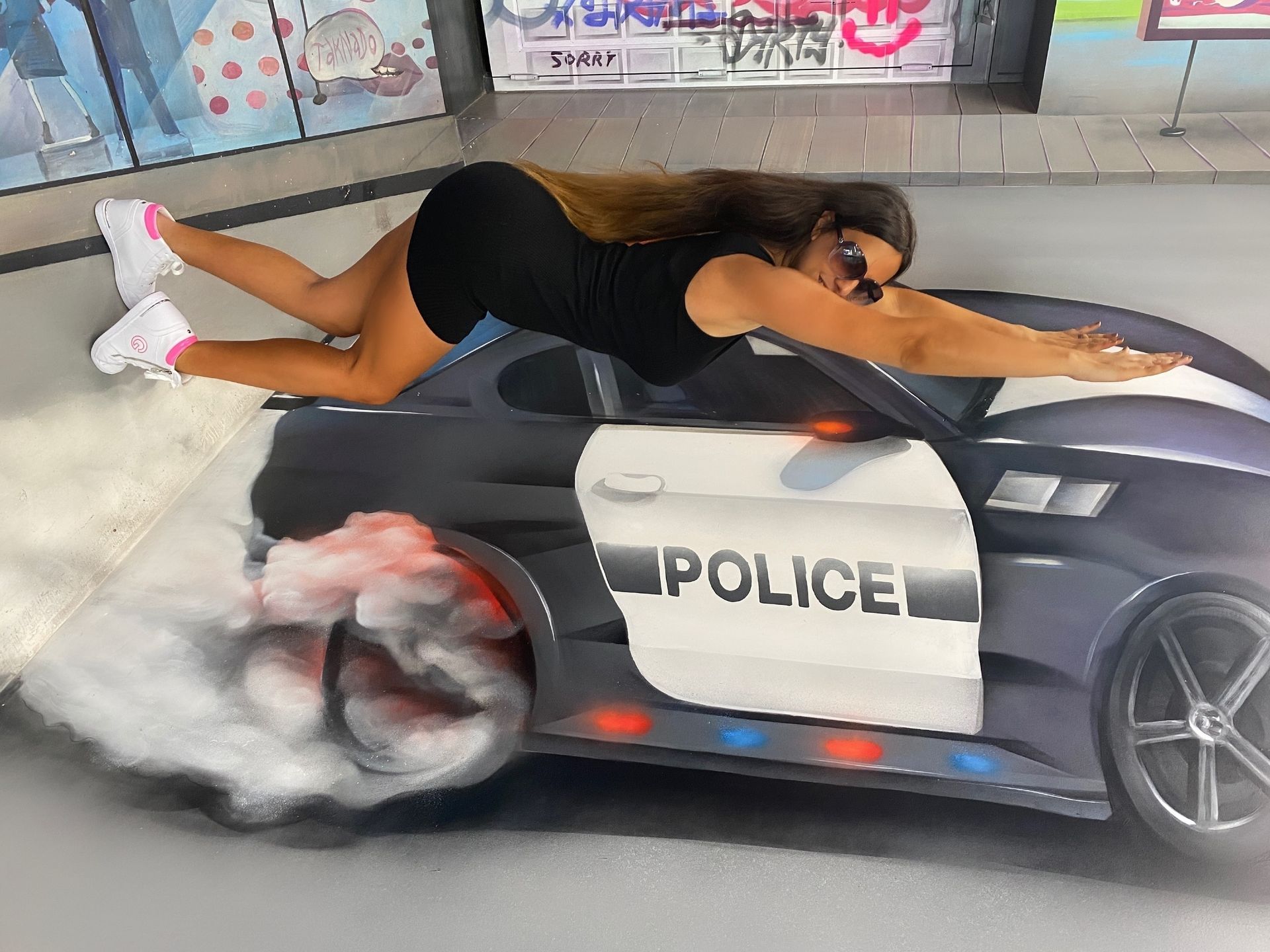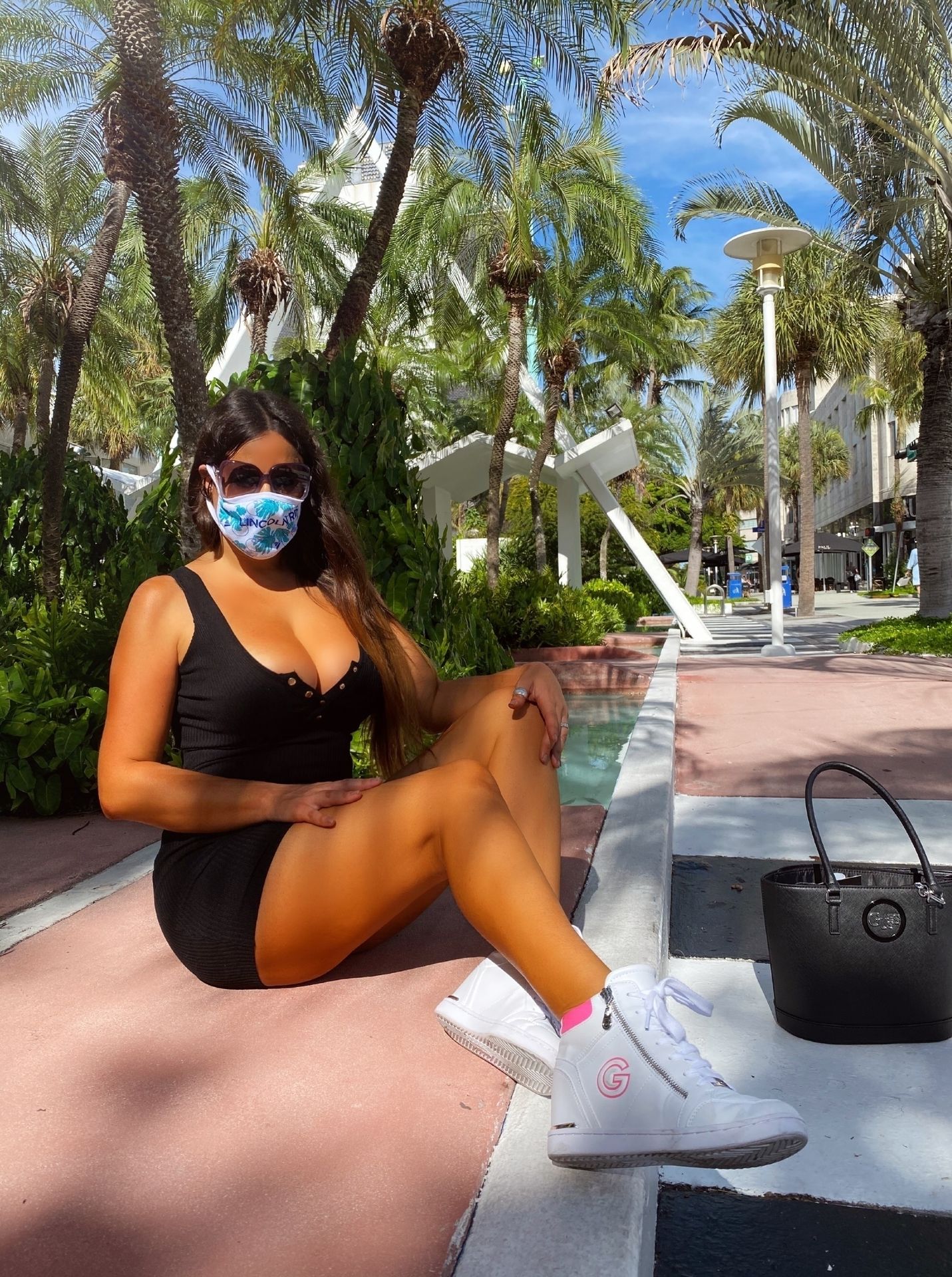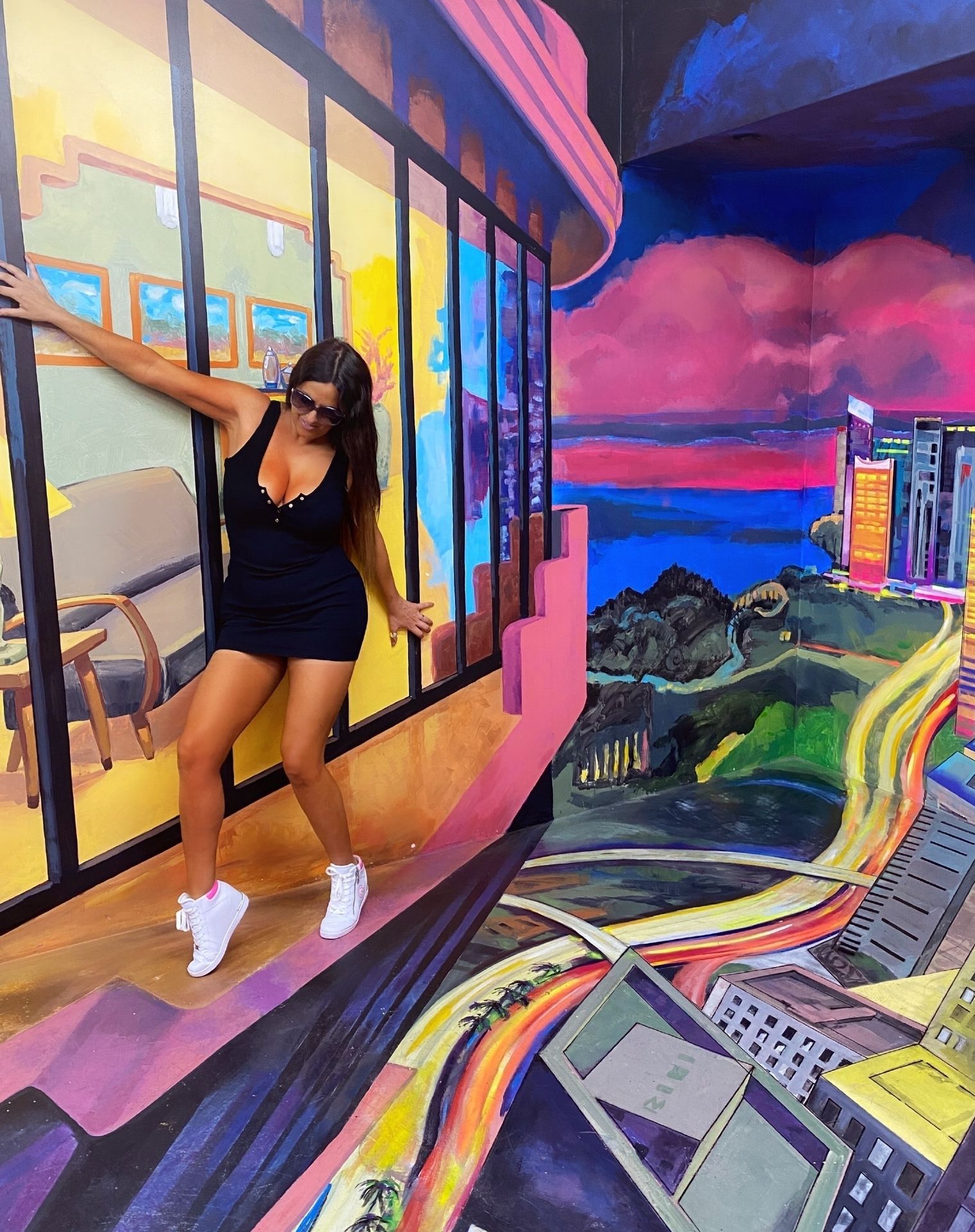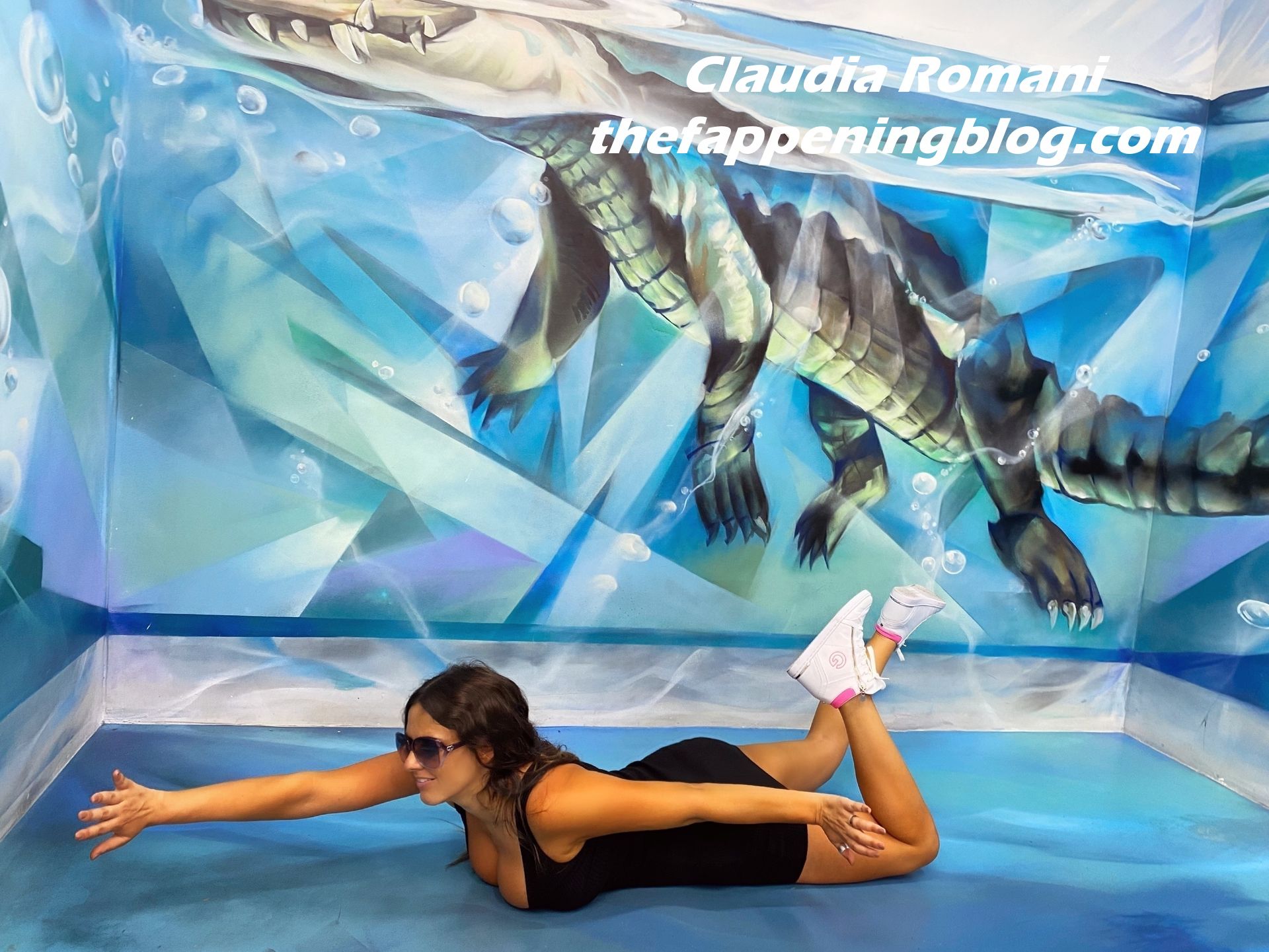 A personalidade de TV ítalo-americana Claudia Romani foi vista se divertindo muito com seu namorado durante uma visita ao Museu das Ilusões na Lincoln Road – Miami Beach, 12/08/2020. A modelo usava um vestidinho preto e tênis brancos e posou para fotos divertidas.