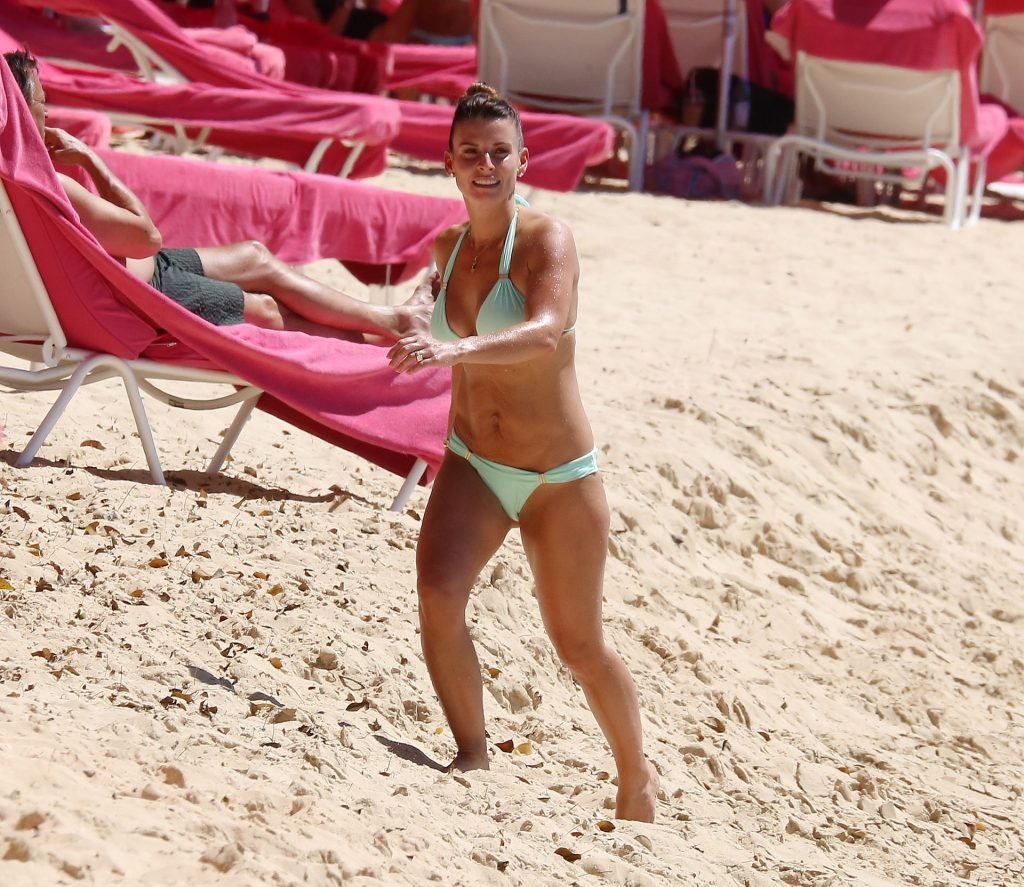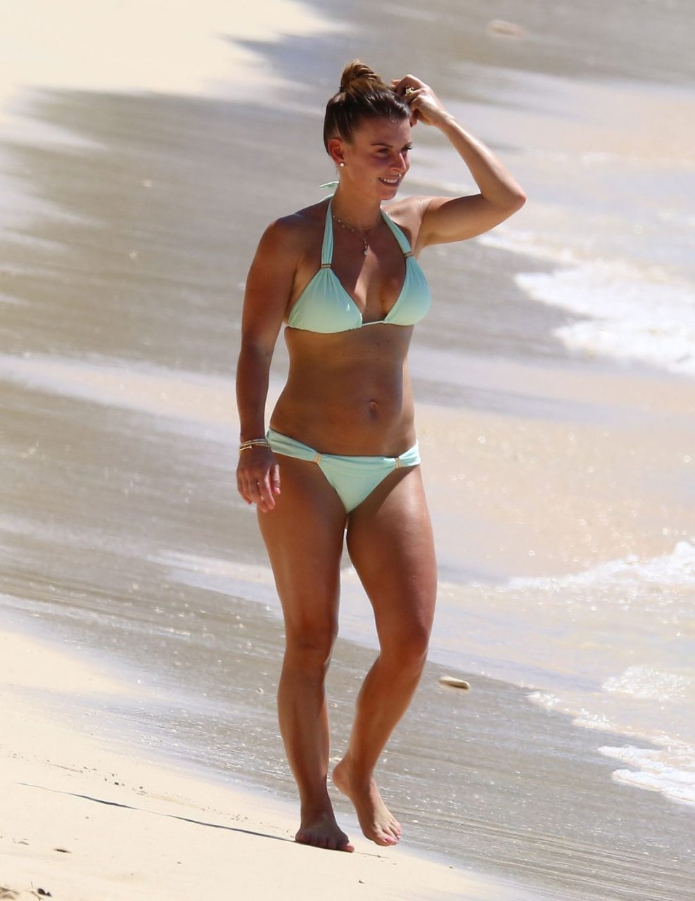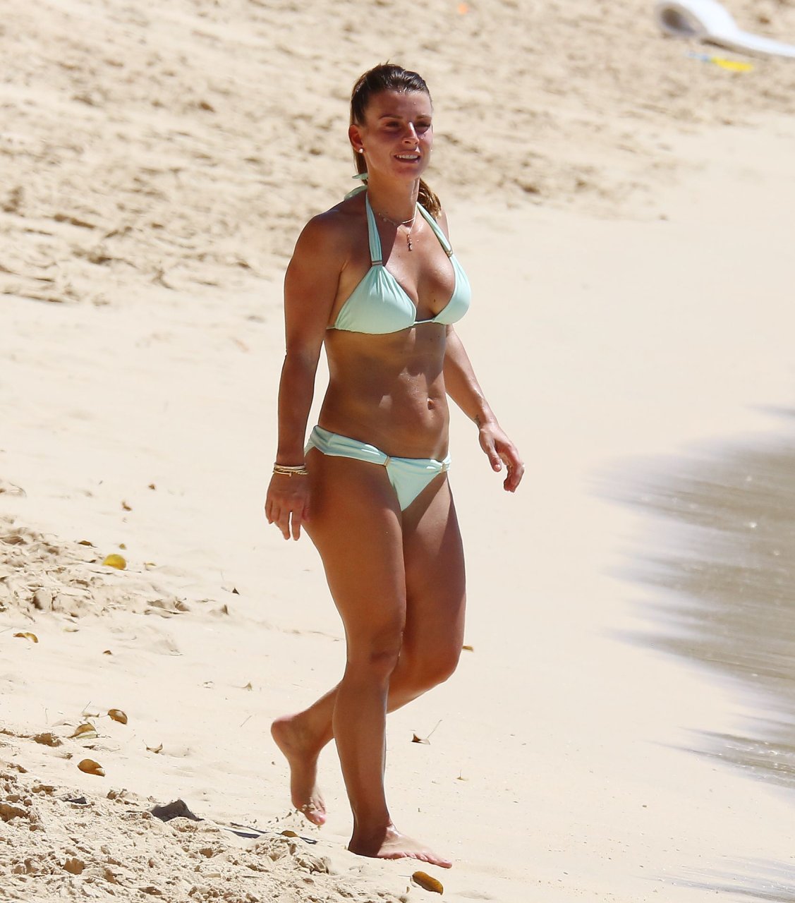 Mais uma vez usando sua aliança de casamento, Coleen, 32, mostrou sua silhueta esbelta vestindo um biquíni Vix verde pastel. O casamento turbulento do casal, que dura 10 anos, sofreu seu último revés no início deste mês depois que o ex-capitão da seleção inglesa de futebol, de 33 anos, aproveitou uma noite de bebedeira na Flórida com a garçonete Vicki Rosiek. Furiosa, a mãe de quatro filhos Coleen foi vista depois sem sua aliança de ouro.