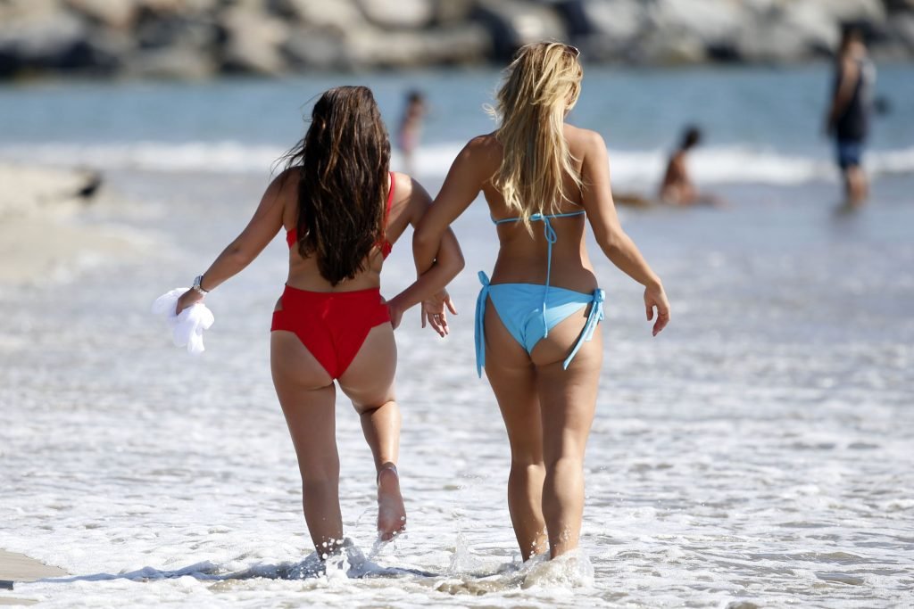 Courtney Green e Chloe Meadows vistas numa praia em Los Angeles, 07/03/2017.