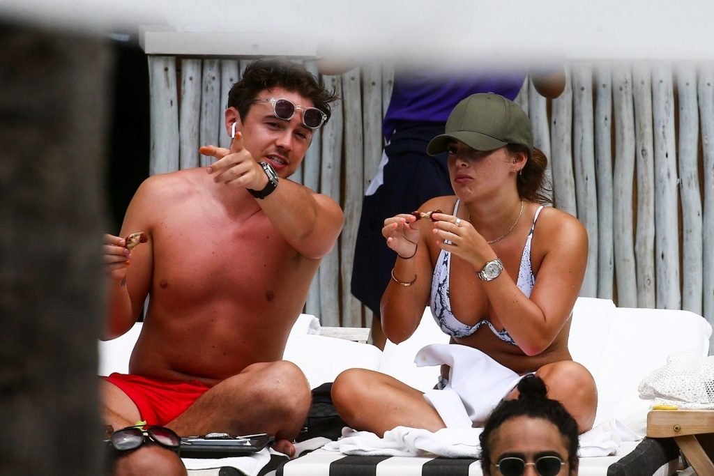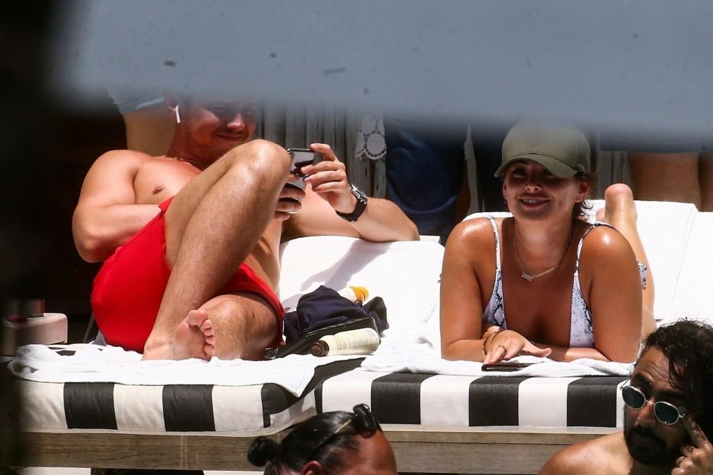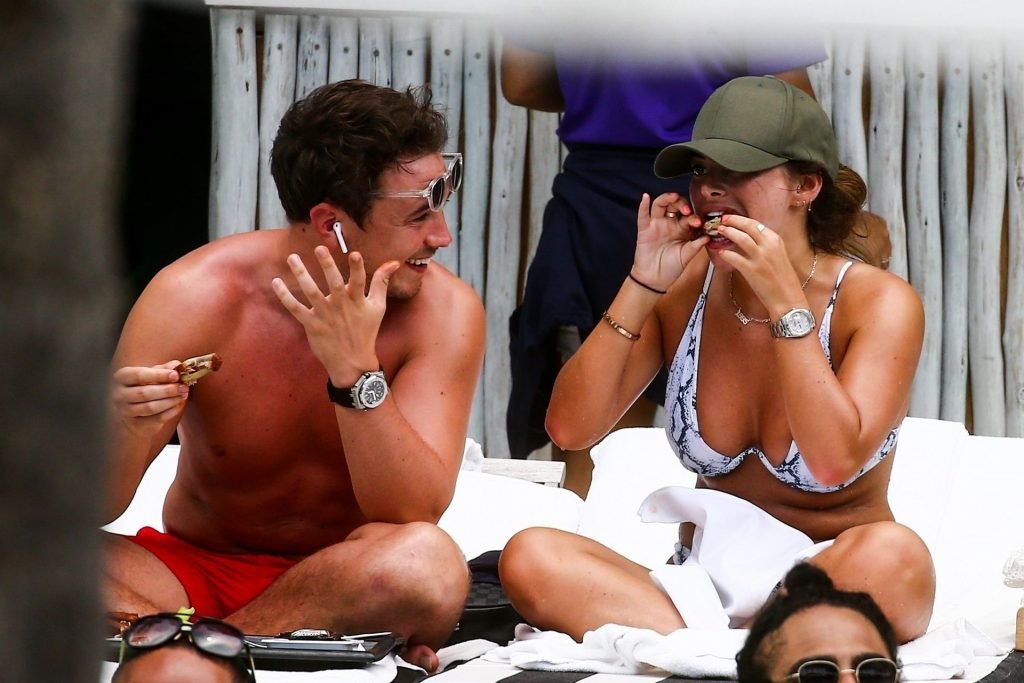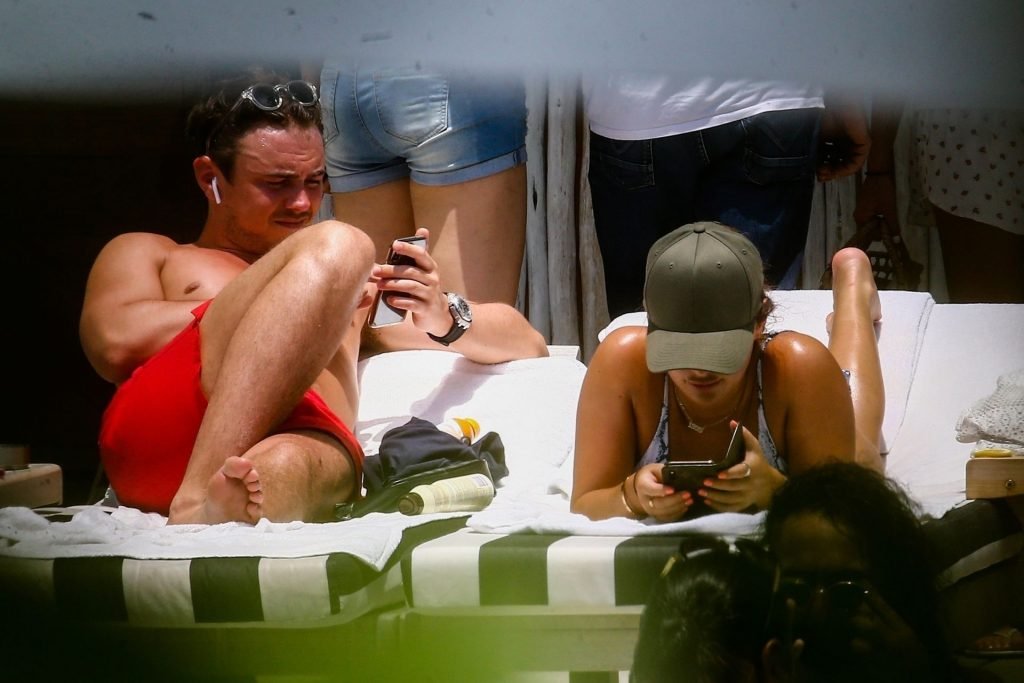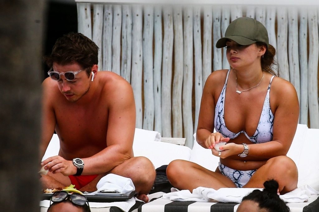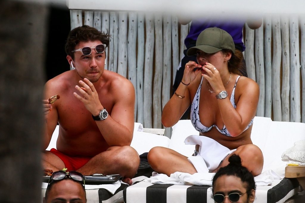 Courtney Green do TOWIE e o namorado Calum Bushby aproveitam umas férias na praia em Miami, 09/06/2019.