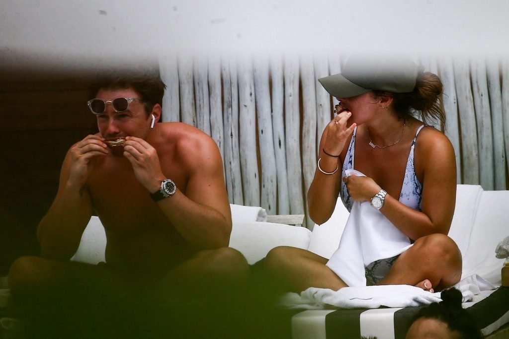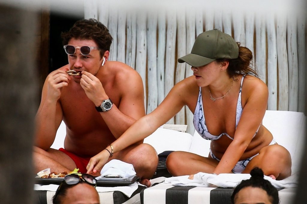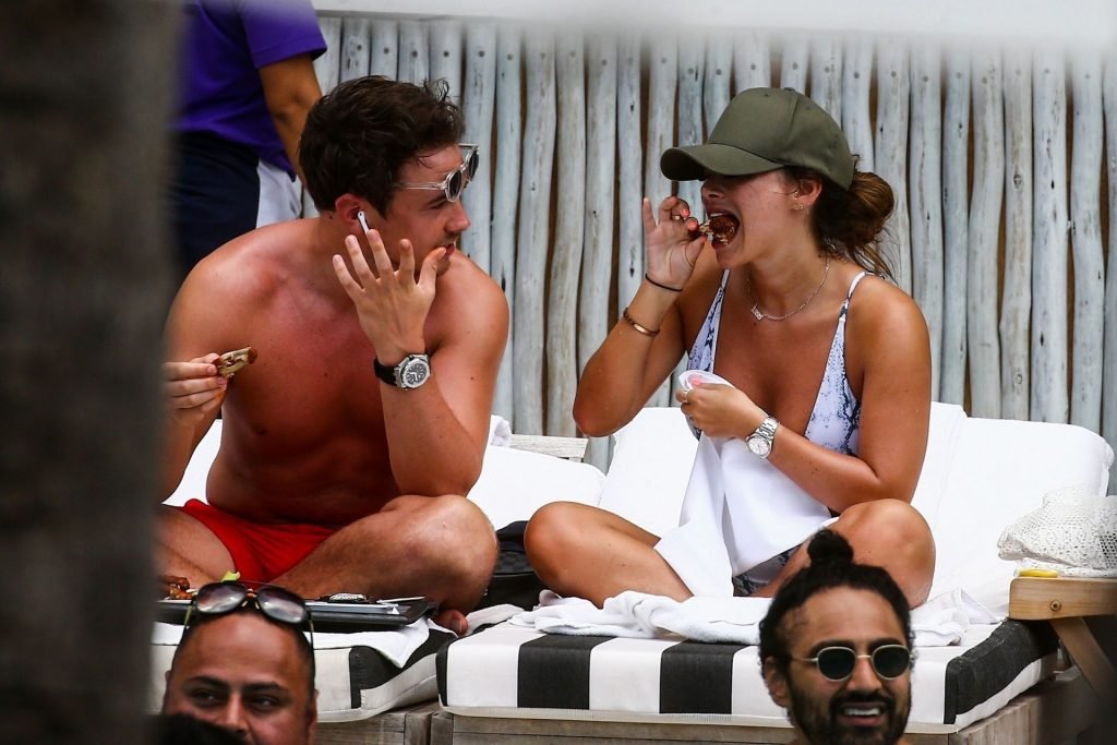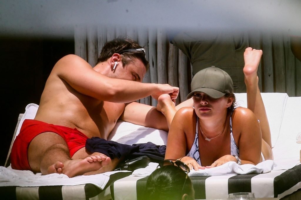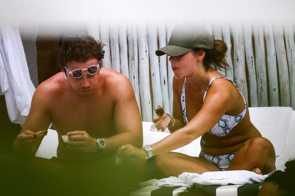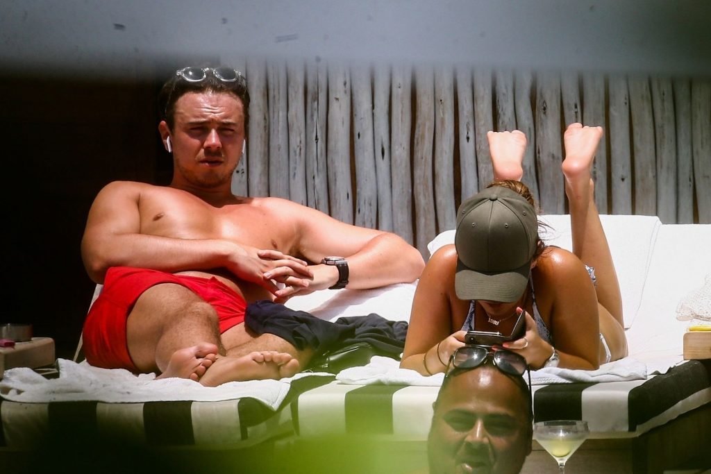 Courtney Green do TOWIE e o namorado Calum Bushby aproveitam umas férias na praia em Miami, 09/06/2019.