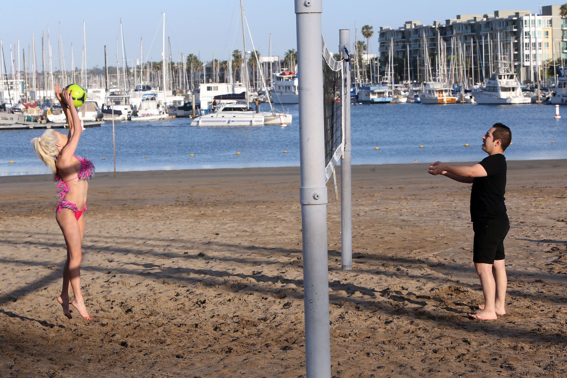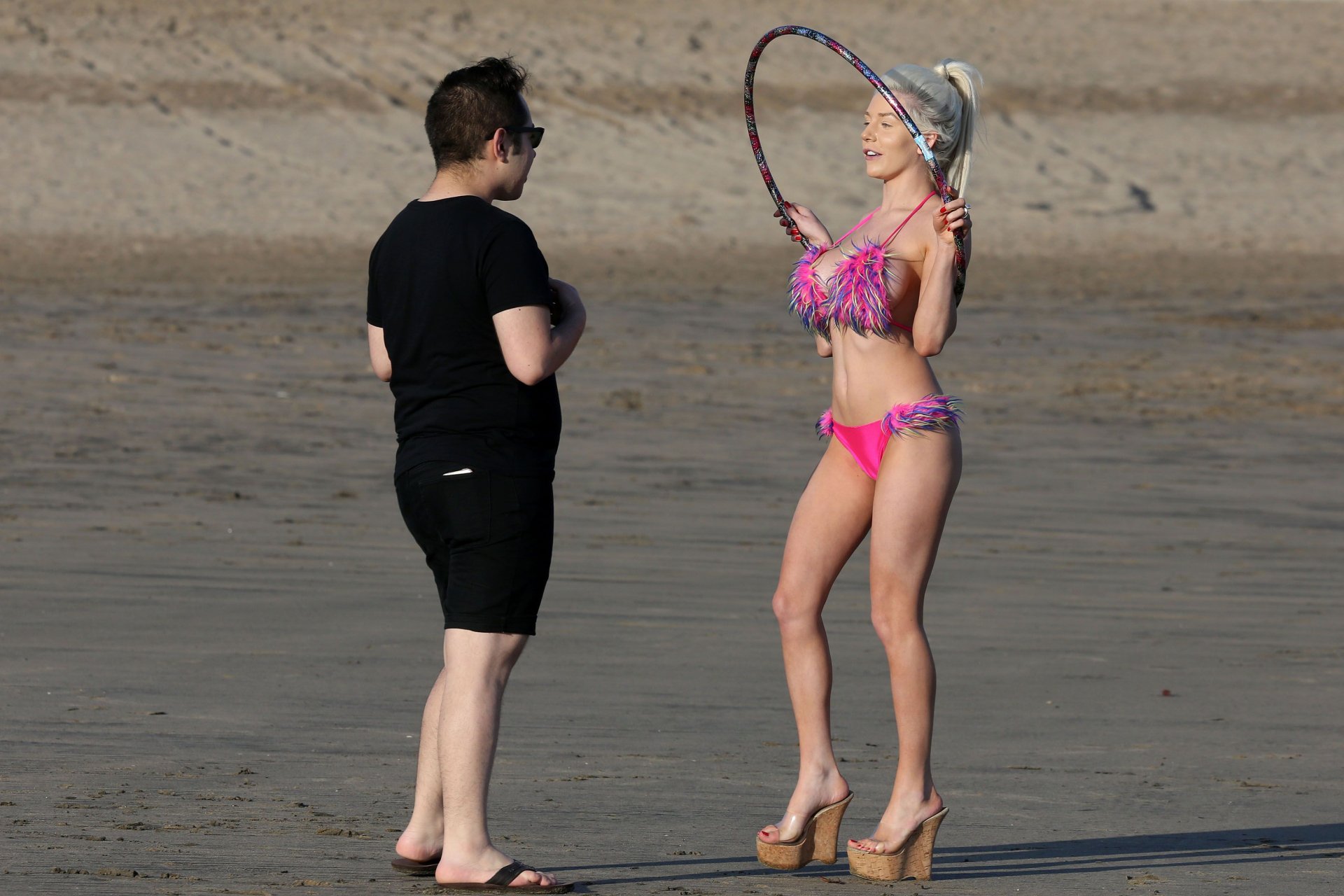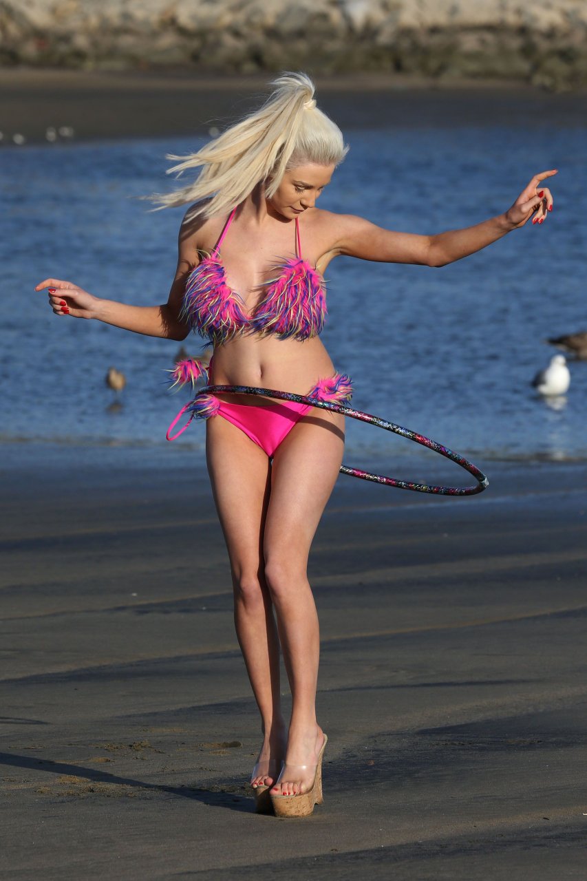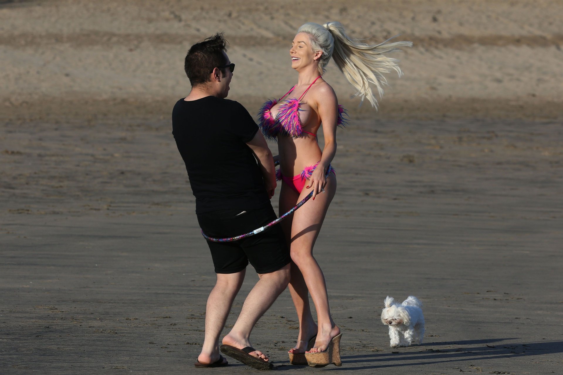 Courtney Stodden vai à praia de biquíni rosa com seu cachorro e um estranho desconhecido em Los Angeles, 23/03/2016. Courtney Stodden é uma participante americana de reality show. Idade 21 anos (29 de agosto de 1994). Altura 160 cm.