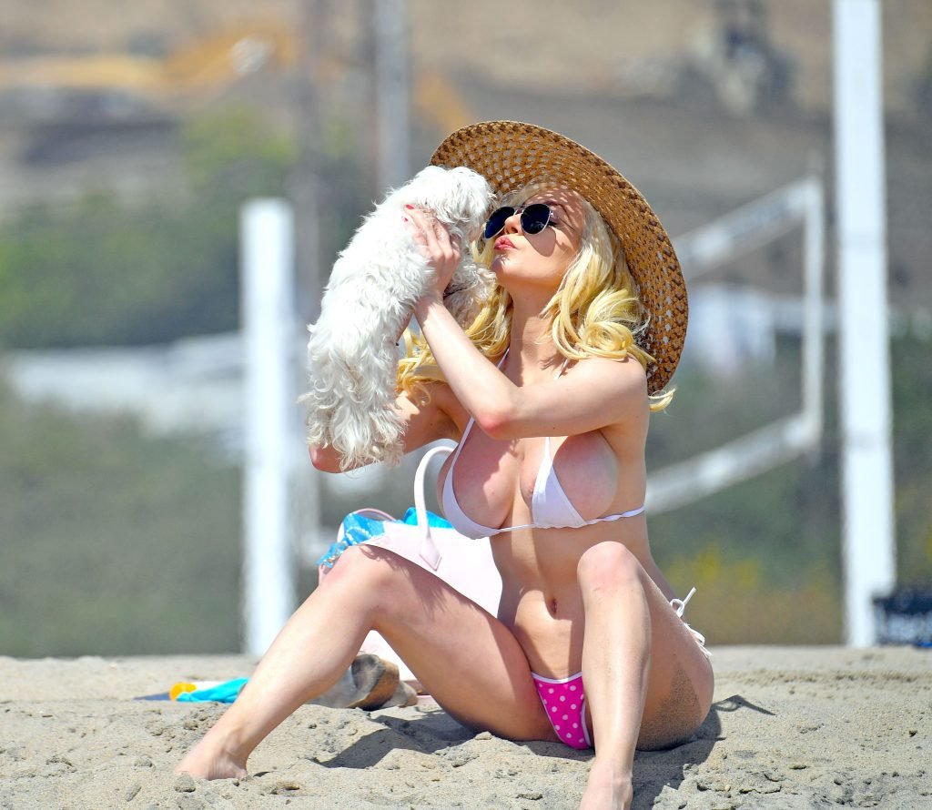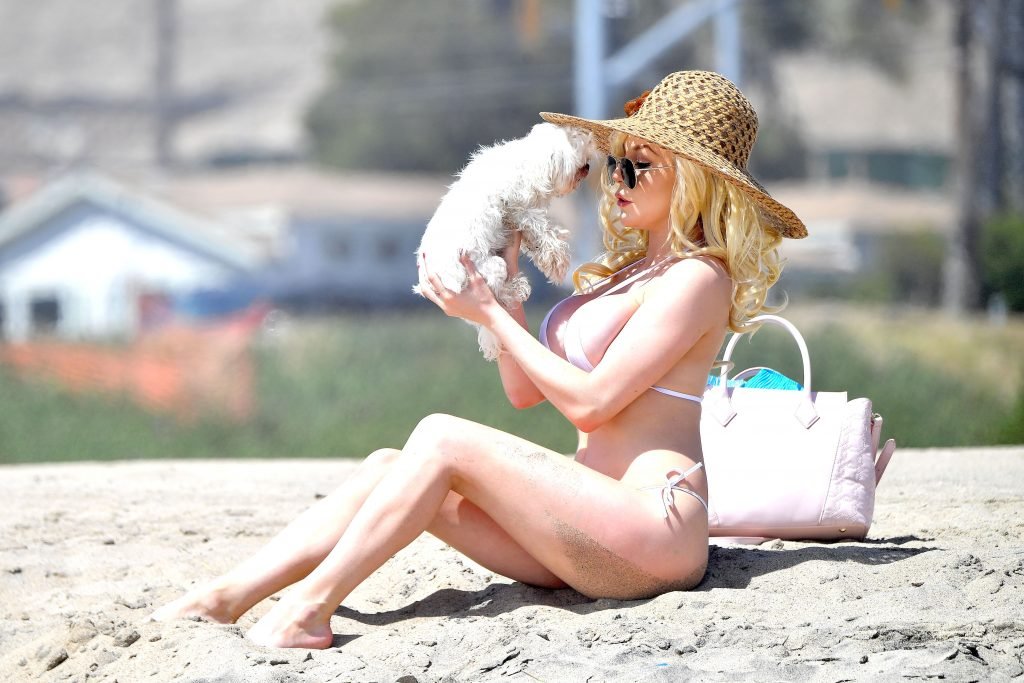 Courtney Stodden vai à praia em Santa Monica usando um biquíni branco e rosa minúsculo, 04/05/2017. Courtney A Stodden é atriz, modelo, artista musical, participante de reality show de Washington (EUA). Idade – 22.