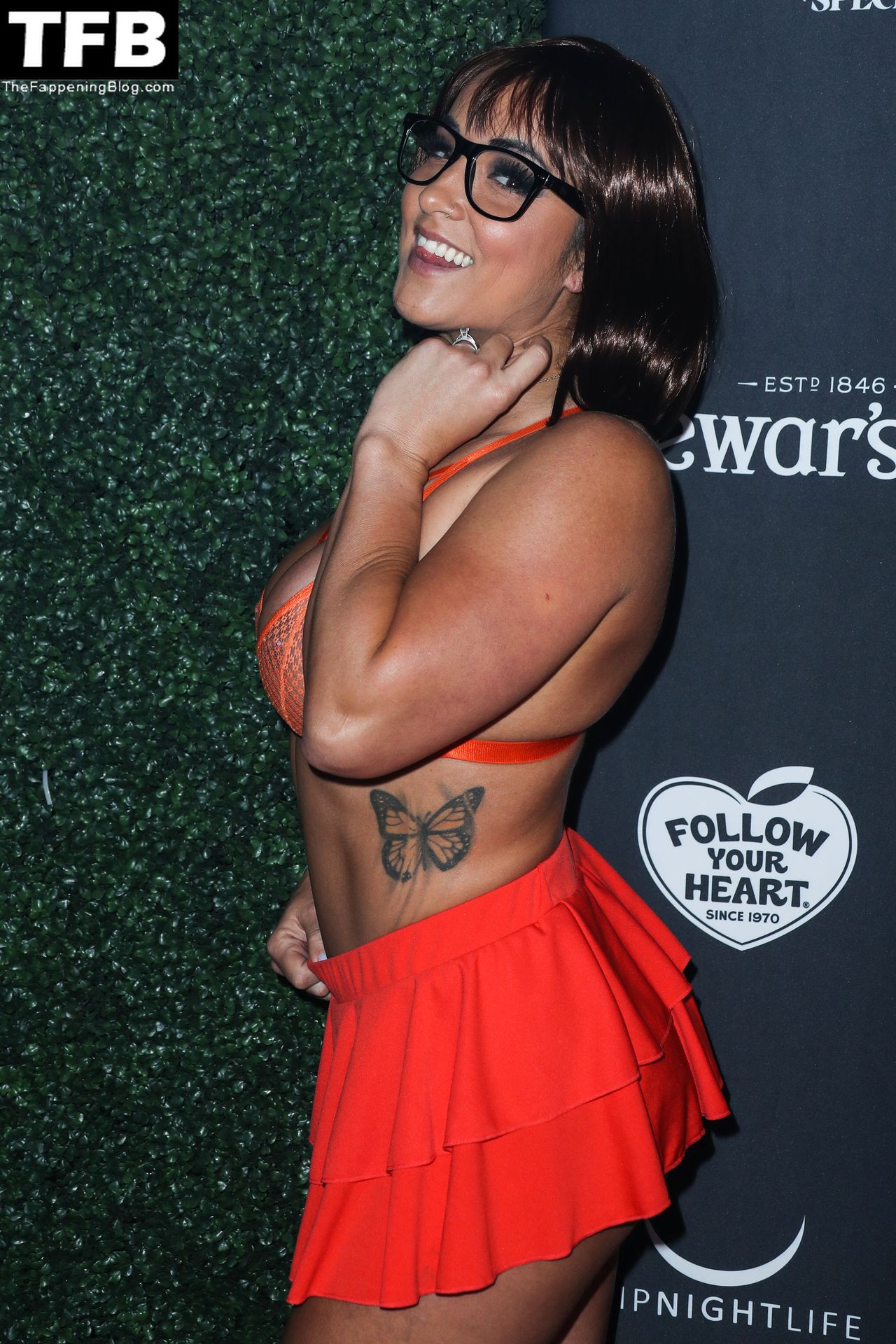 A estrela do OF Courtney Tillia exibe seus seios falsos levemente nus, usando um sutiã transparente na Festa de Halloween Maxim 2021 Produzida pela MADE Special realizada no Hyde Sunset Kitchen + Cocktails em West Hollywood, 31/10/2021.
