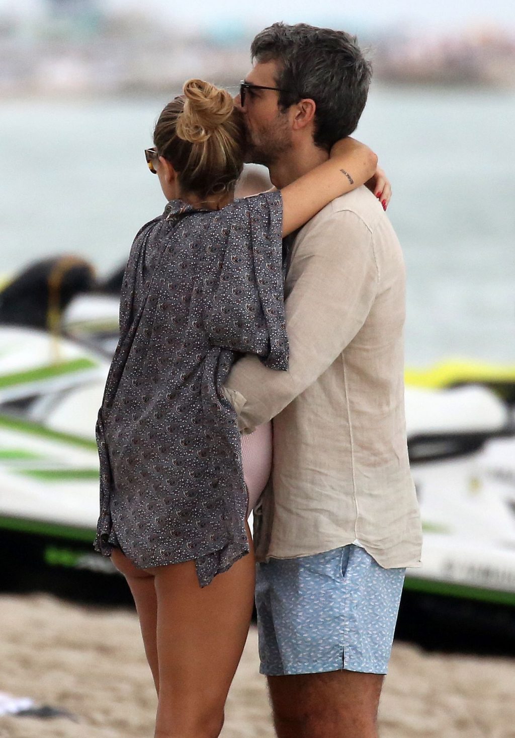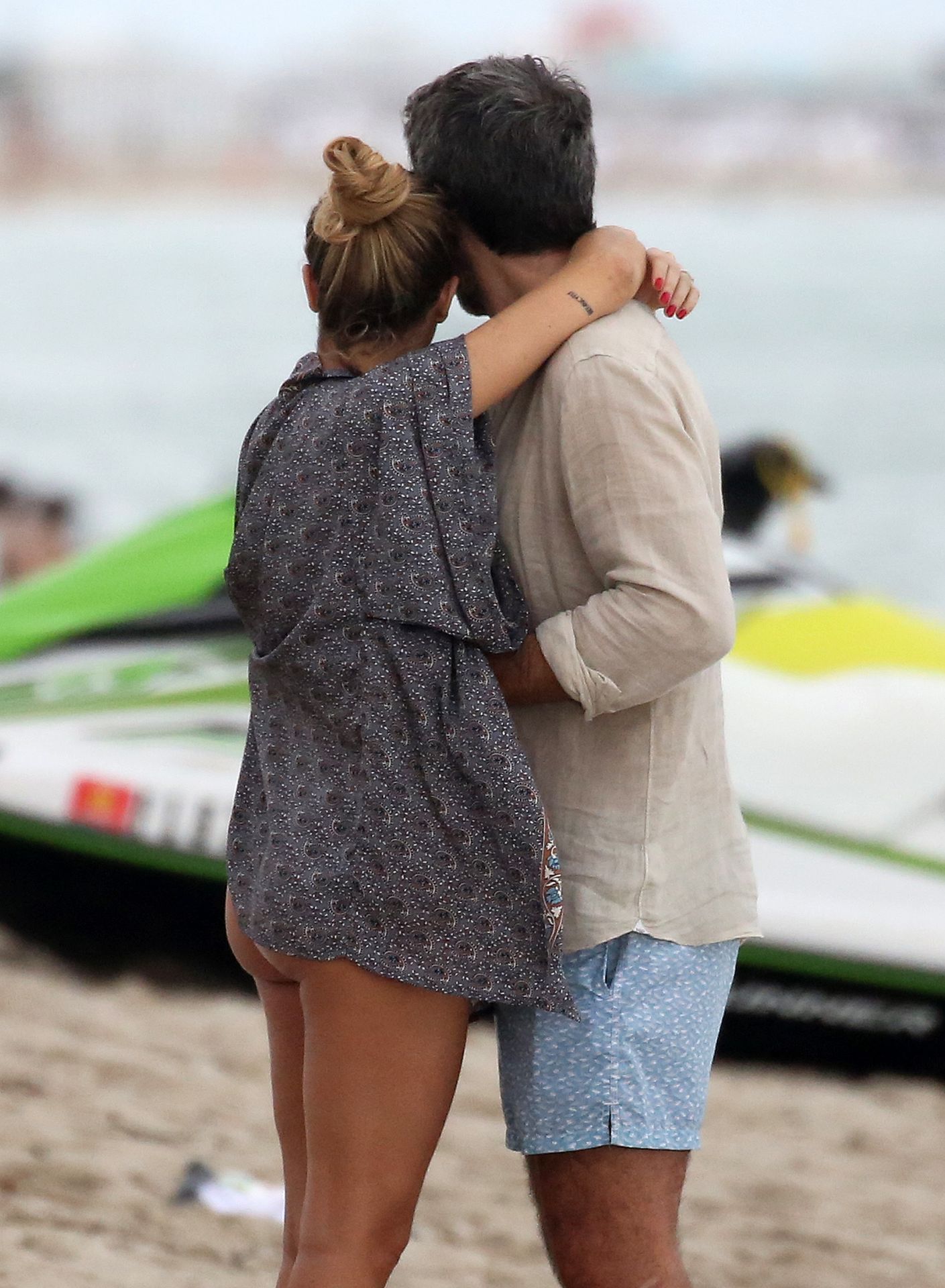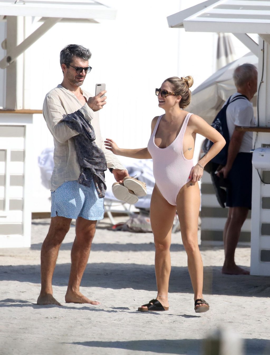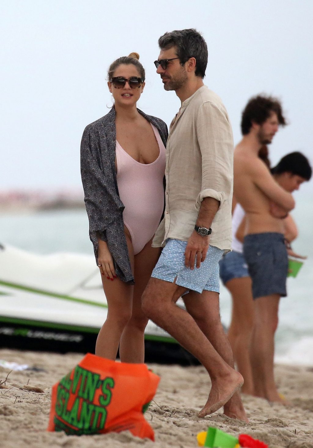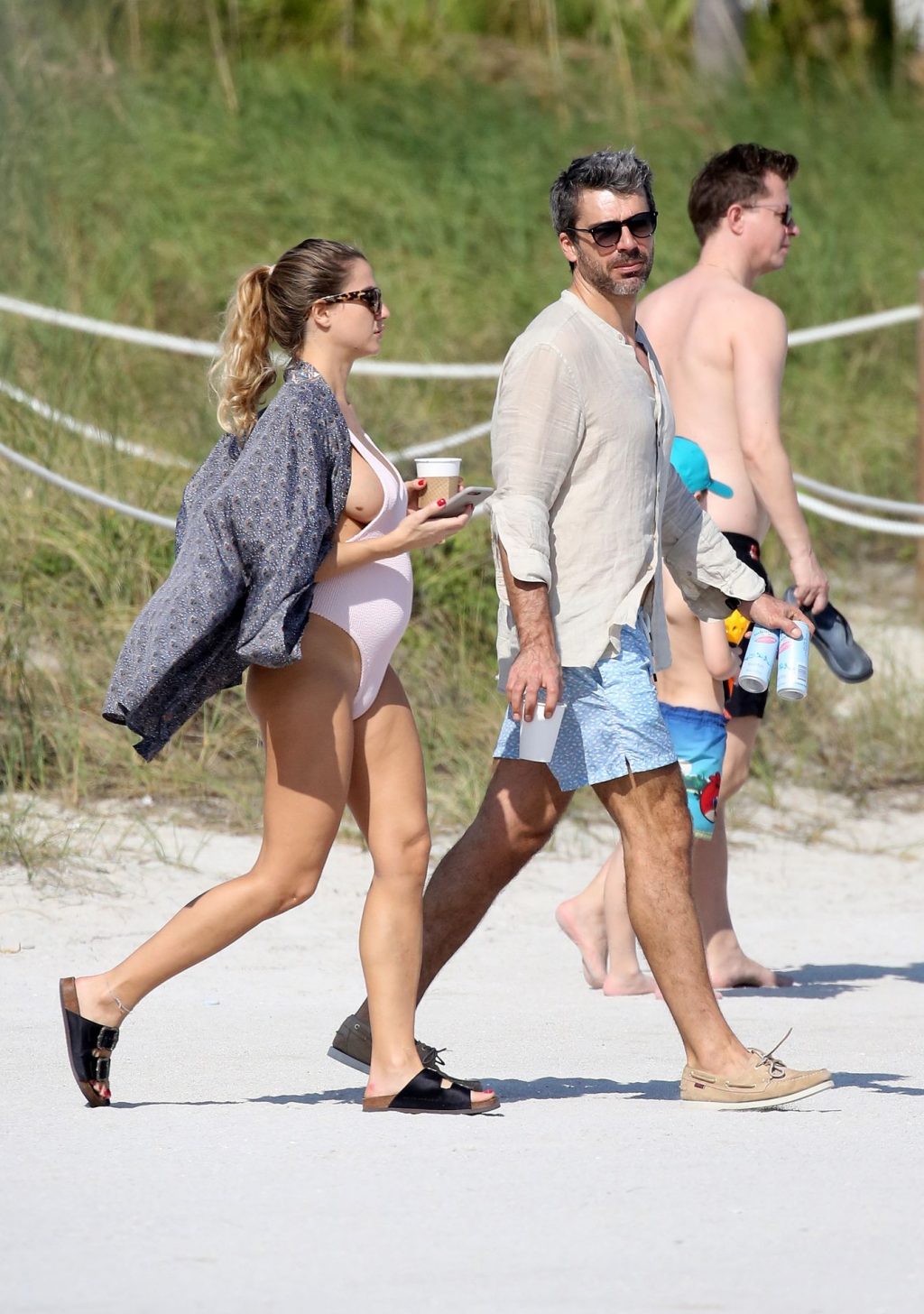 A atriz Cristina Marino exibe sua barriga de grávida e todas as suas novas curvas em um maiô muito revelador enquanto aproveita a praia com Luca Argentero em Miami no dia da véspera de Ano Novo, 31/12/2019.