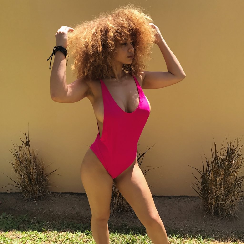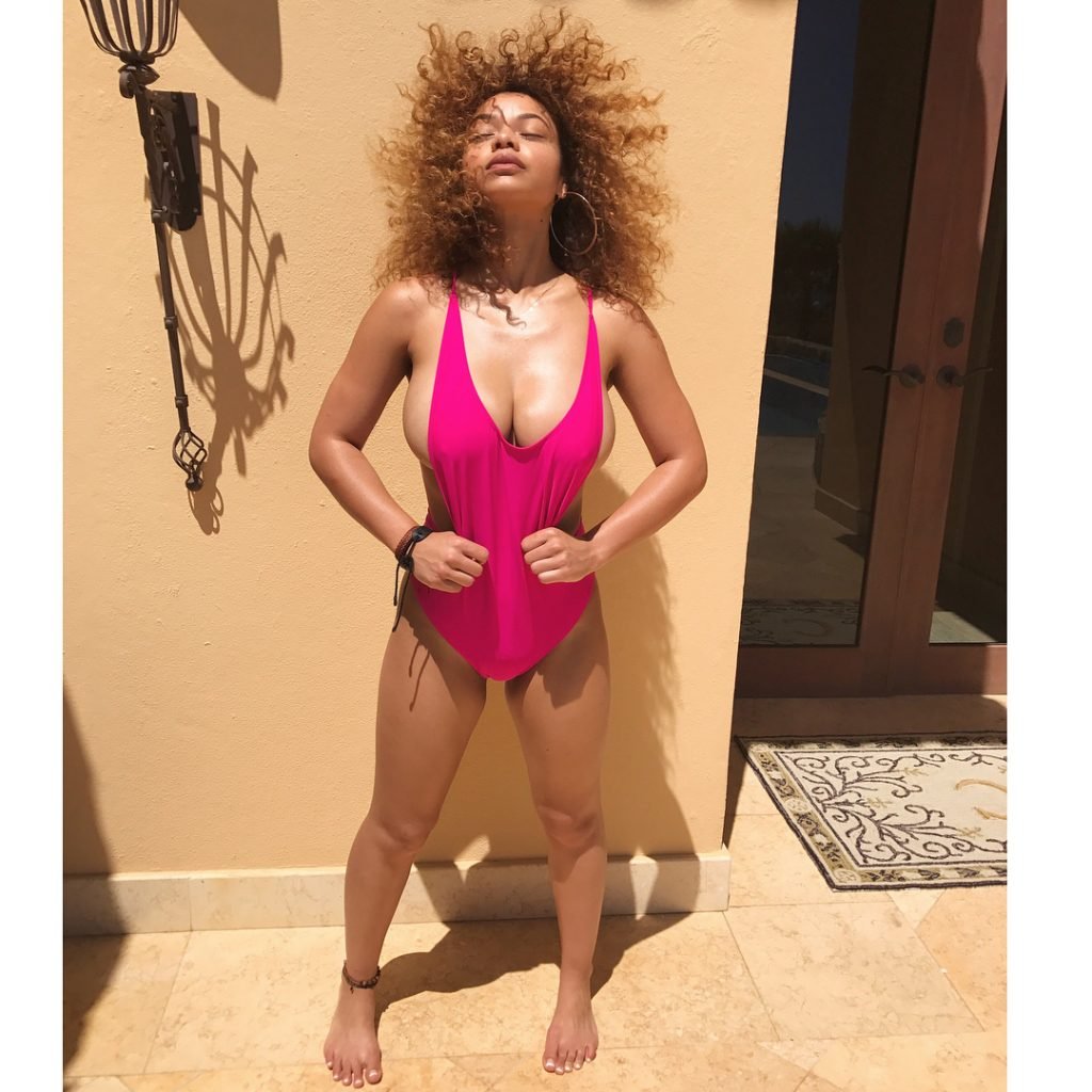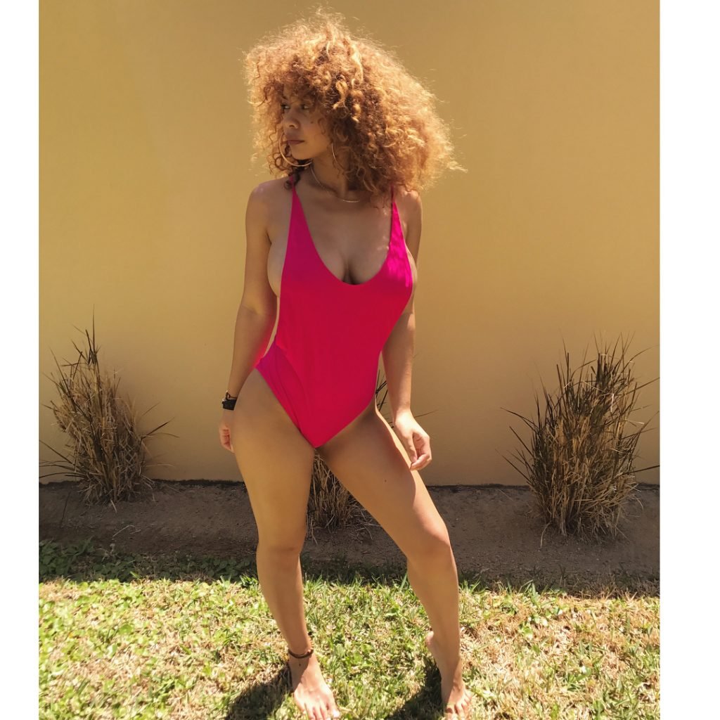 Busty Crystal WestBrooks posa com um body rosa – Instagram, 10/09/2017. Crystal WestBrooks é uma modelo americana da Flórida. Idade: 24 anos.