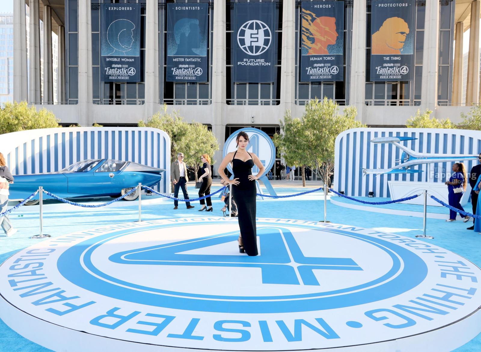 Atriz Dafne Keen impressiona com um vestido preto na estreia mundial de “Quarteto Fantástico: Primeiros Passos” no Dorothy Chandler Pavilion em Los Angeles.