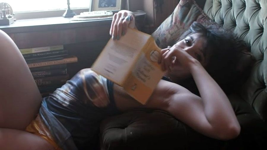 O body de rede laranja com tatuagens de borboletas não é ela, seu idiota do caralho.