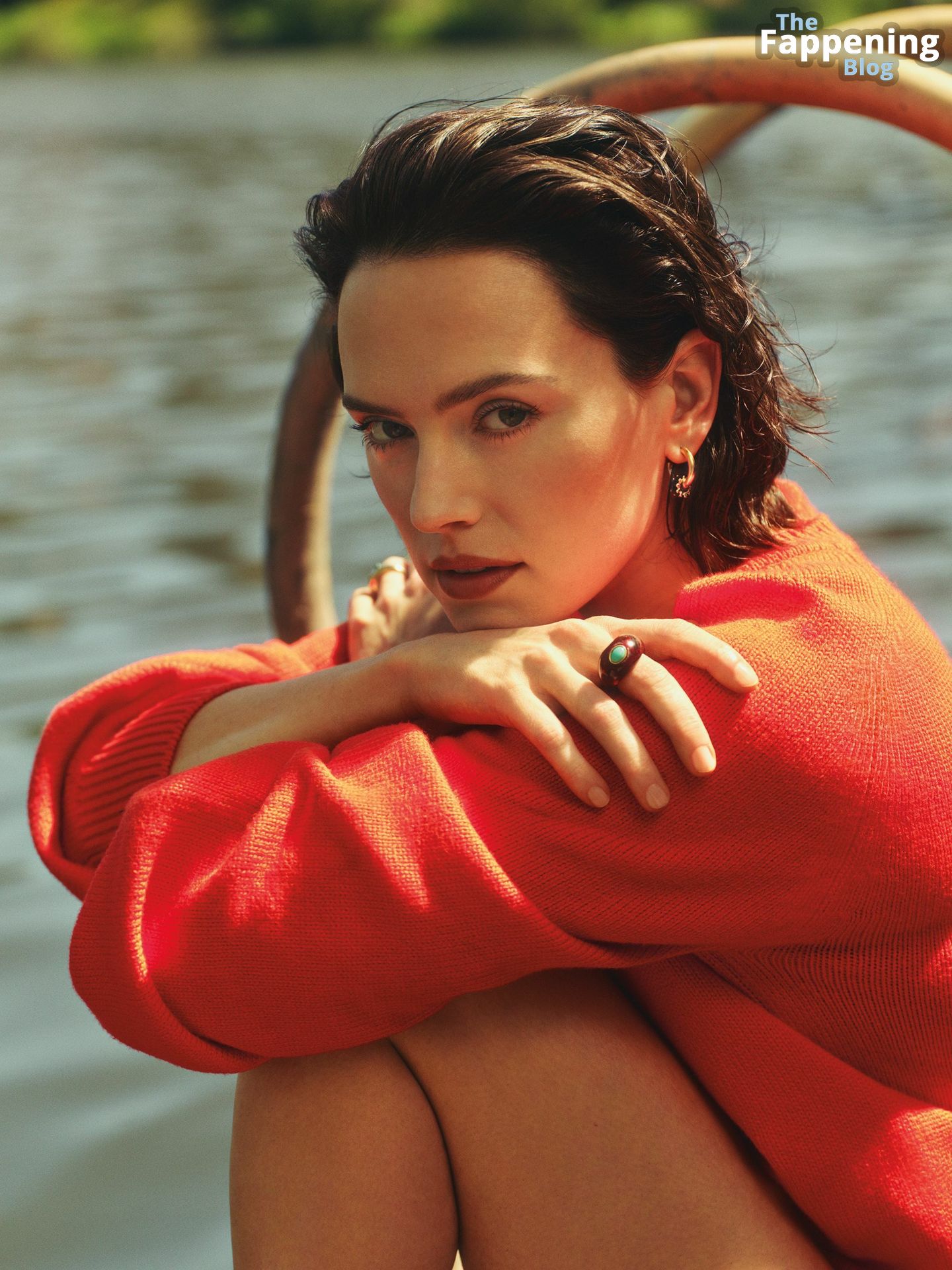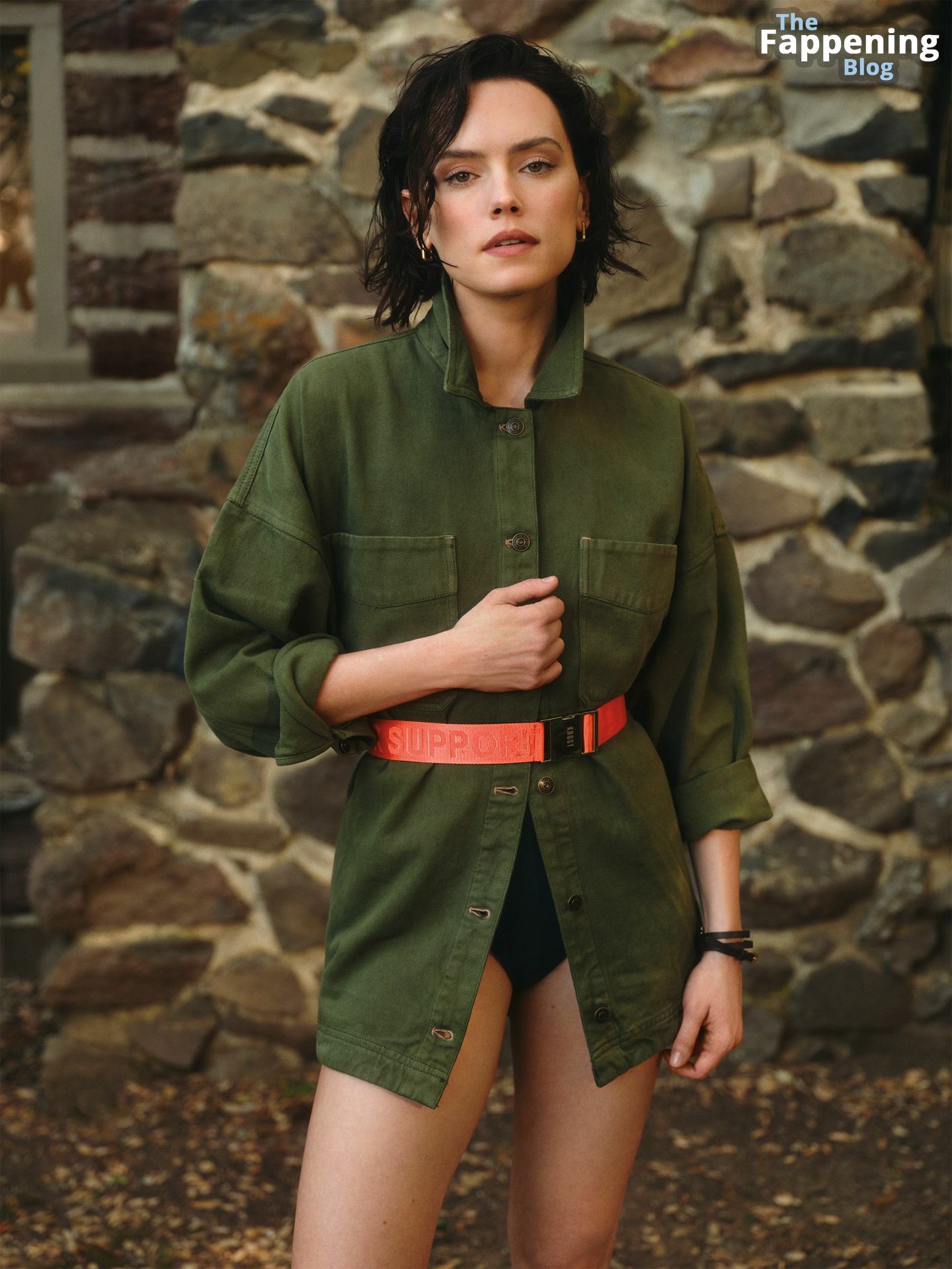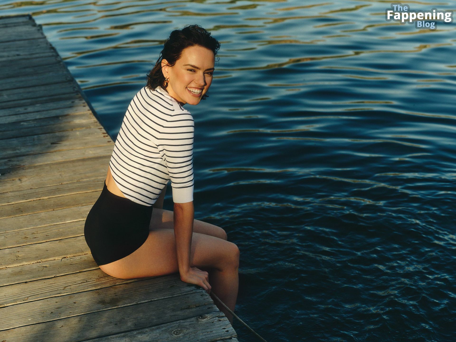No ensaio fotográfico, ambientado em um cenário deslumbrante à beira de um lago, Ridley aparece usando apenas uma calcinha, uma capa de chuva laranja vibrante e botas altas, dando ao seu visual um toque descontraído e ousado. Suas poses marcantes e o olhar confiante refletem a força que ela conquistou ao superar desafios recentes.