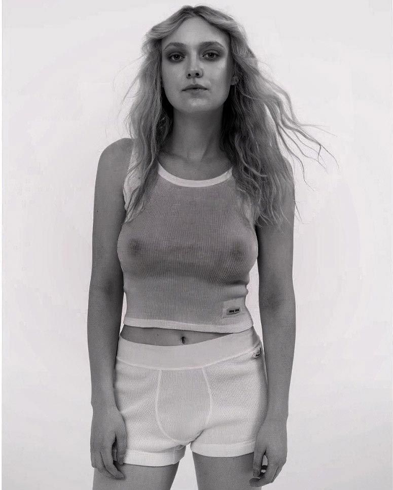 A maioria das fotos nuas de Dakota Fanning são fotos de paparazzi que expõem completamente seus seios firmes. Mas também reunimos algumas fotos legais de upskirt, e temos uma série completa de Dakota Fanning nua em cenas de sexo de seus filmes e programas de TV. Adoramos sua atuação na série The Alienist, que também é o programa onde ela mostra mais pele.