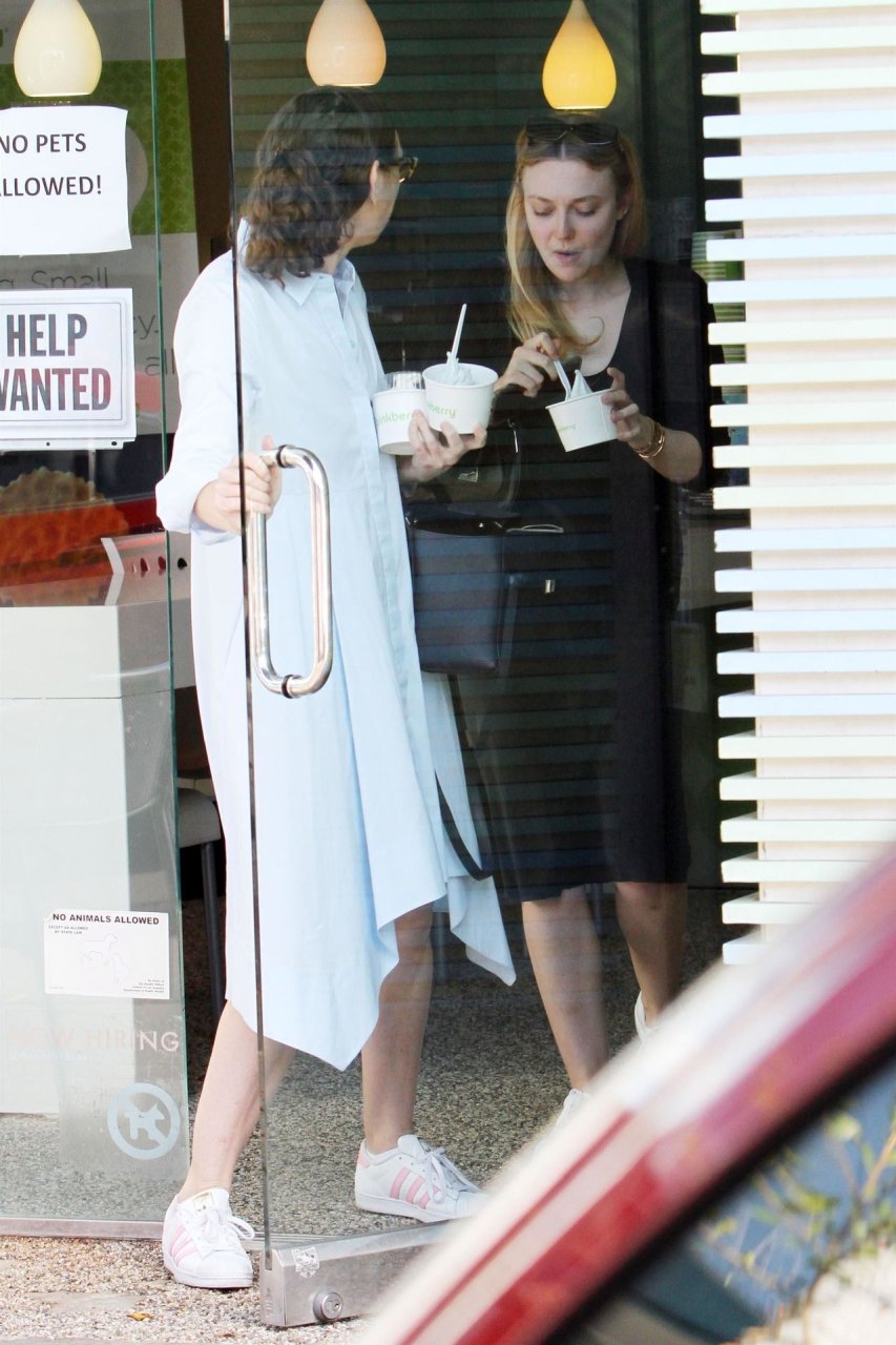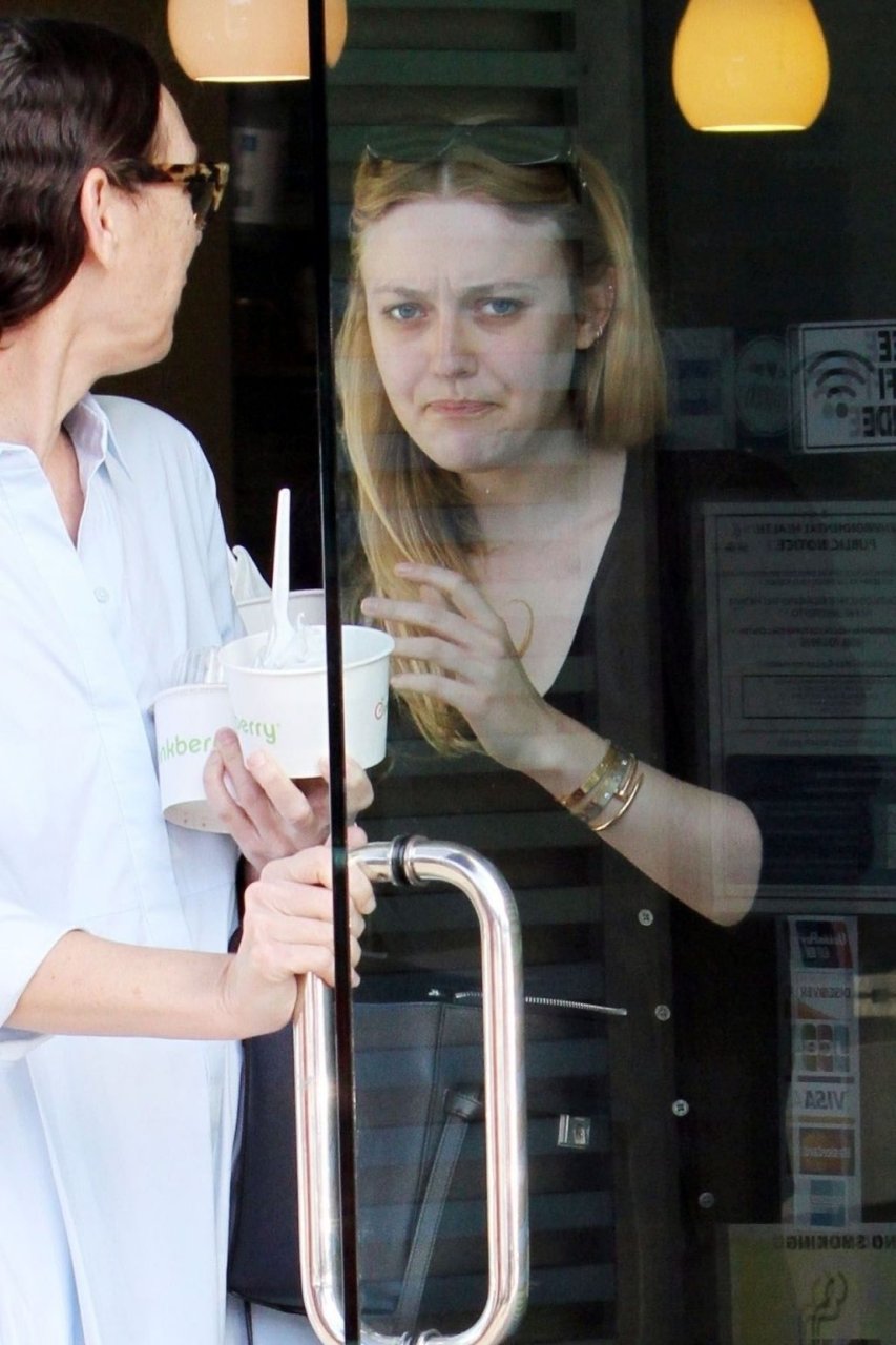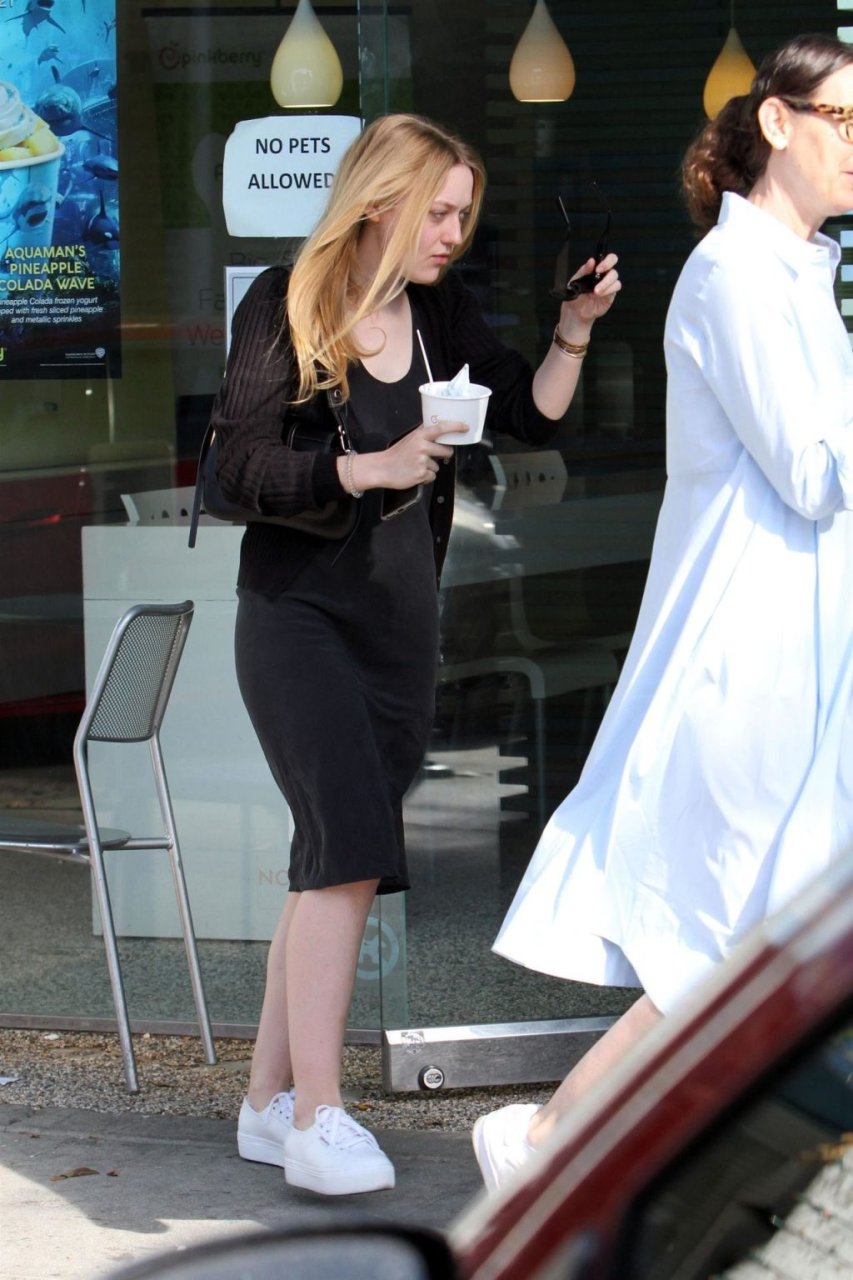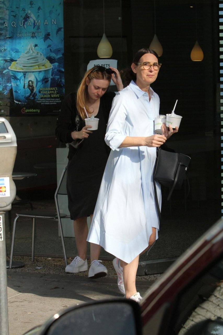 A atriz Dakota Fanning (24) aproveita sua tarde de compras com sua mãe Heather Joy Arrington (51) em Beverly Hills, 16/12/2018. A dupla foi vista saindo da XIV Karats LTD antes de pegar um lanche no Pinkberry.