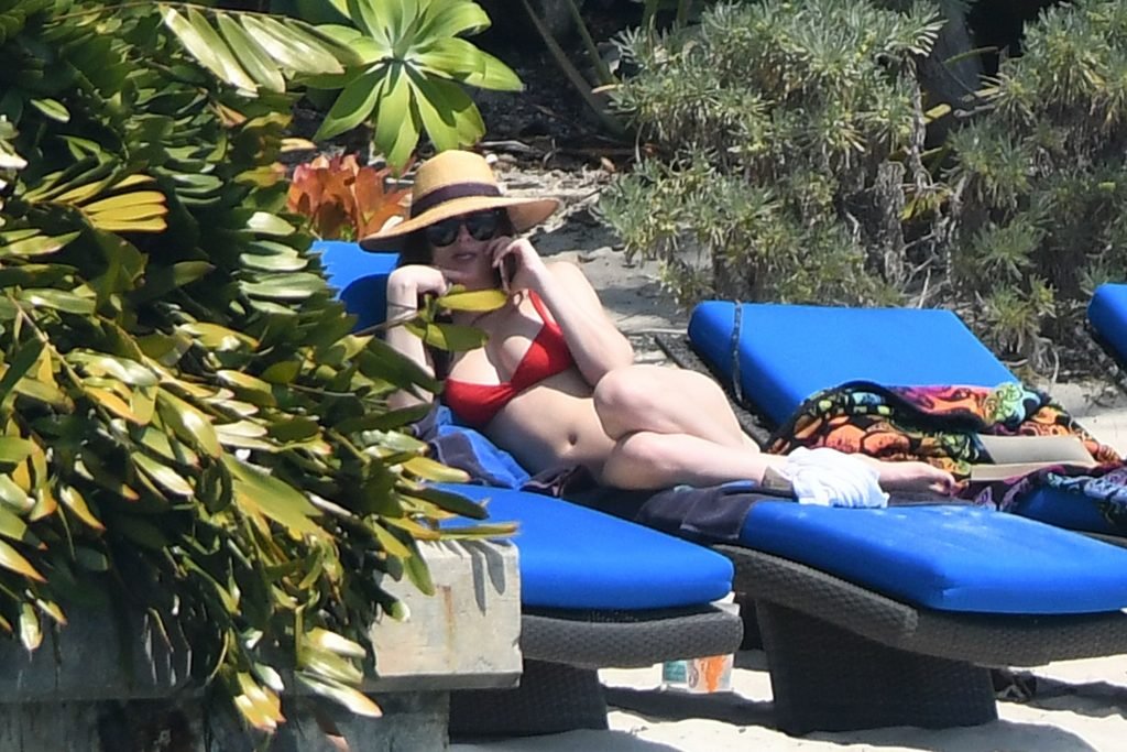 Exclusivo, Miami, FL – 31/03/2017 – A atriz de Fifty Shades Of Grey Dakota Johnson usa um biquíni vermelho enquanto relaxa com amigos em Miami
