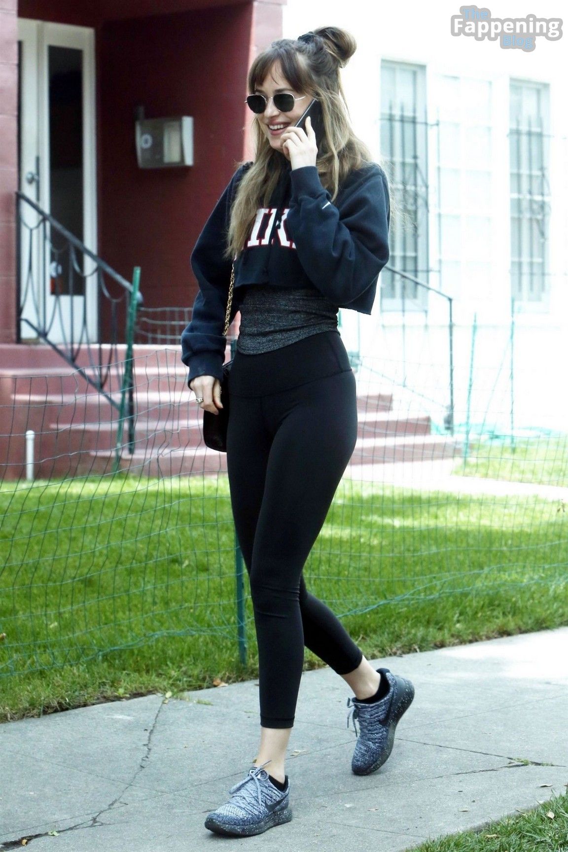 Você viu a caminhada de Dakota Johnson em Beverly Hills com aquelas leggings justas? Seus fãs ardentes definitivamente ficaram satisfeitos, porque dava para ver o bumbum sexy da estrela de The Fappening e até um cameltoe naquela calça apertada.