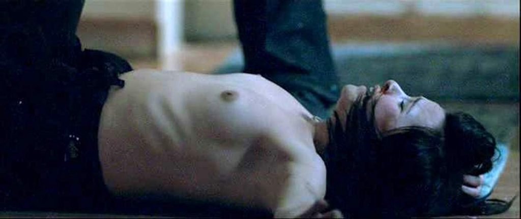 Assista a outra cena nua com Danielle Harris nua de “Halloween” (2007), onde Michael Myers está tentando matar Danielle Harris! Ela está de calça e sem sutiã, então seus seios balançam enquanto ela luta para escapar dele.
