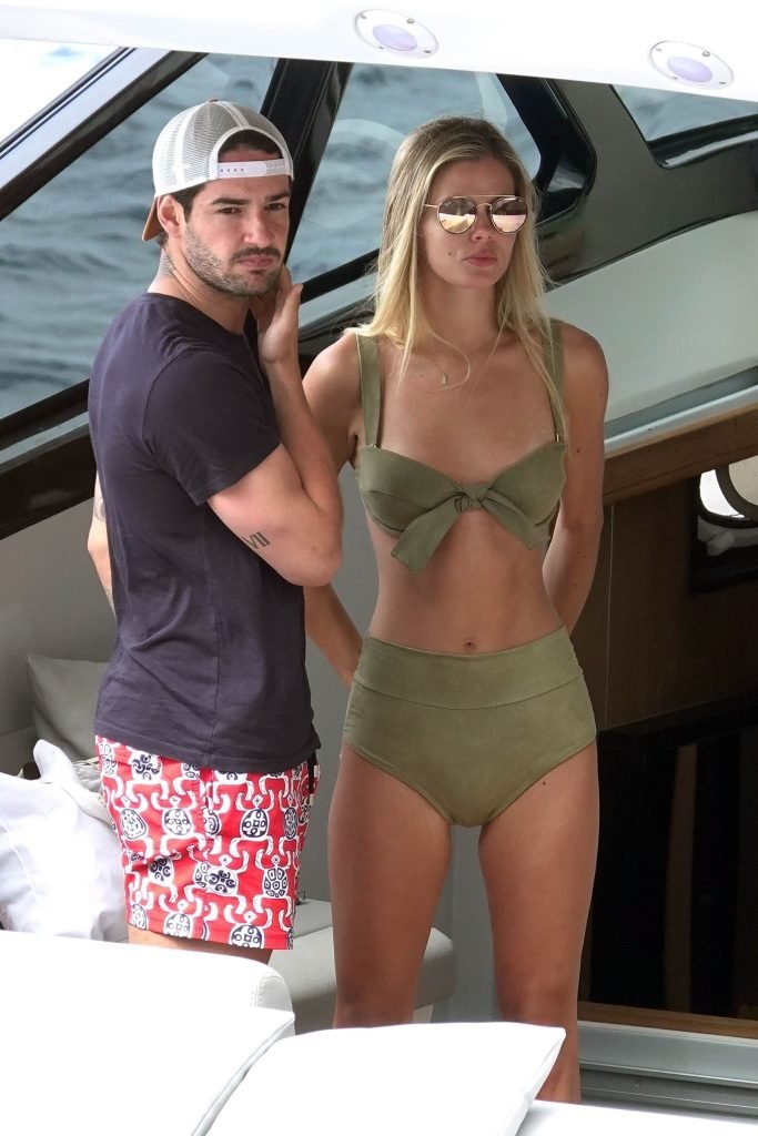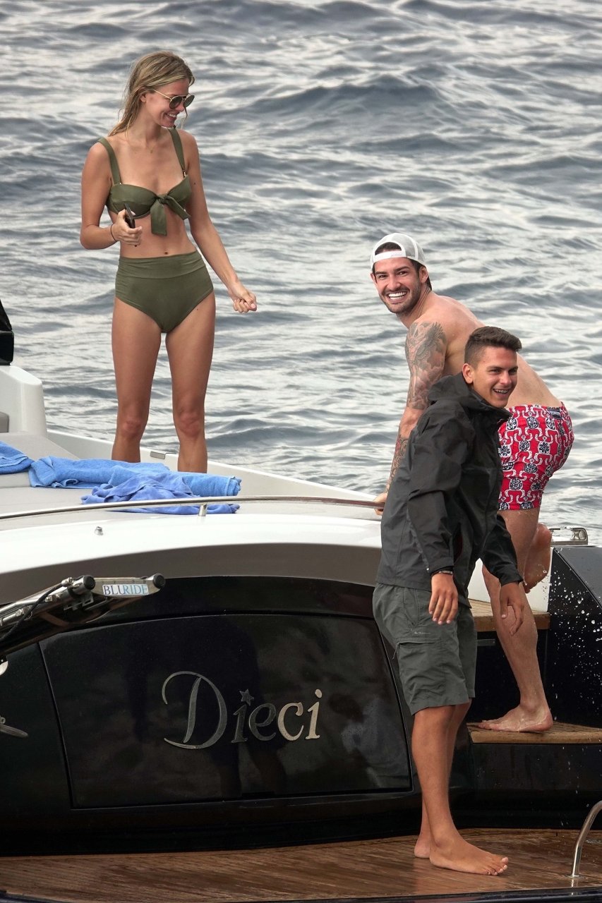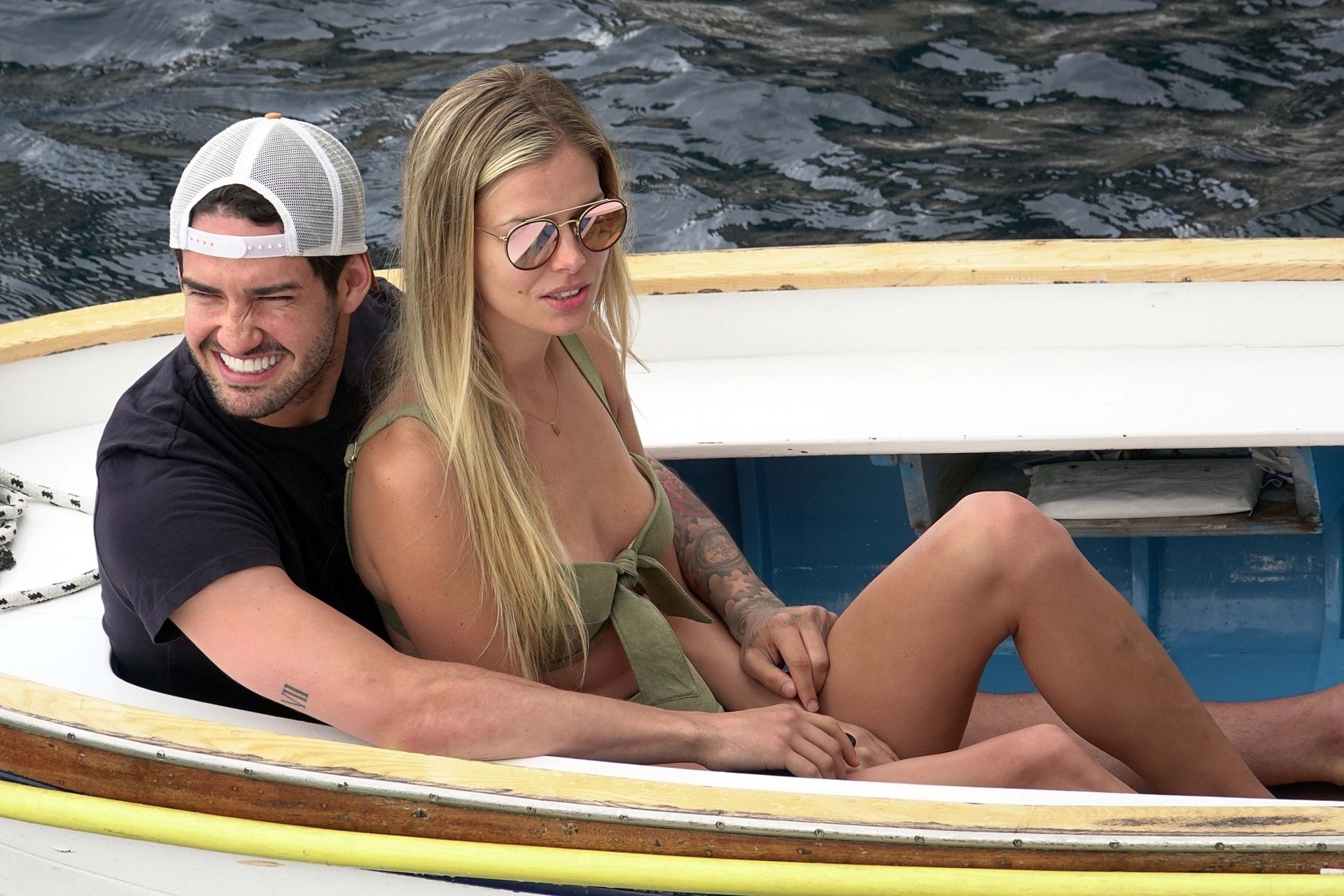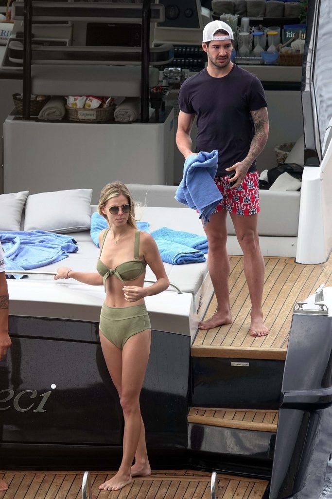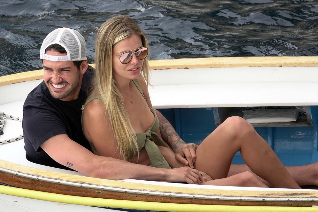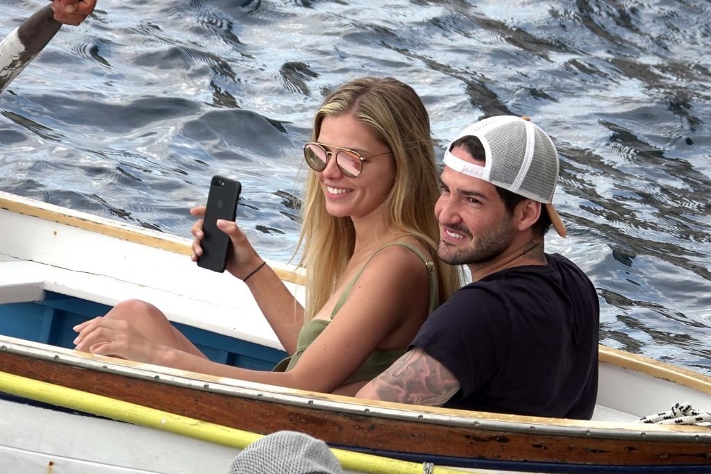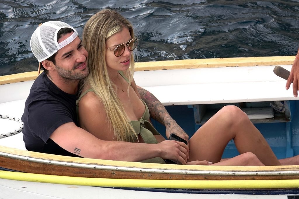Ex-estrela do futebol brasileiro Alexandre Pato aproveita um dia no mar com sua namorada Danielle Knudson em iate de luxo em Capri, 12/06/2018. Alexandre foi vinculado nesta manhã a uma transferência para o Celtic.