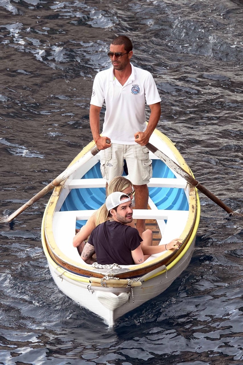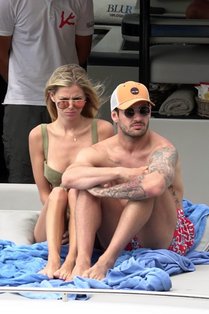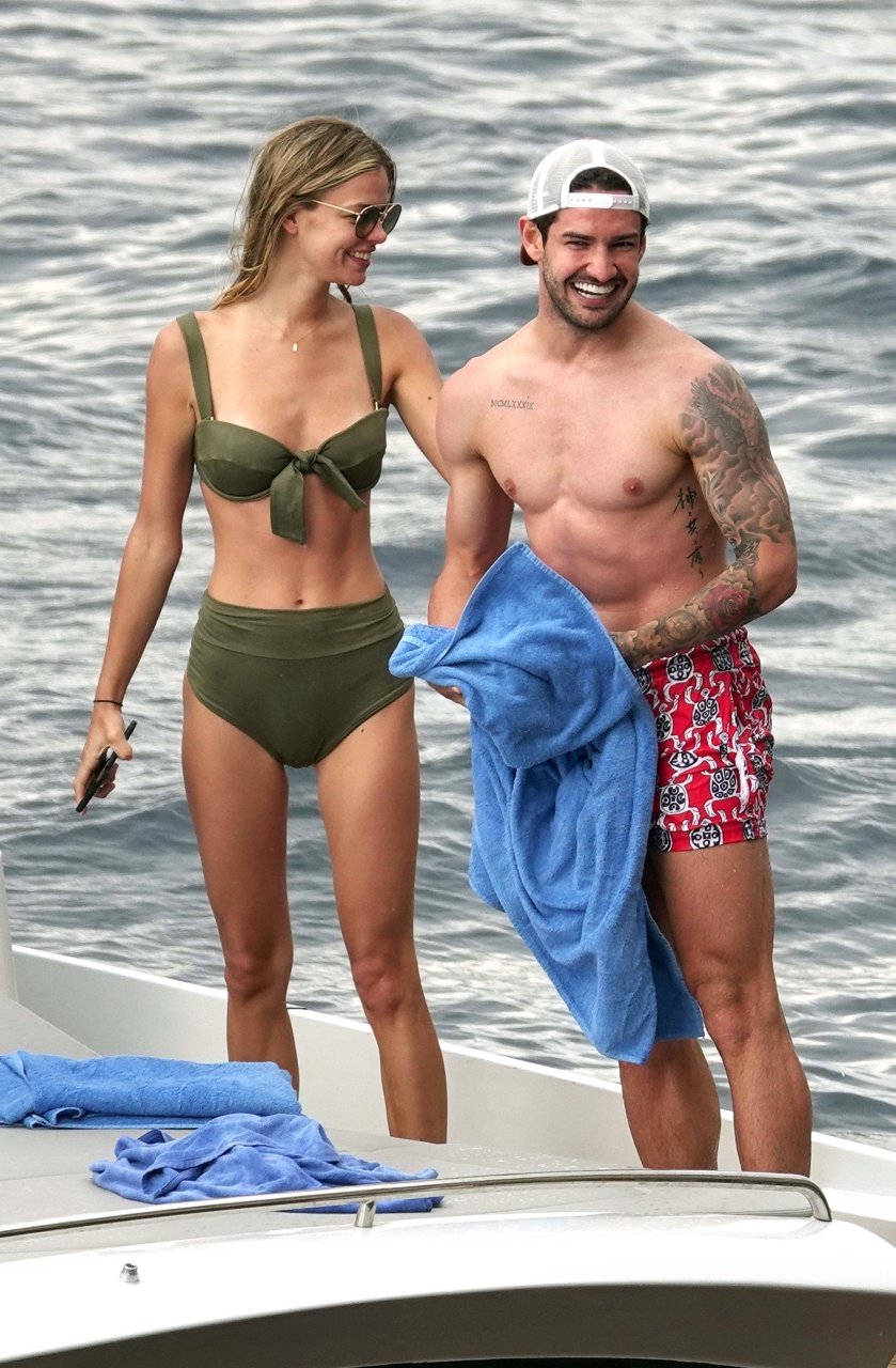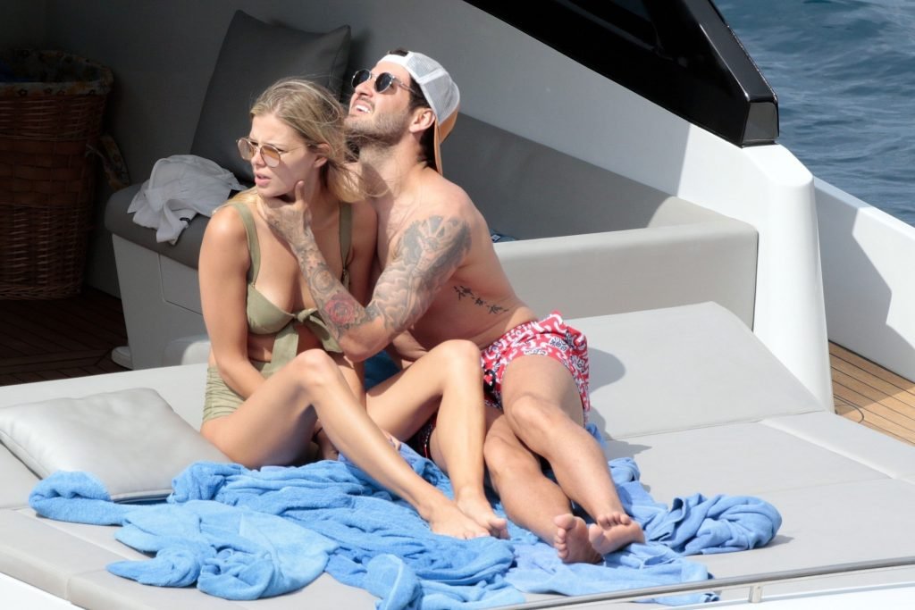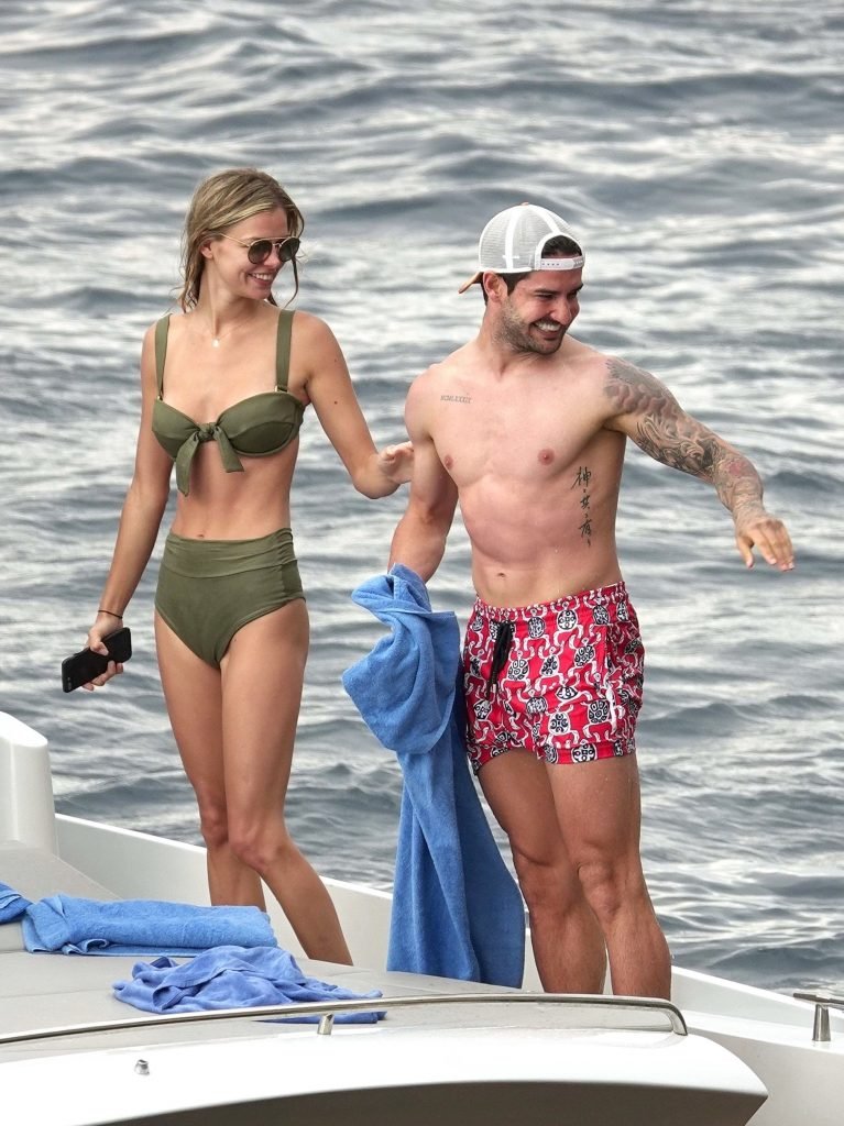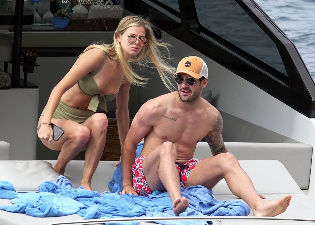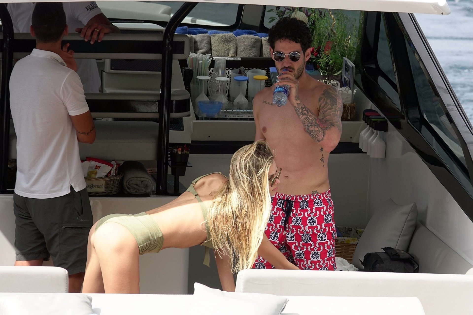 Ex-estrela do futebol brasileiro Alexandre Pato aproveita um dia no mar com sua namorada Danielle Knudson em iate de luxo em Capri, 12/06/2018. Alexandre foi vinculado nesta manhã a uma transferência para o Celtic.