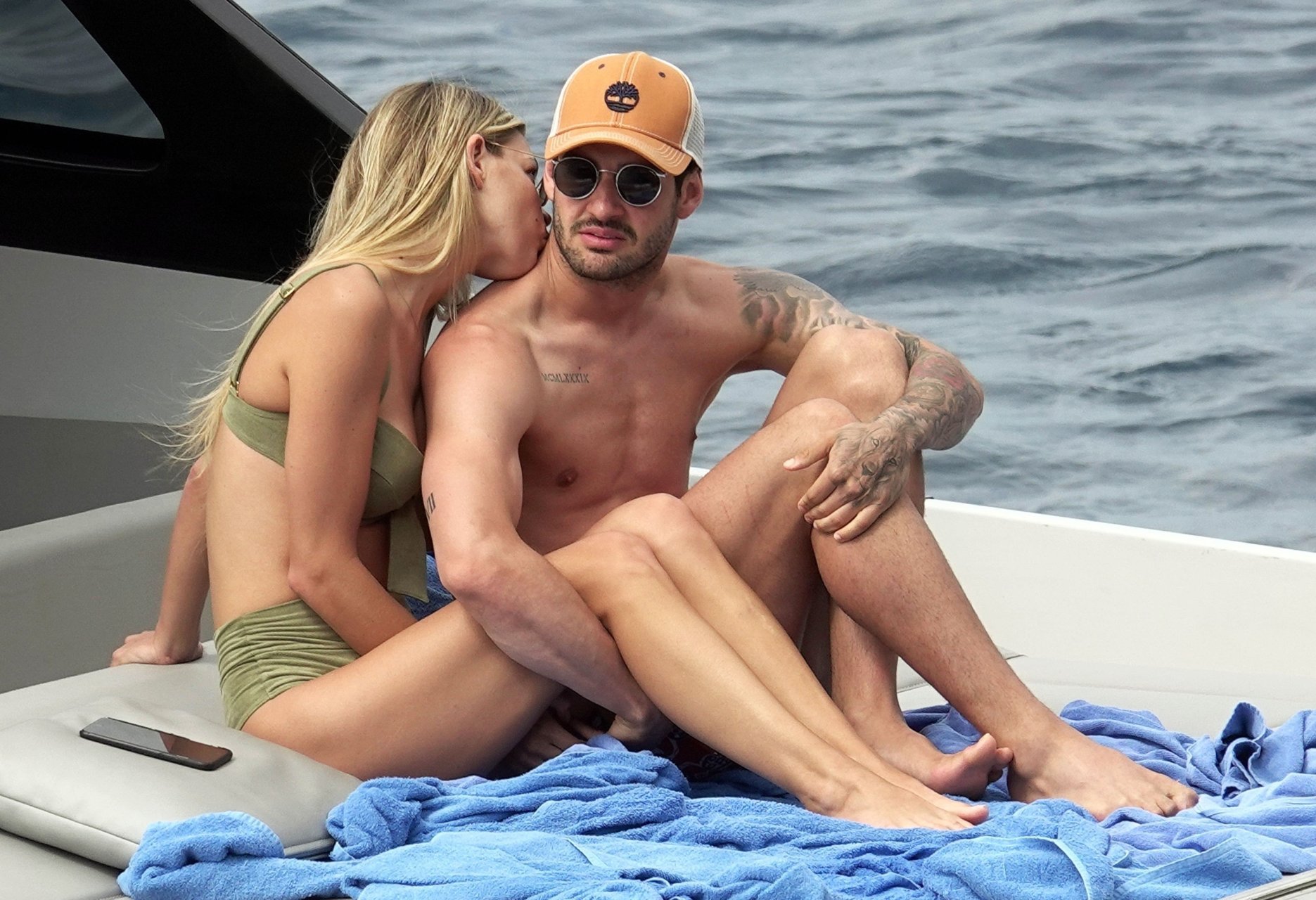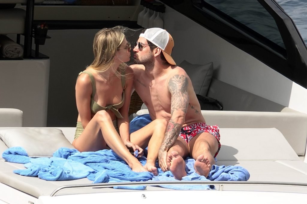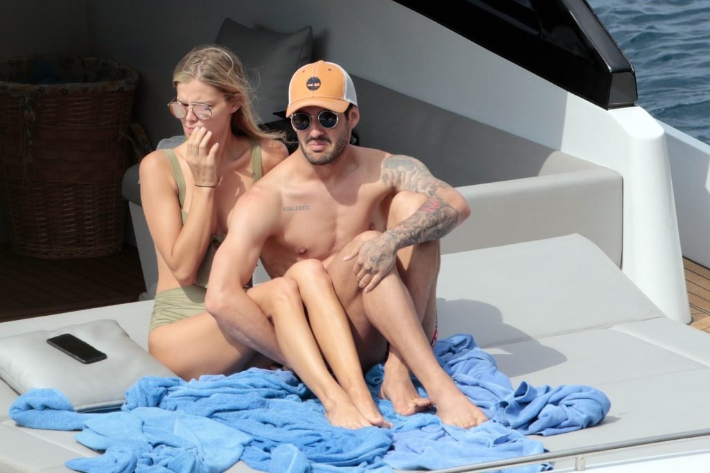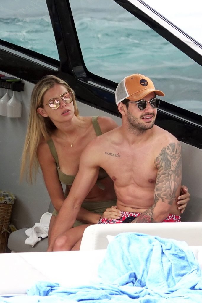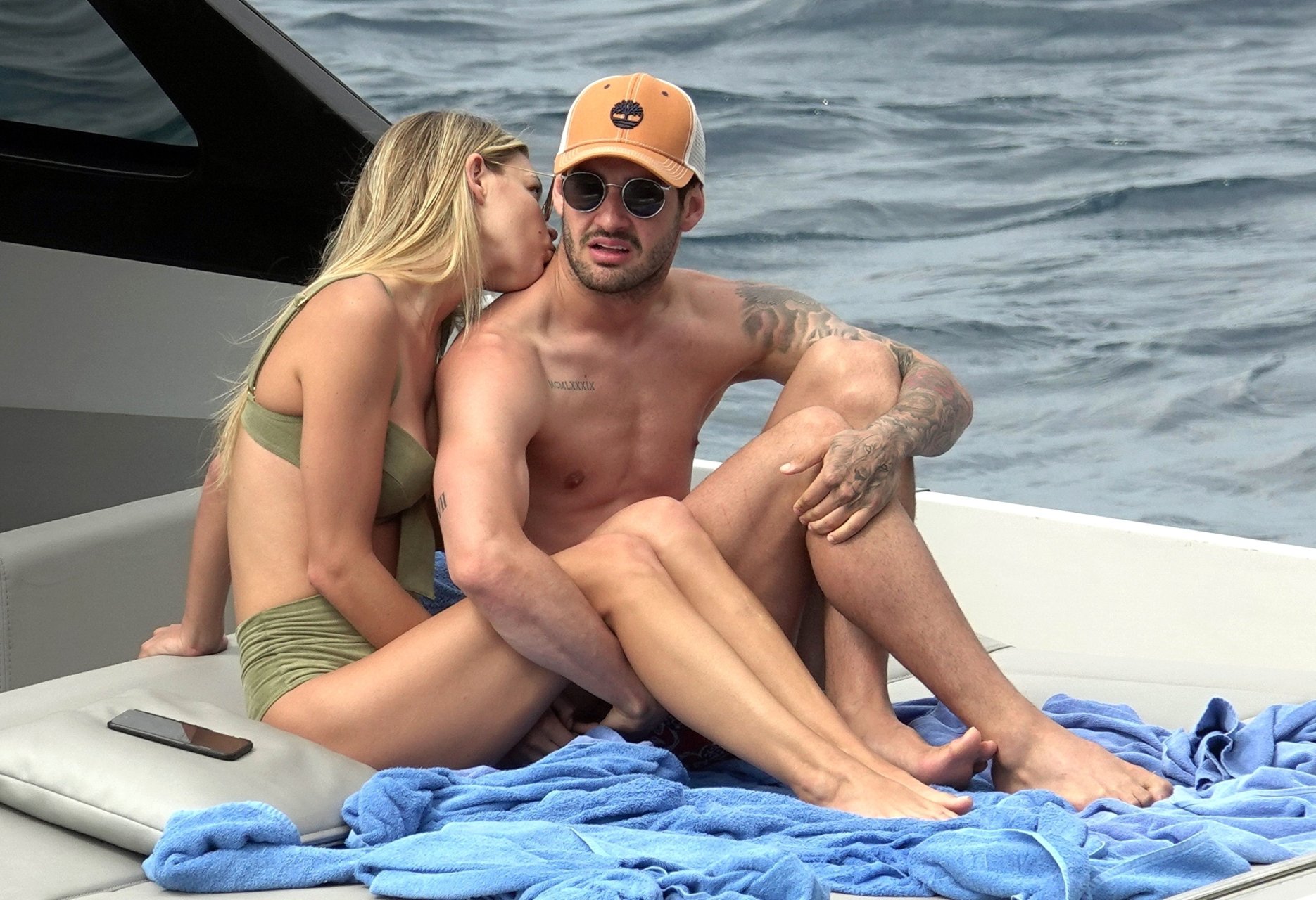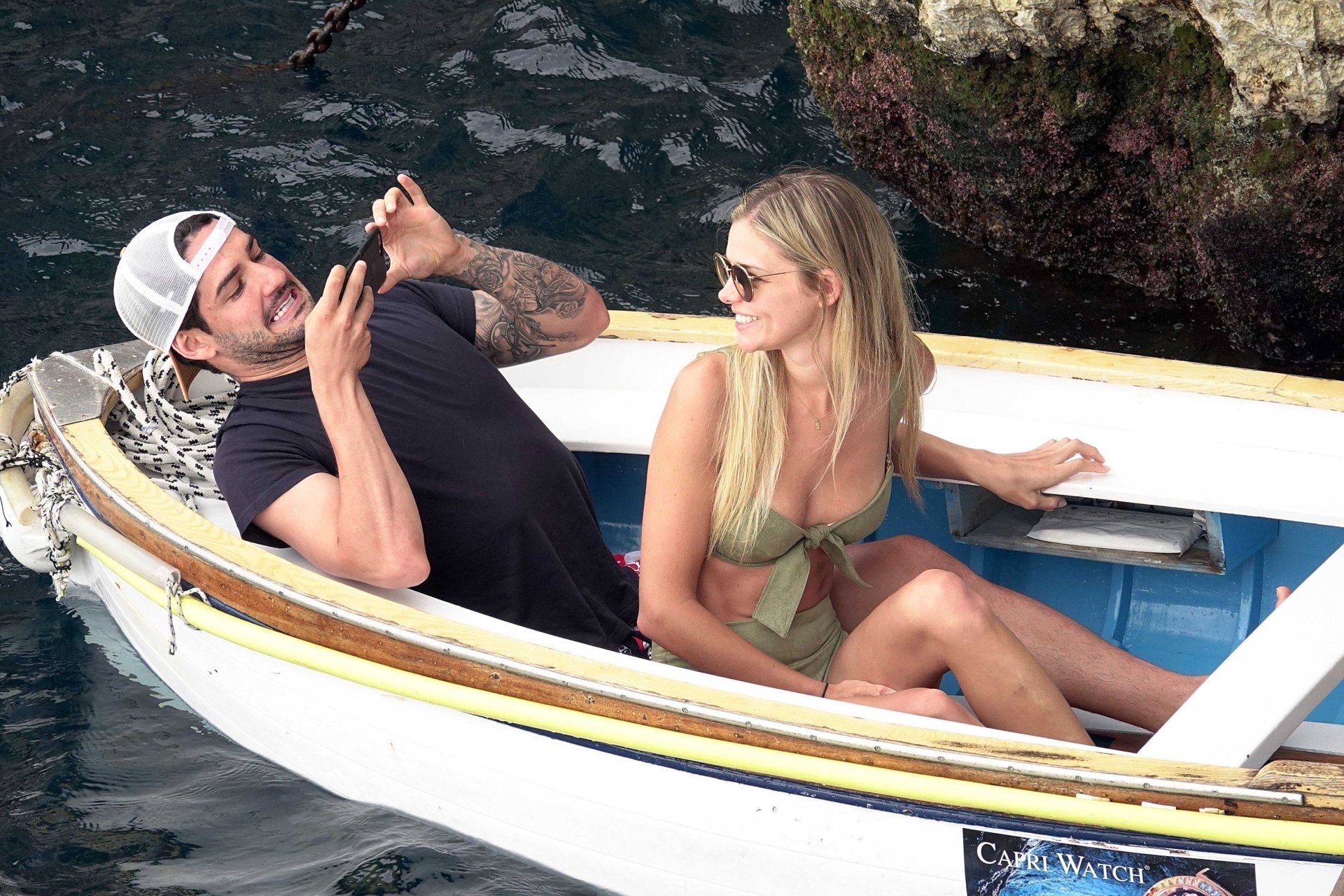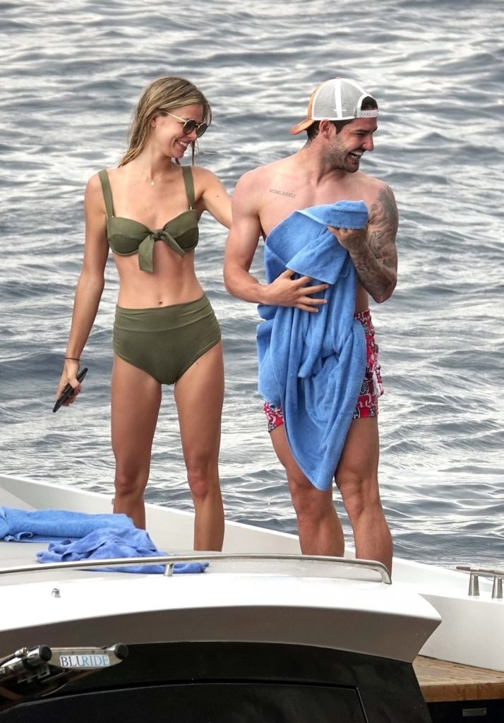 Ex-estrela do futebol brasileiro Alexandre Pato aproveita um dia no mar com sua namorada Danielle Knudson em iate de luxo em Capri, 12/06/2018. Alexandre foi vinculado nesta manhã a uma transferência para o Celtic.