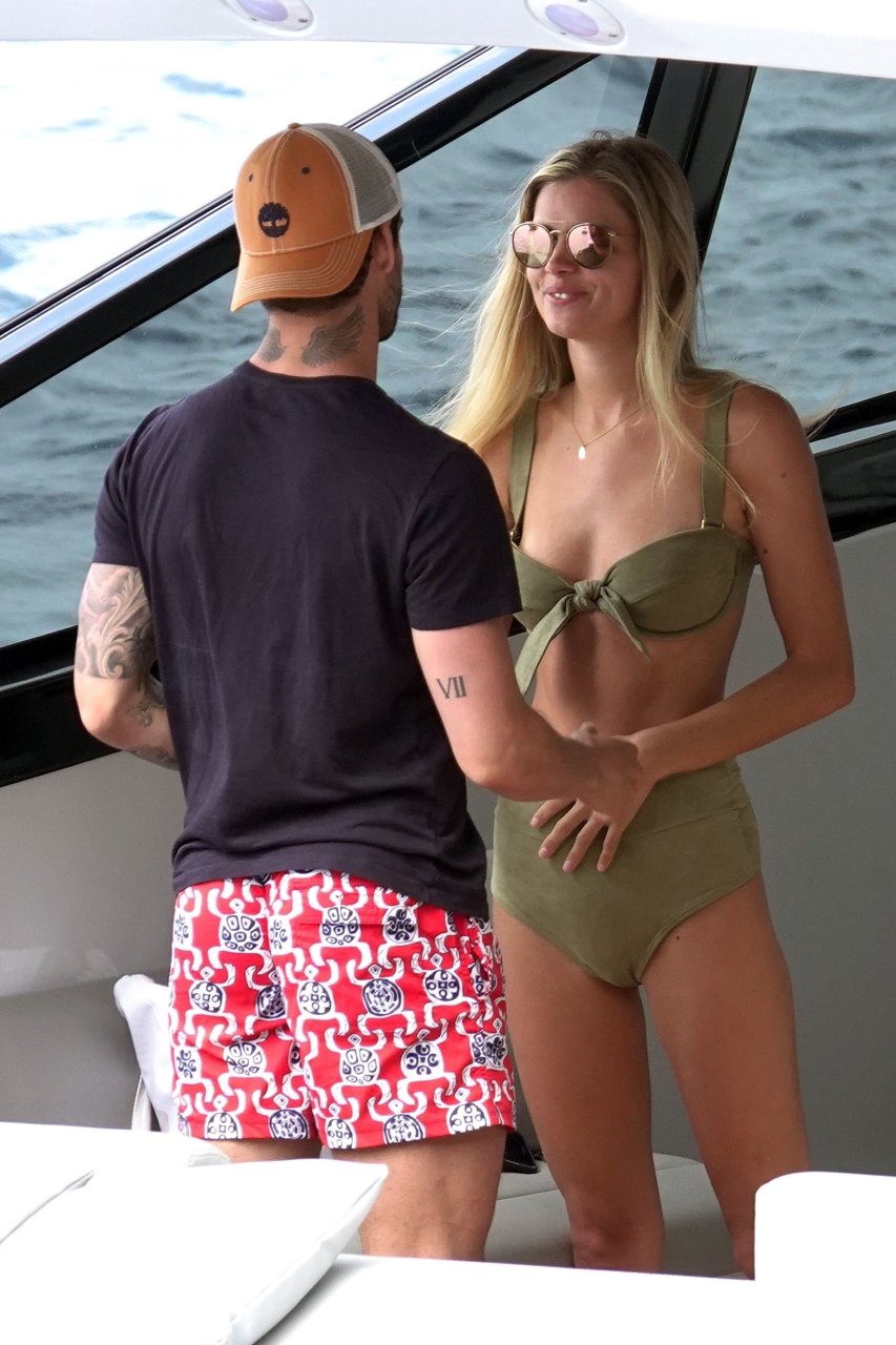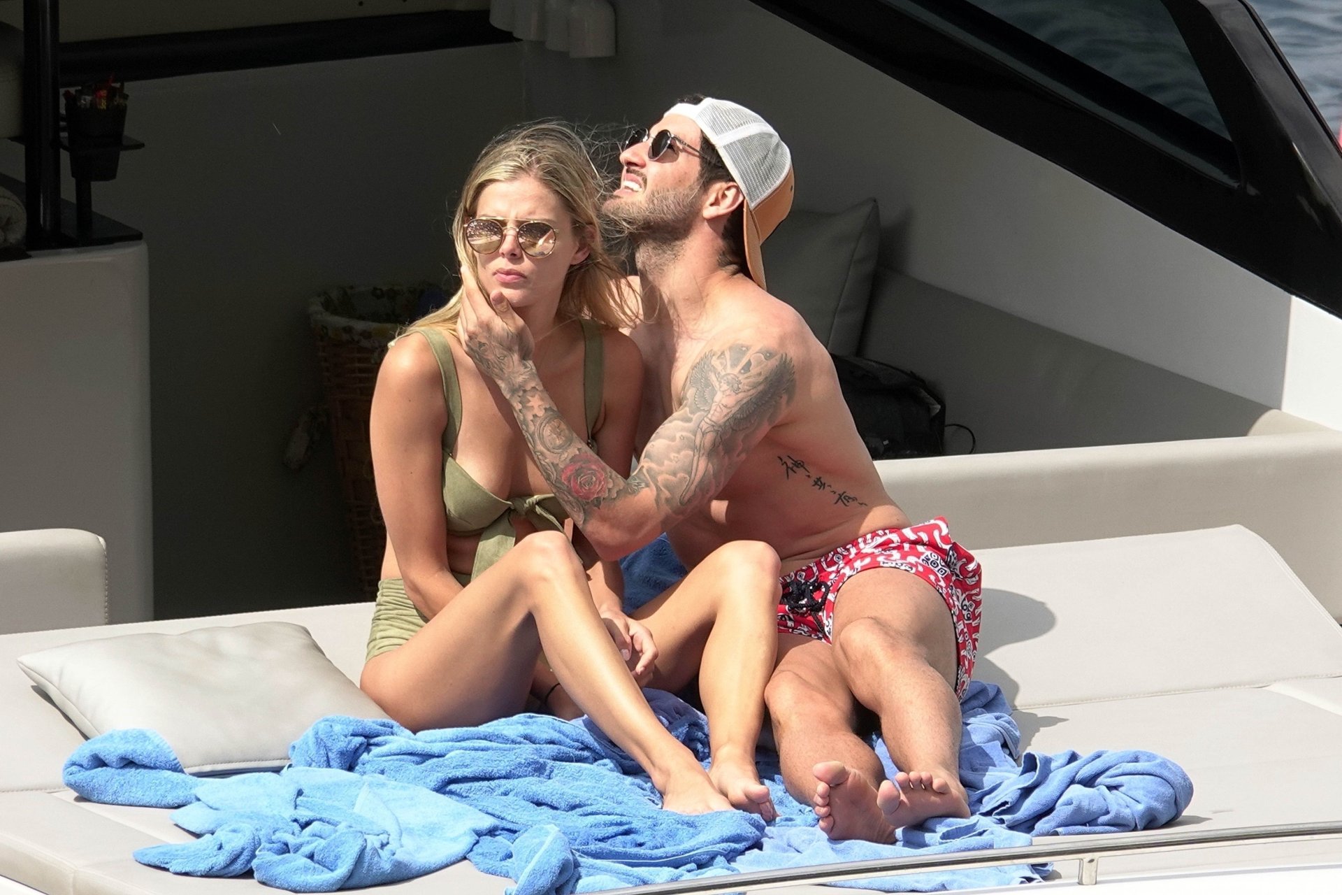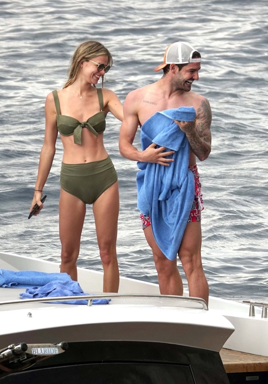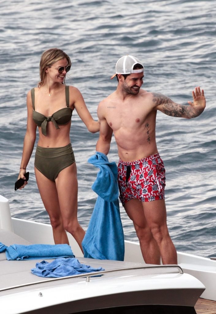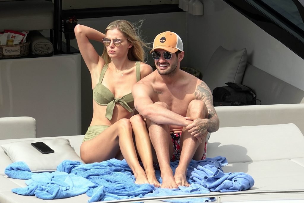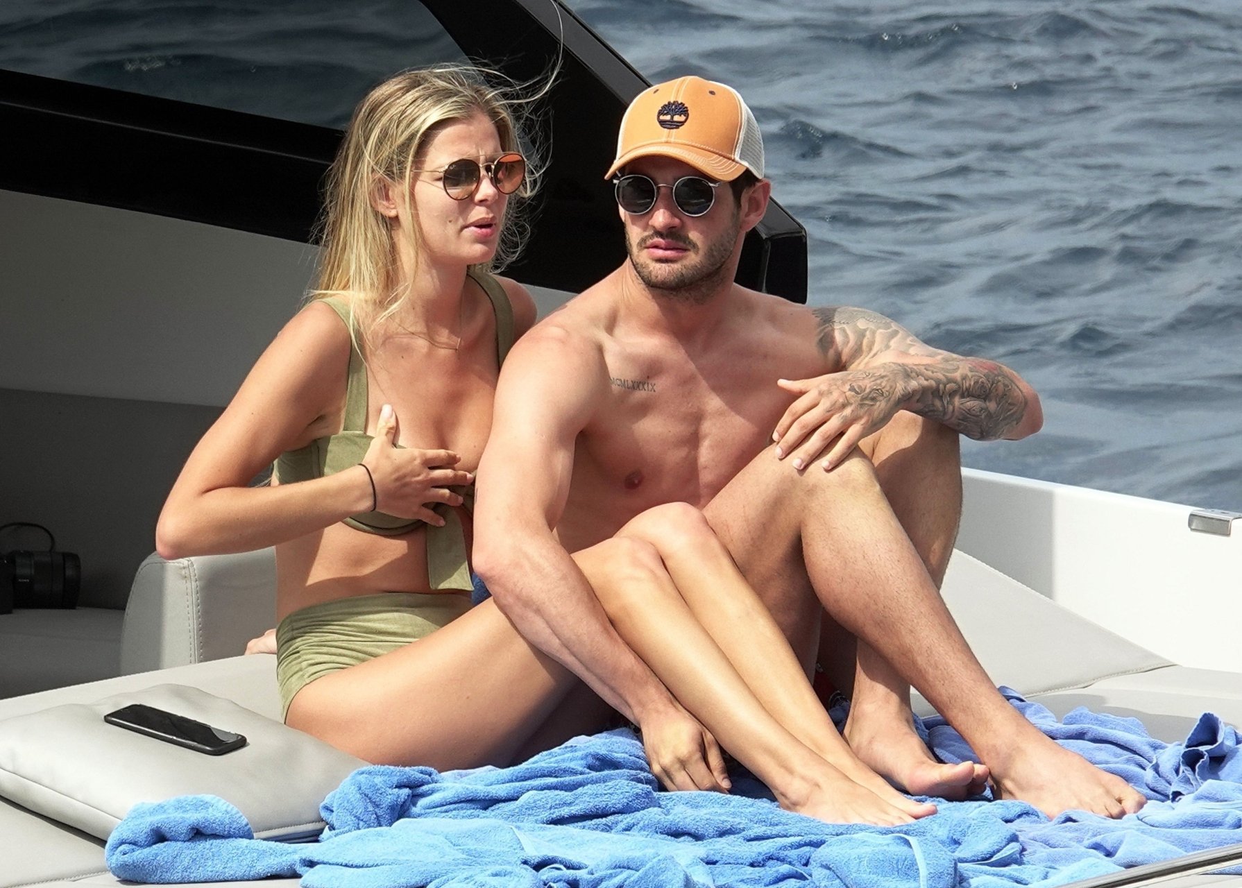 Ex-estrela do futebol brasileiro Alexandre Pato aproveita um dia no mar com sua namorada Danielle Knudson em iate de luxo em Capri, 12/06/2018. Alexandre foi vinculado nesta manhã a uma transferência para o Celtic.