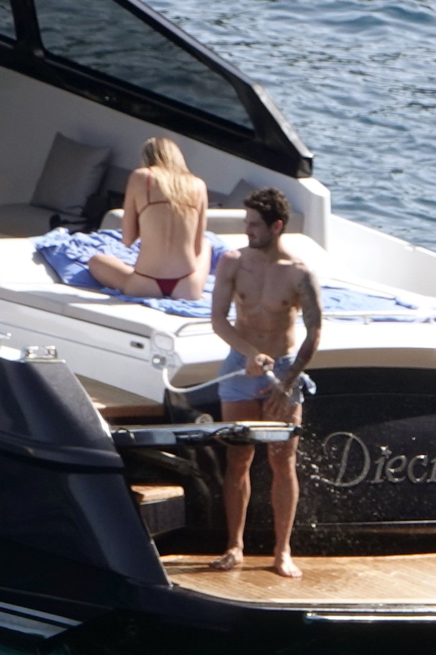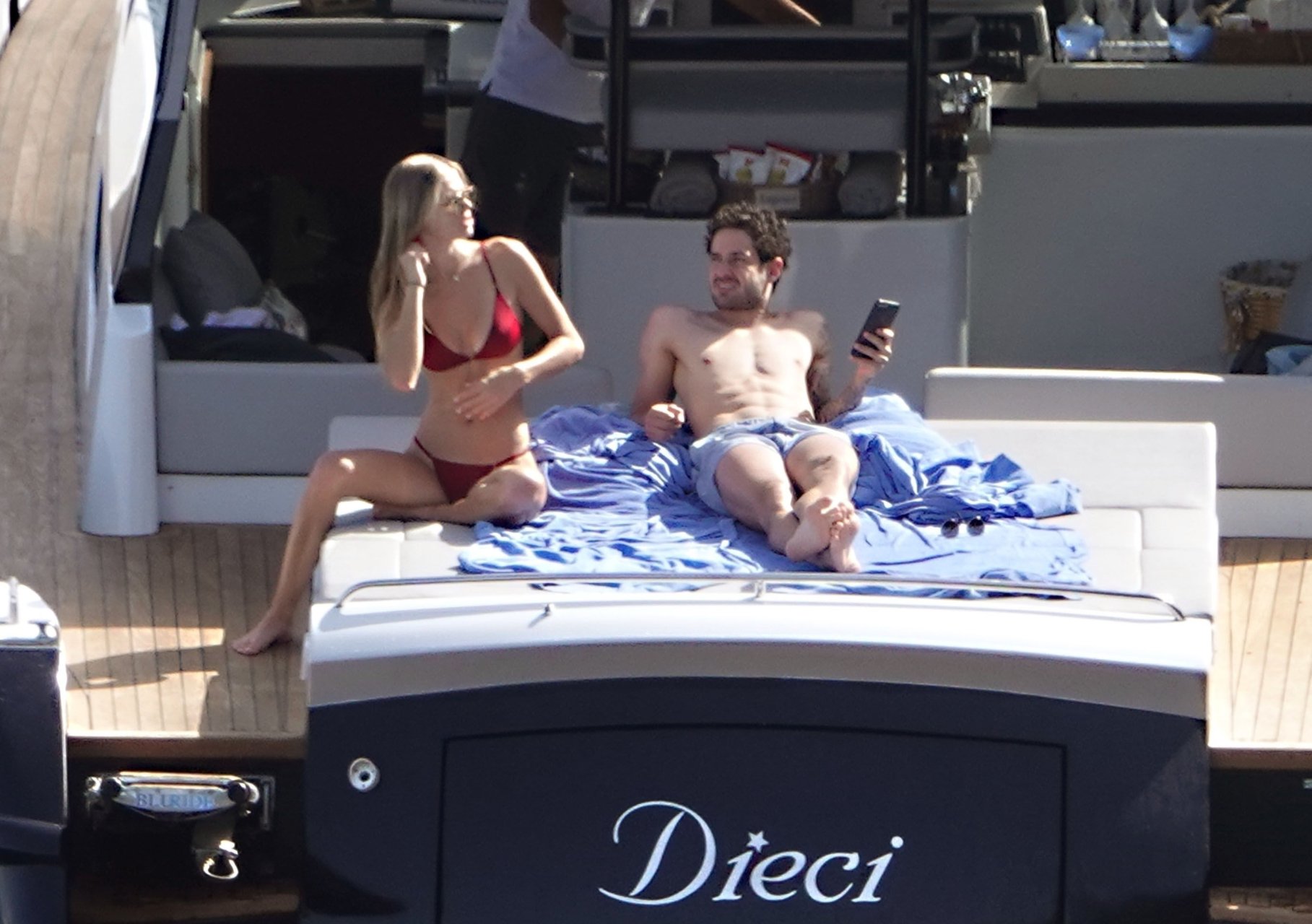 Ex-jogador do AC Milan e da seleção brasileira Alexandre Pato, que atualmente atua pelo time da Superliga chinesa Tianjin Quanjian, foi visto com sua nova namorada e modelo Danielle Knudson, em 11/06/2018. O casal apaixonado aproveitou um passeio romântico de barco durante as férias na Costa Amalfitana, na Itália.