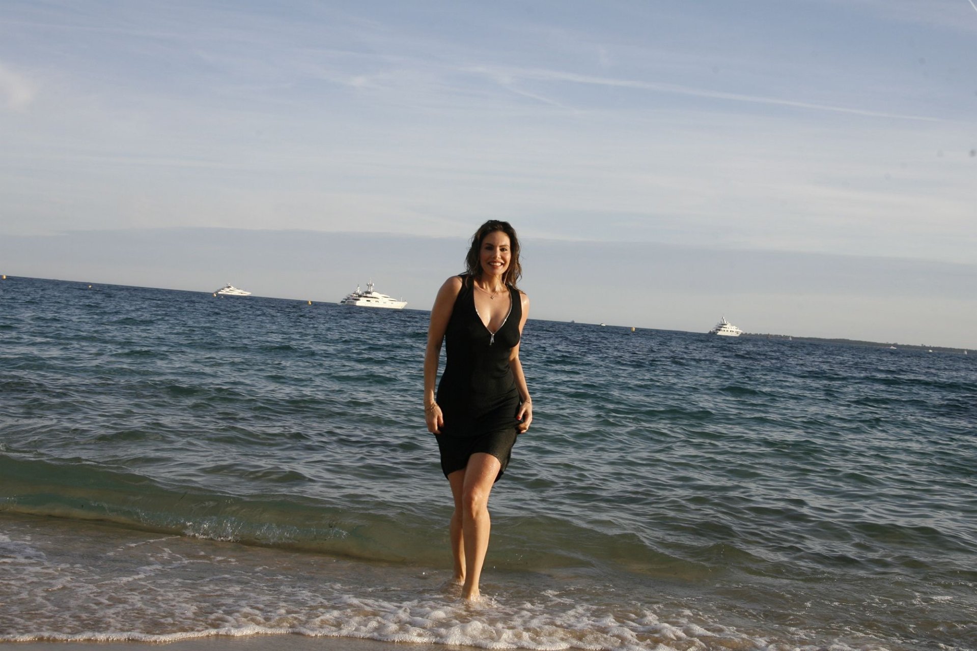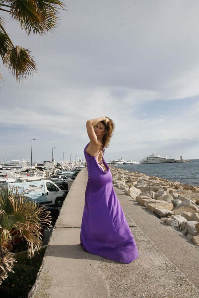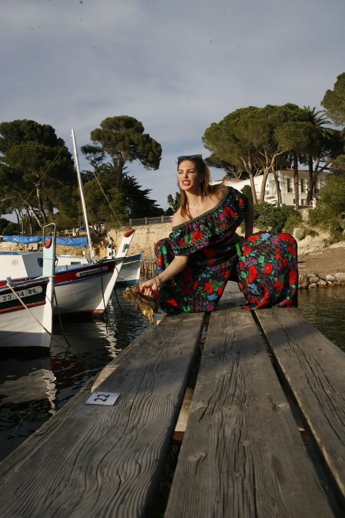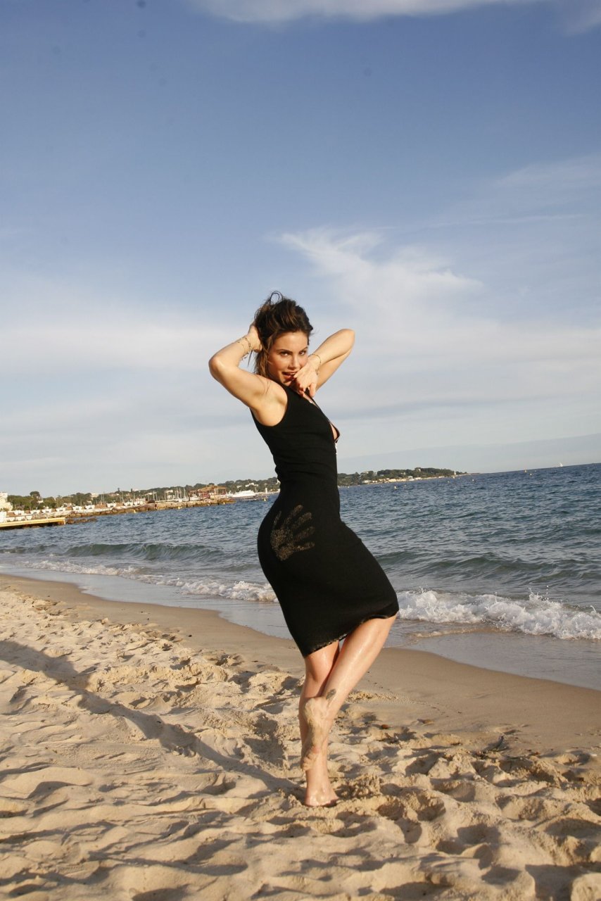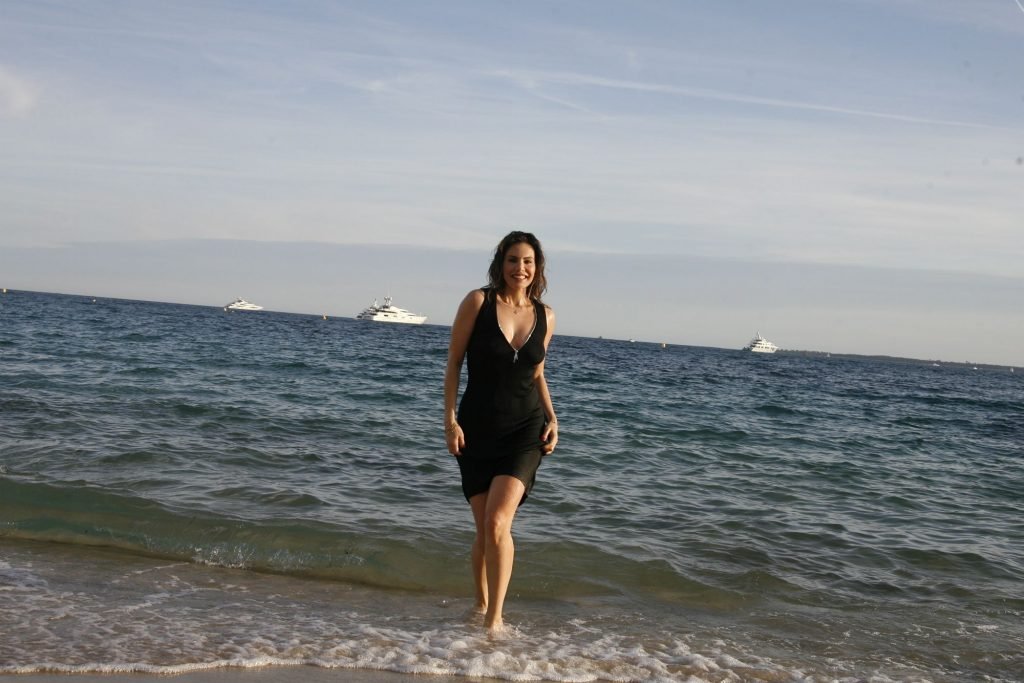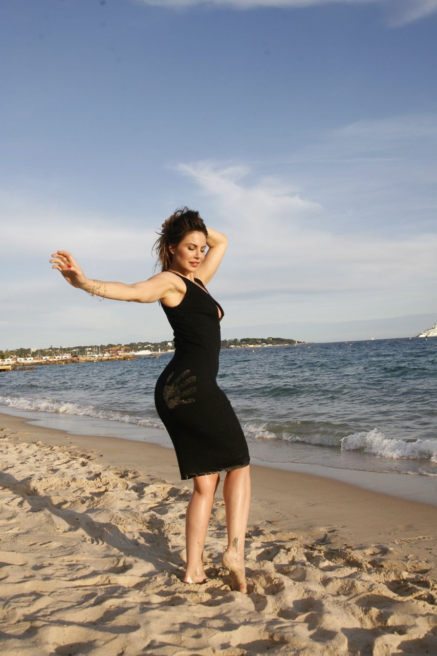 Dany Michalski posa topless coberta na sessão de fotos de Andreas Meyer na praia em Cannes, França, 22/05/2017. Dany Michalski é apresentadora, atriz & modelo internacional.
