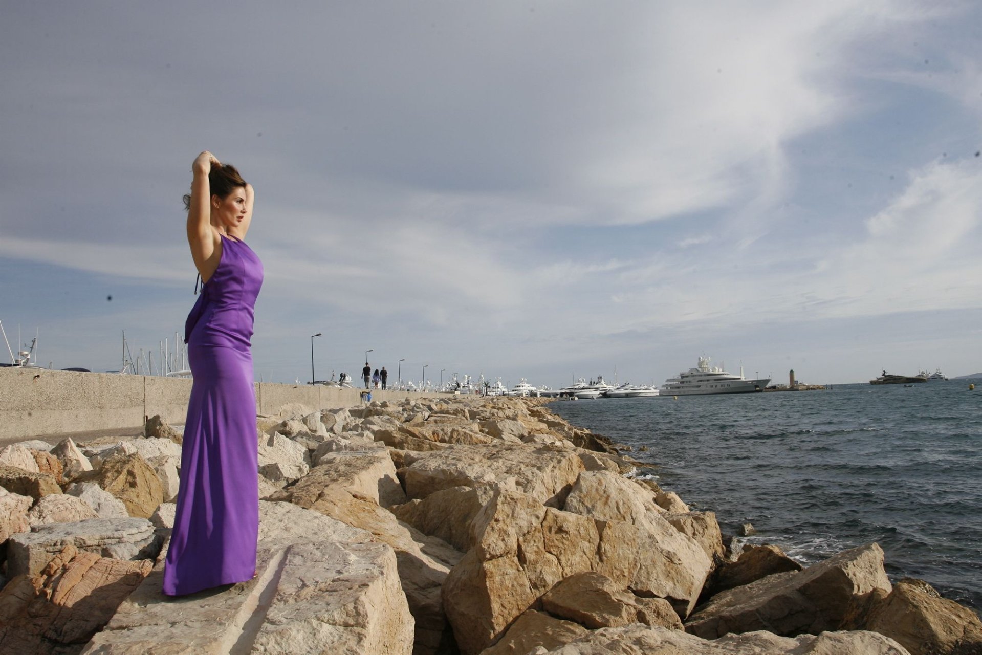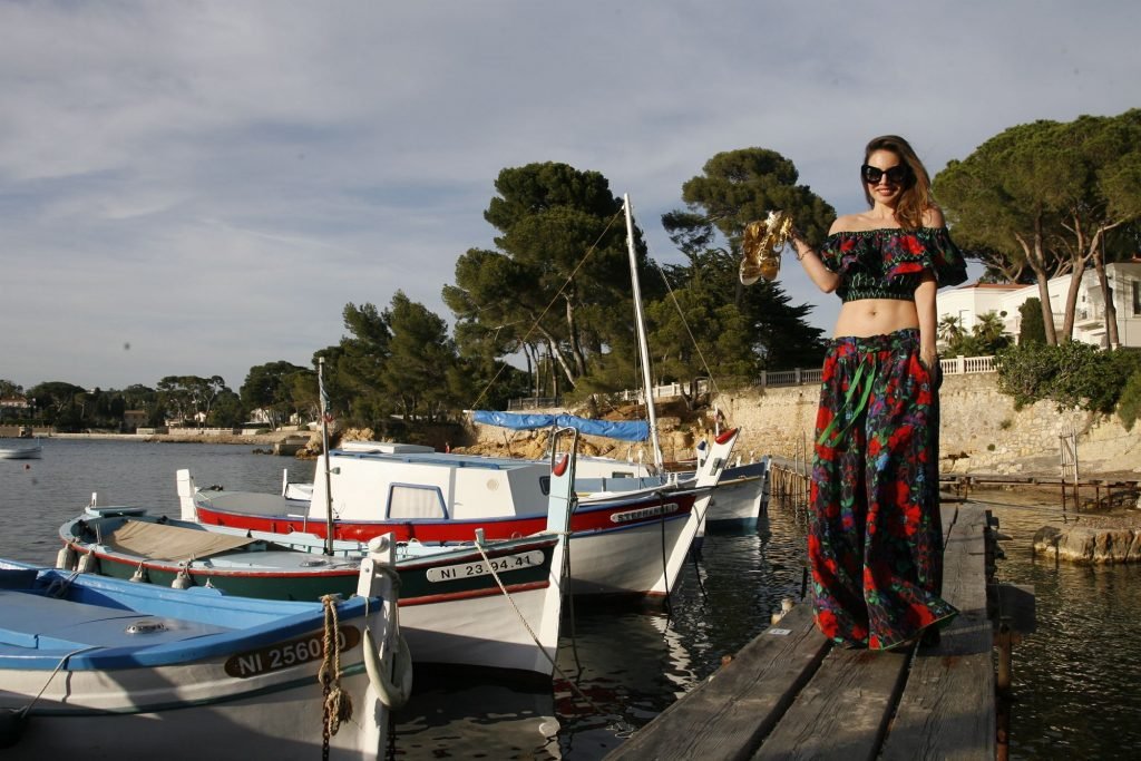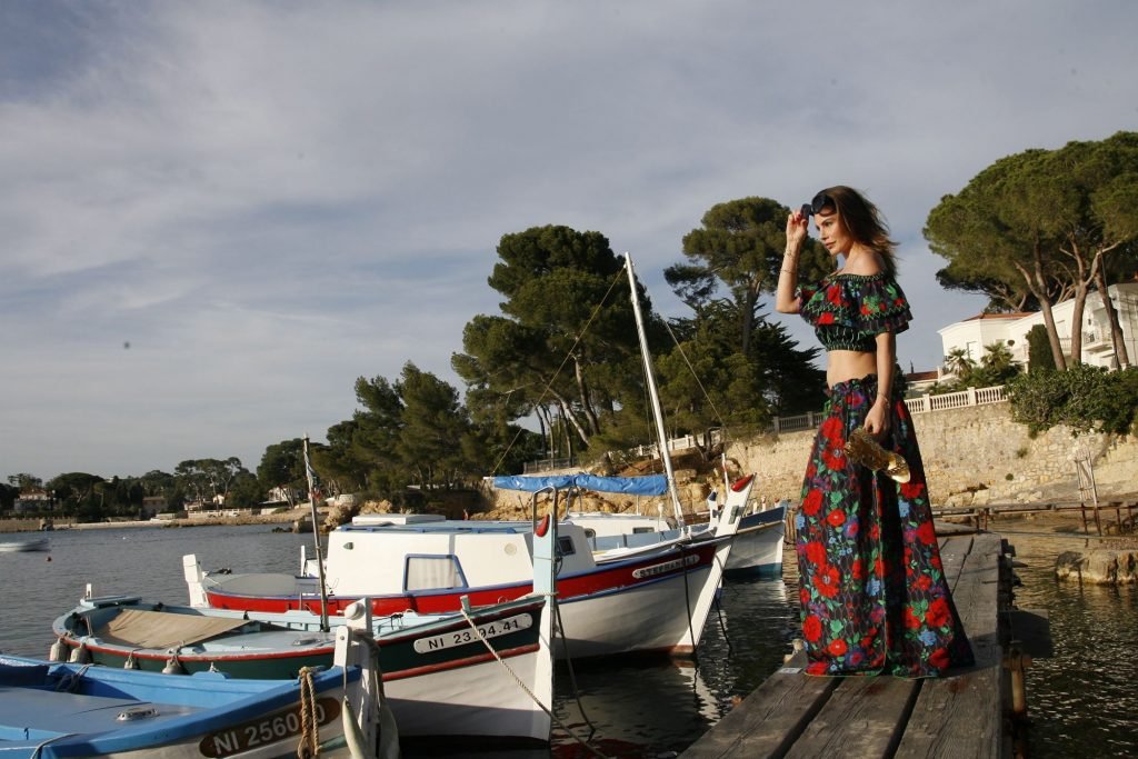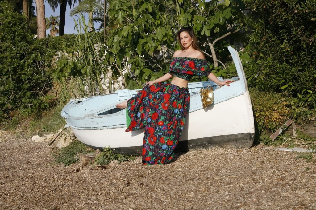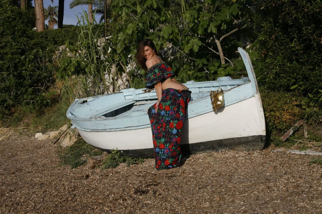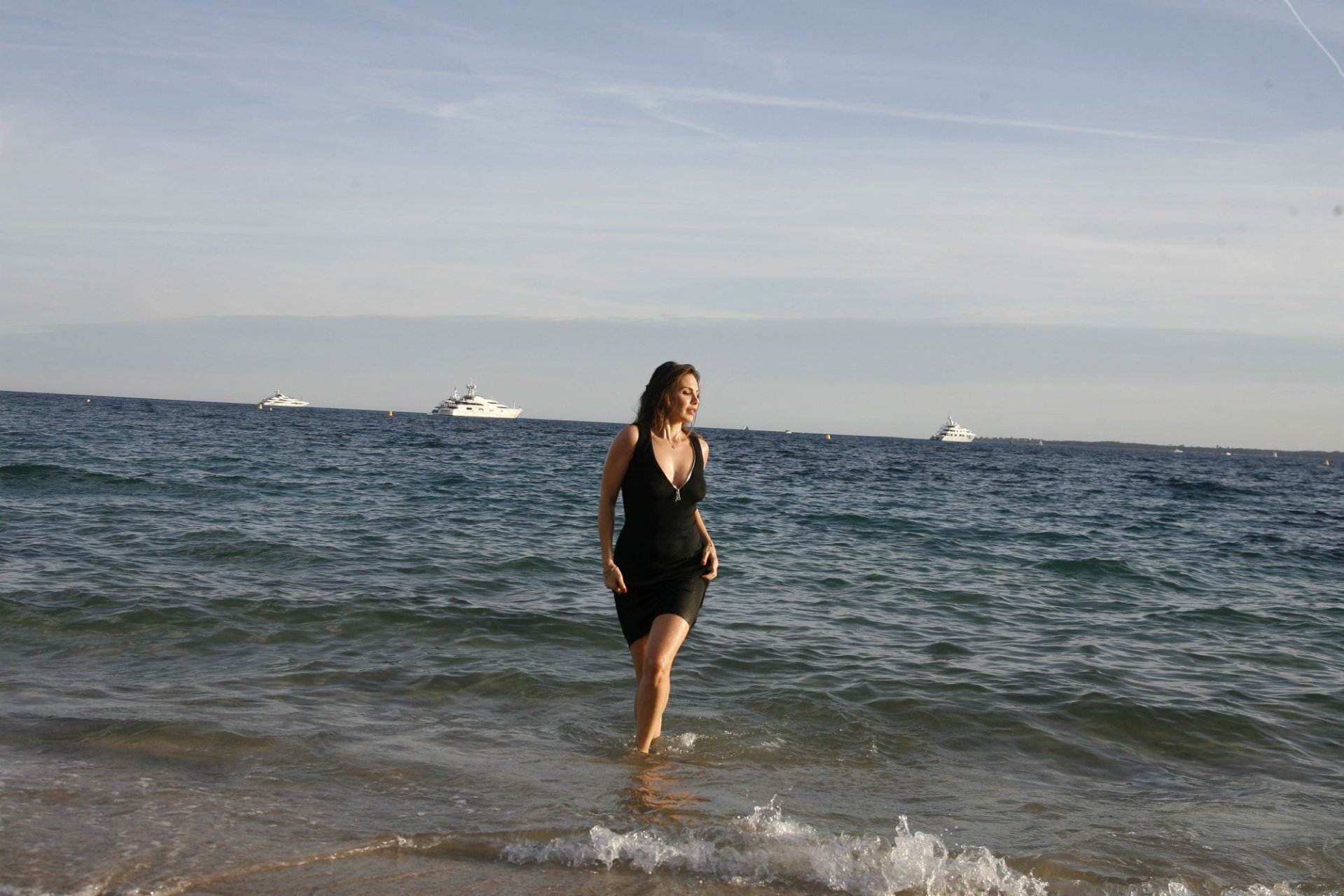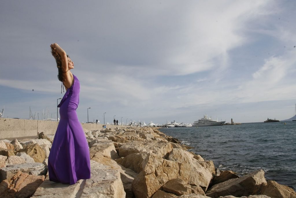 Dany Michalski posa topless coberta na sessão de fotos de Andreas Meyer na praia em Cannes, França, 22/05/2017. Dany Michalski é apresentadora, atriz & modelo internacional.