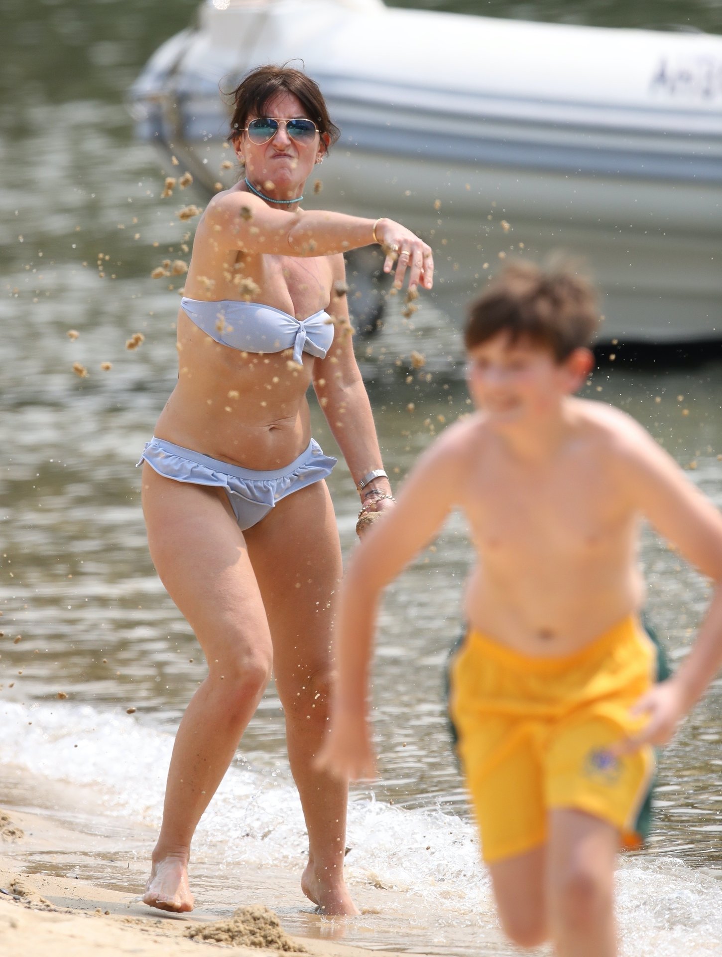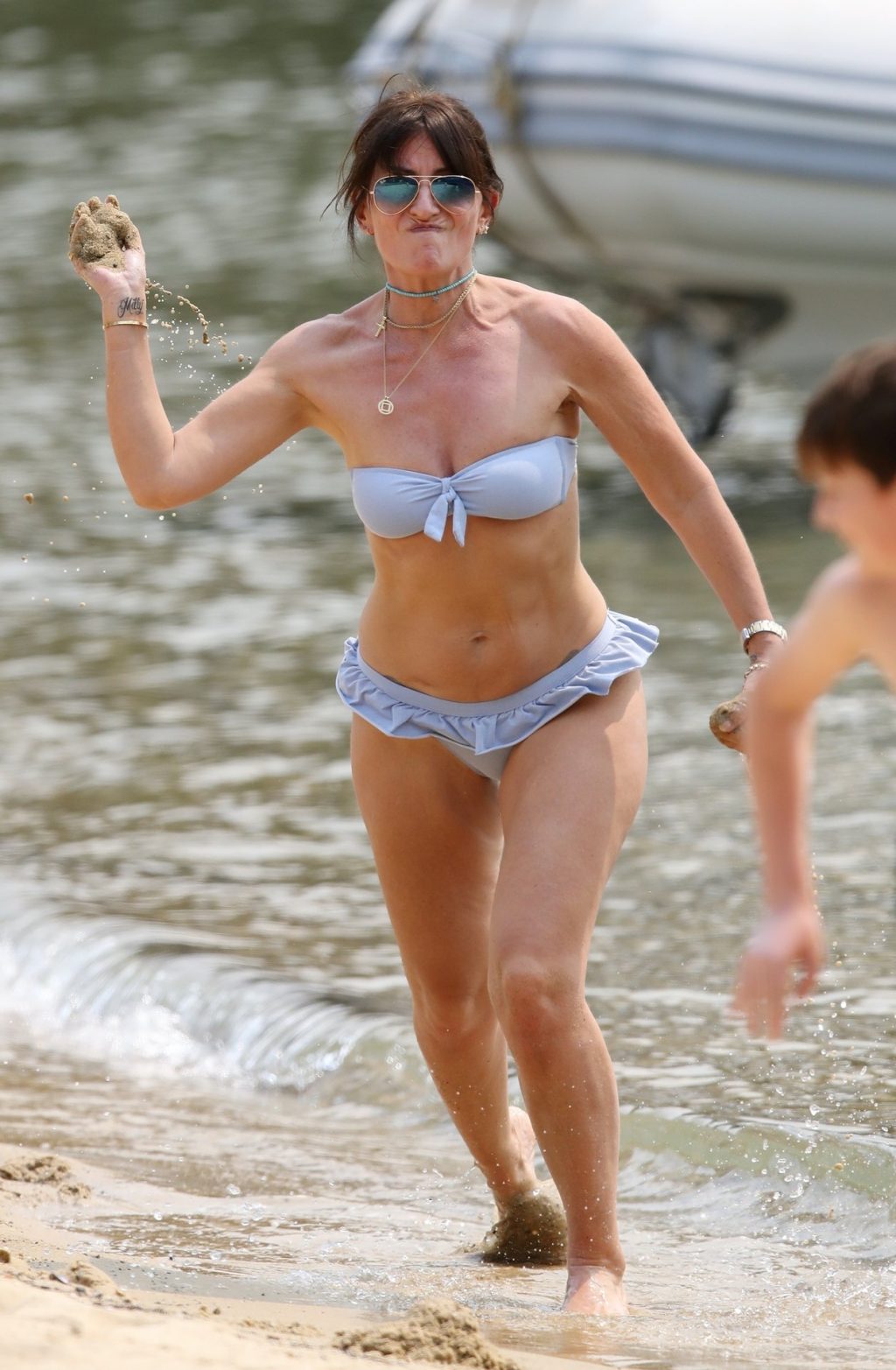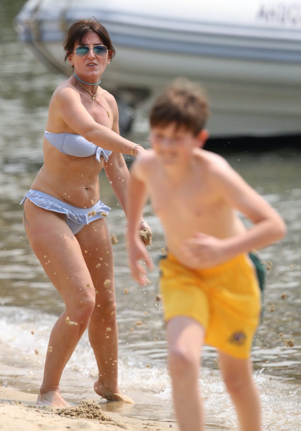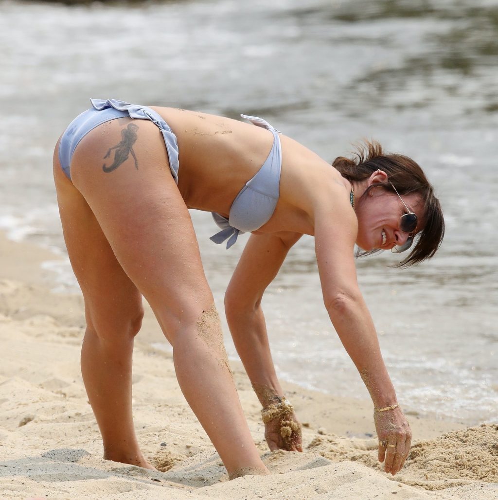 Davina McCall foi fotografada aproveitando uma tarde na praia com sua família na Austrália, 19/12/2019.