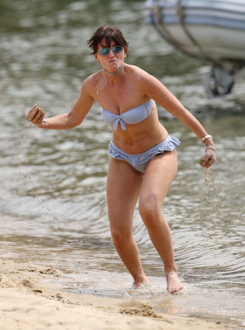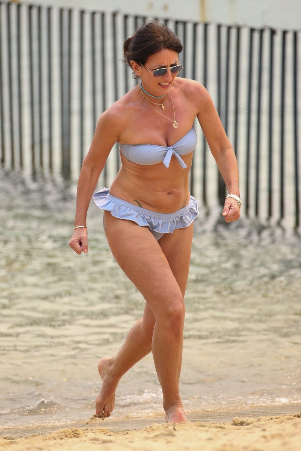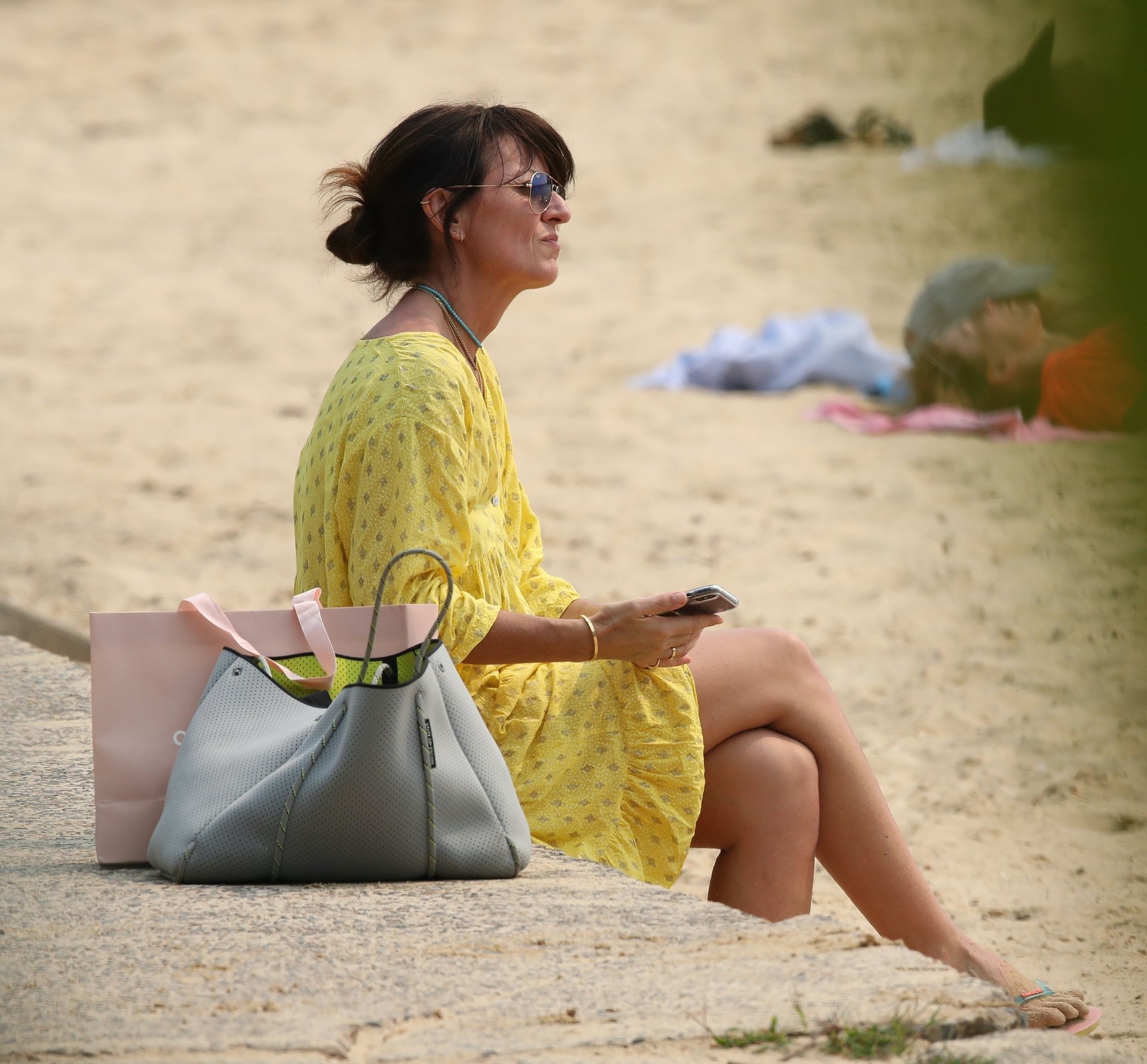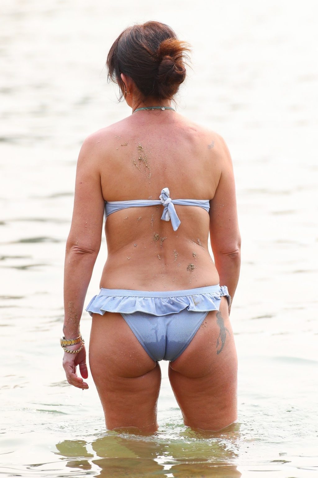 Davina McCall foi fotografada aproveitando uma tarde na praia com sua família na Austrália, 19/12/2019.