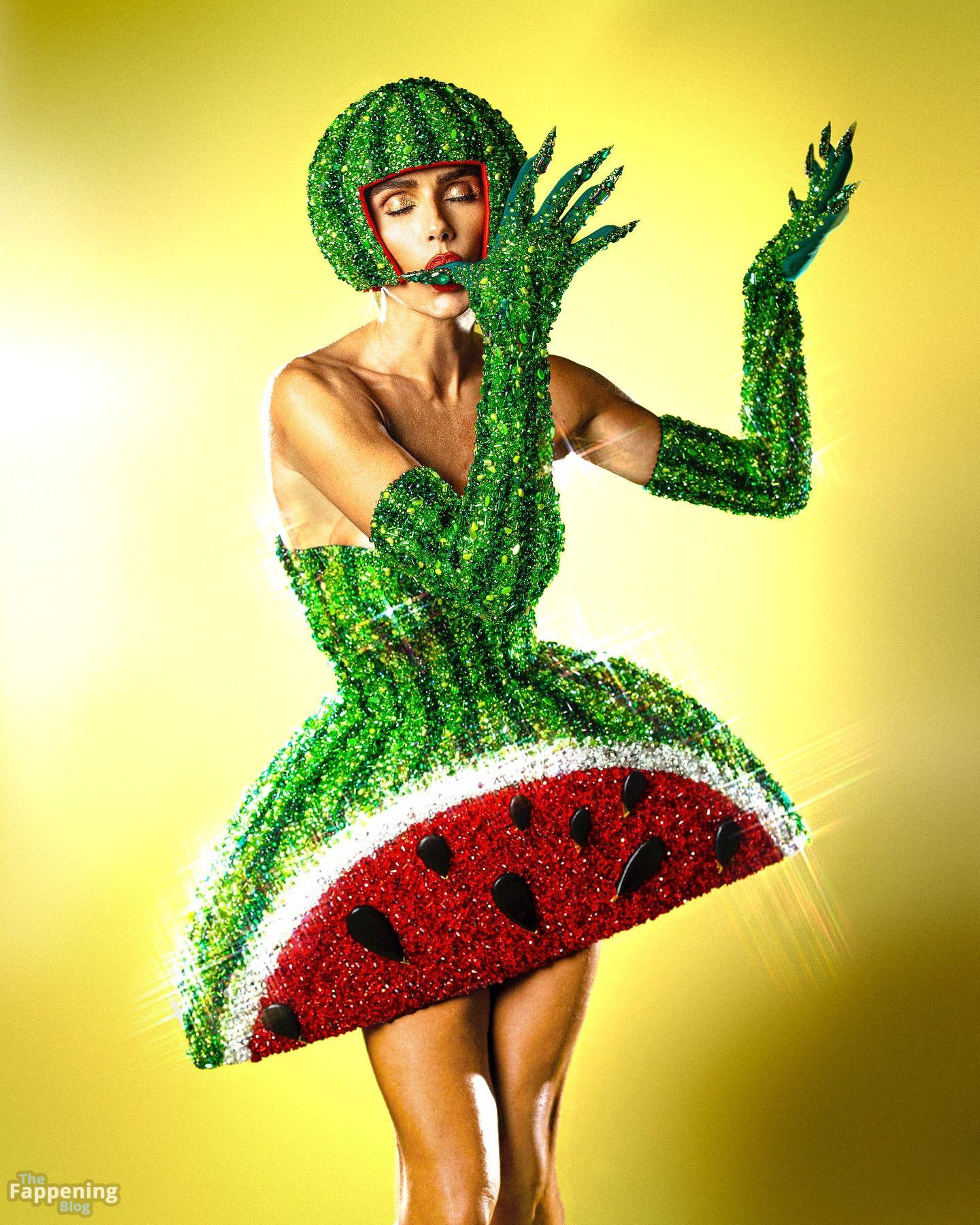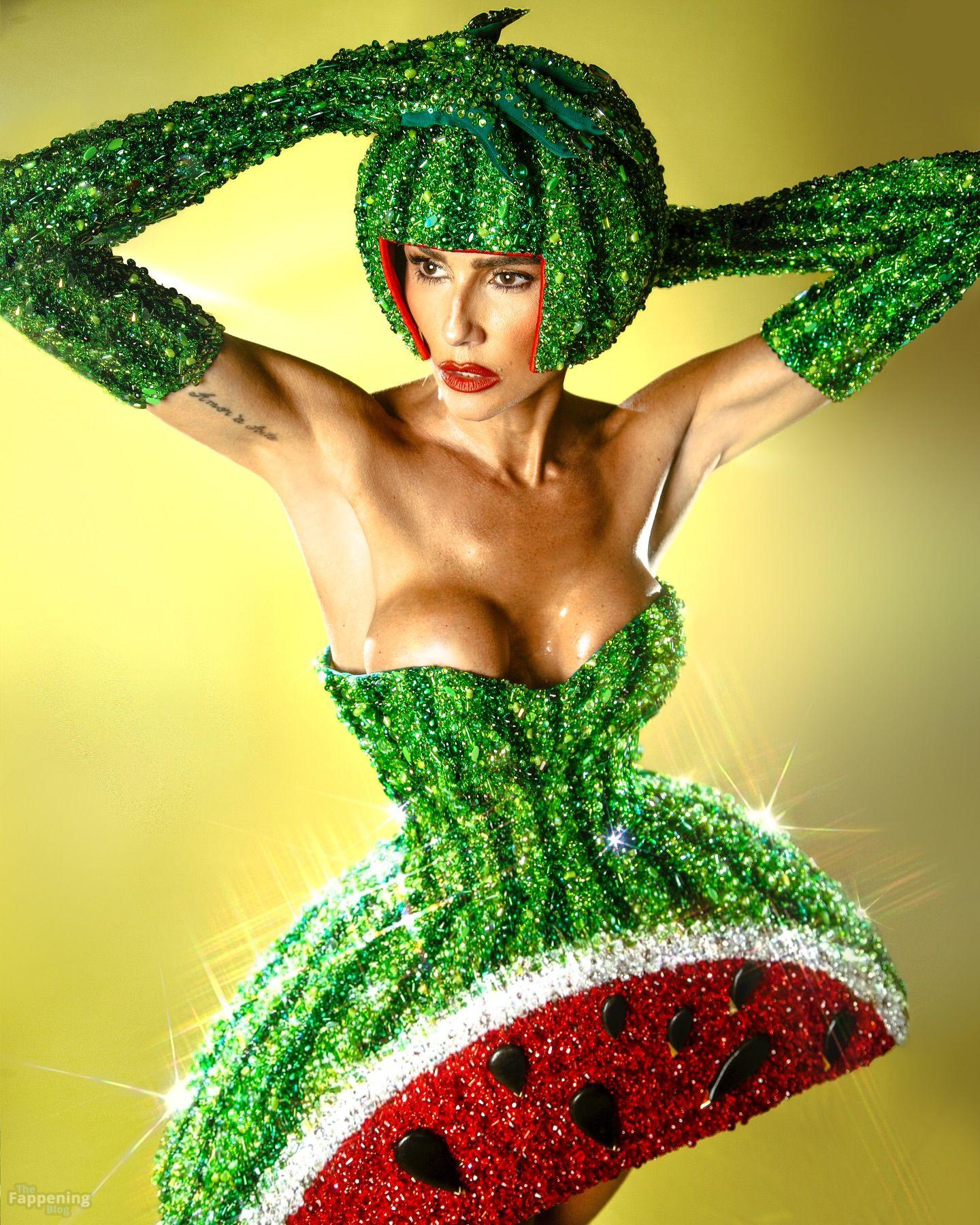 Atriz brasileira voluptuosa e de pernas longas, Deborah Secco impressiona em um look de melancia para um ensaio sensual.