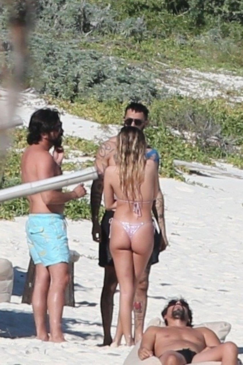 Delilah Belle Hamlin (20) e Suede Brooks (17) continuam a aproveitar sua escapada ensolarada em Tulum, México, 01/12/2019. As duas modelos e amigas exibiram suas silhuetas em biquínis mínimos e se divertiram um pouco, com Suede carregando Delilah sobre o ombro antes de cair na água.