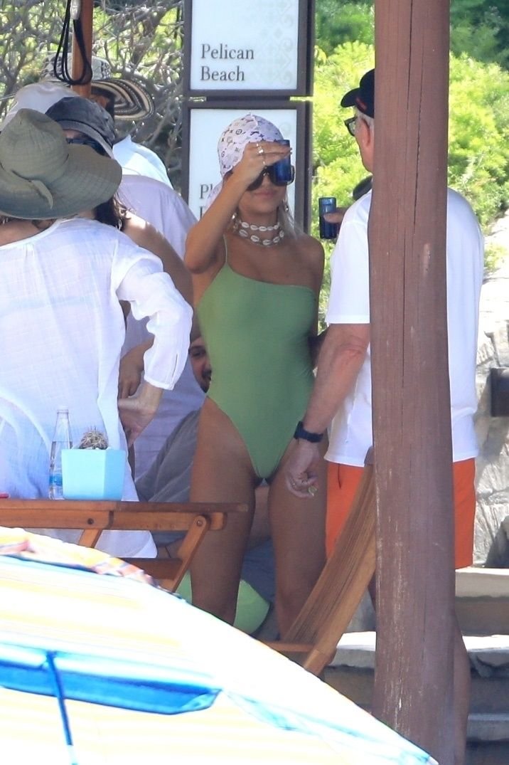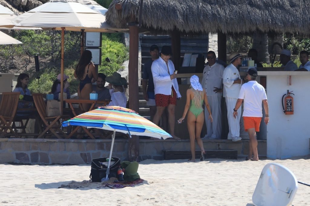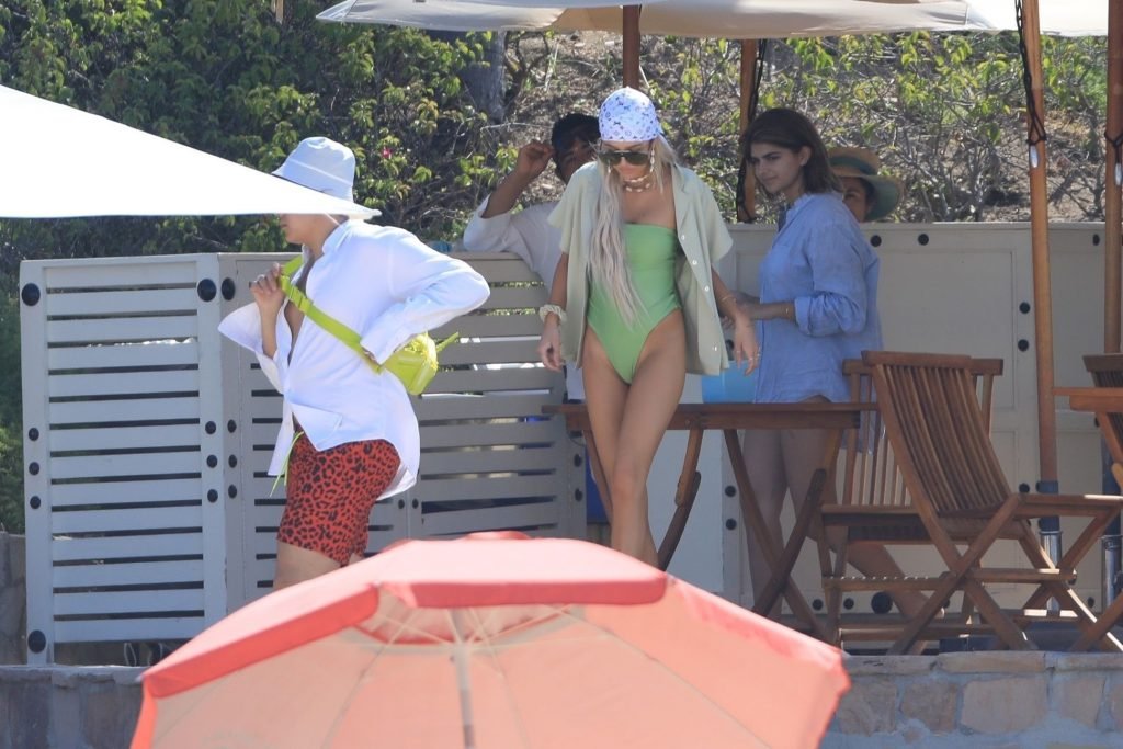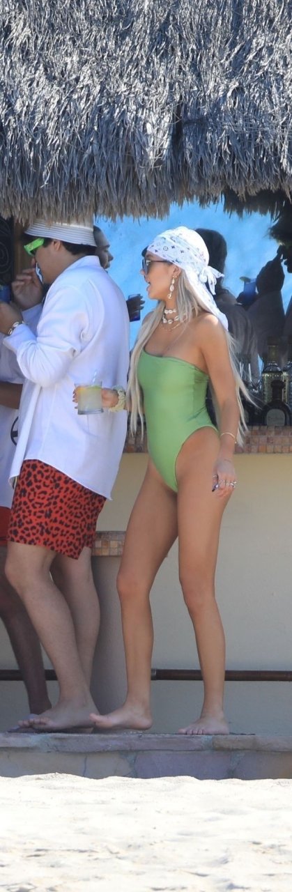 Delilah e Amelia Hamlin comemoram seus aniversários juntas em Cabo com amigos, 11/06/2019. Delilah foi vista aproveitando algumas bebidas enquanto desfruta do sol e surfa com seu maiô verde.