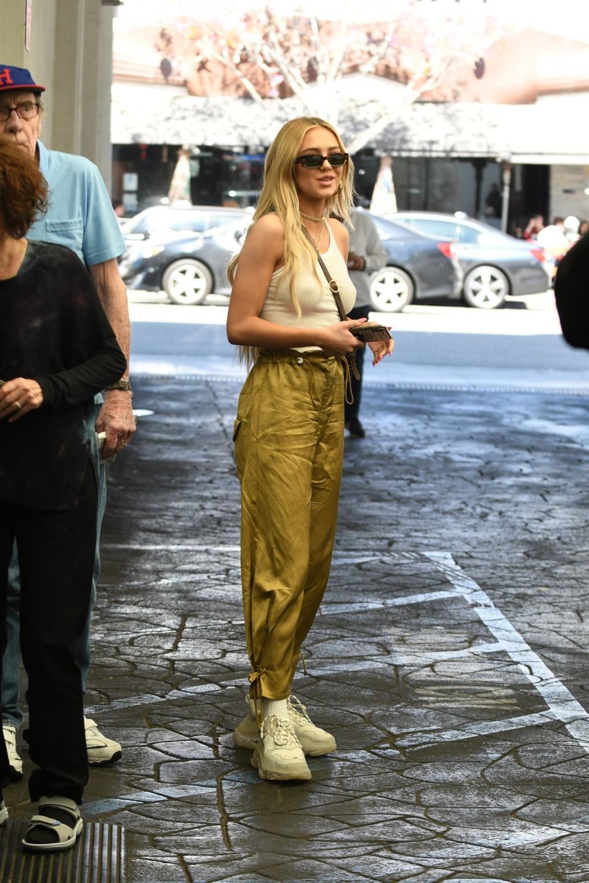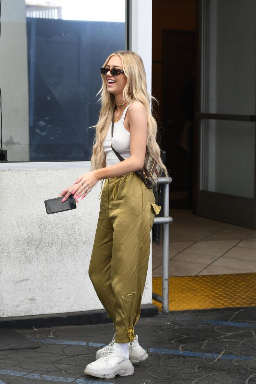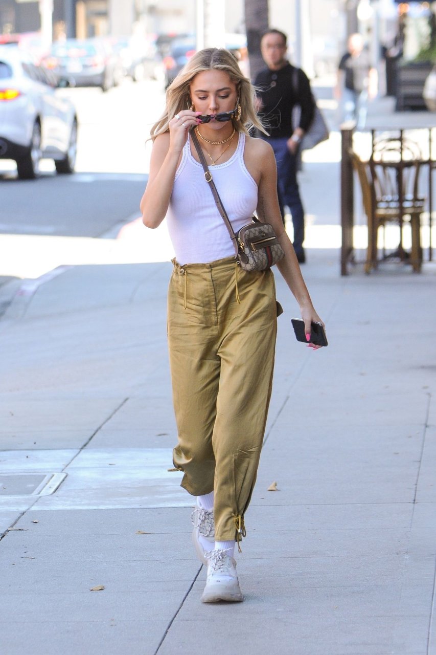 Delilah Hamlin visita salão de cuidados com a pele e almoça no E Baldiin em Beverly Hills, 18/04/2019. A estrela americana das redes sociais de 20 anos usava uma camiseta branca sem sutiã. Ela é uma membro VIP do clube No Bra!