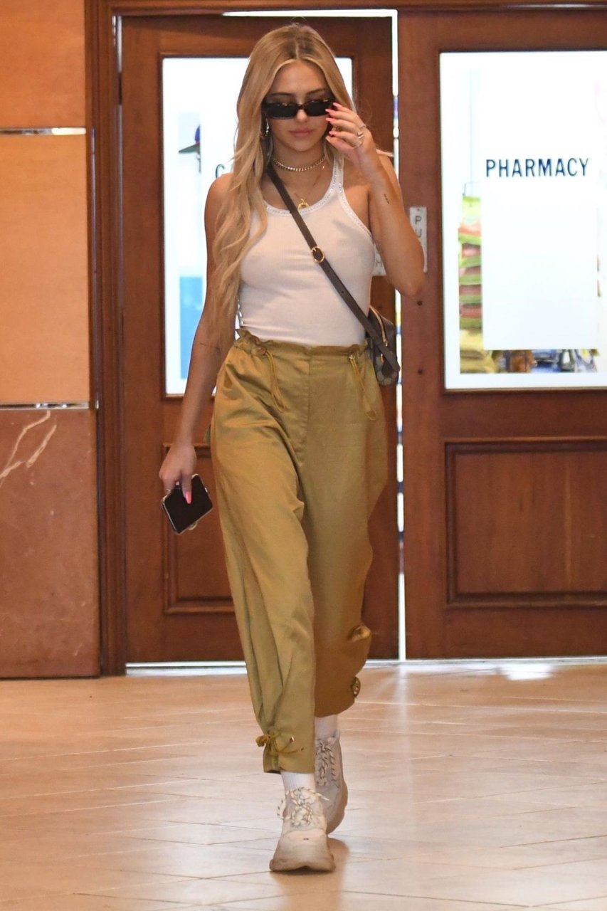 Ela {e Madison Beer} descobrem onde estão os fotógrafos e então não usam sutiã e desfilam por aí. Ela PENSA que é SEXY.....................vá olhar as fotos de Lais Rebeiro {aqui} e compare. LOL