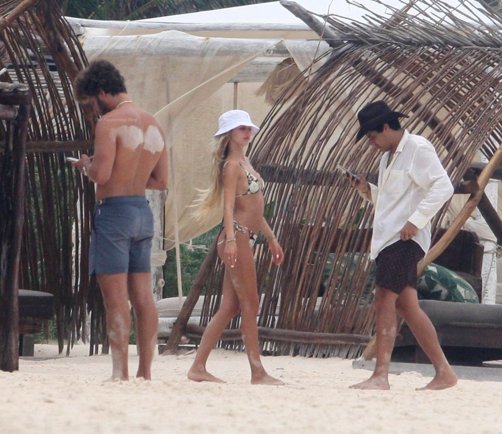 Delilah Hamlin exibiu seu corpo impecável de biquíni na praia em Tulum, México. A loira de 23 anos está atualmente aproveitando umas férias ensolaradas com seu namorado, Eyal Booker.