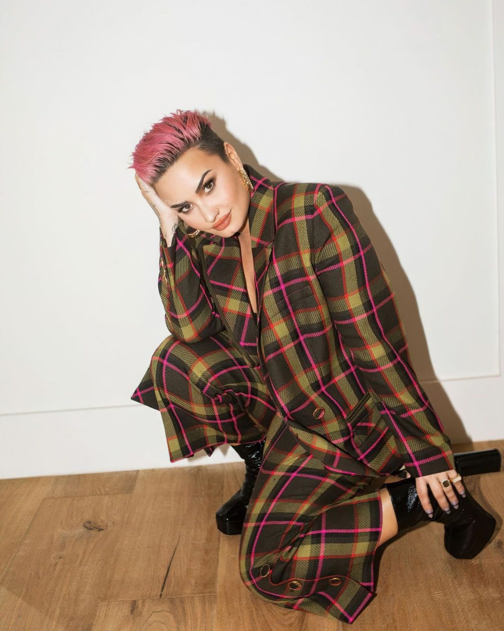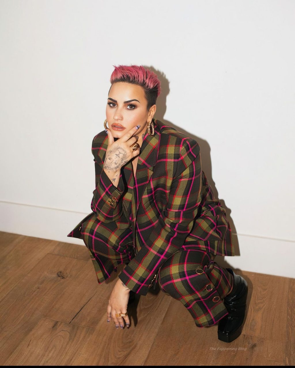Demi Lovato posa em um novo ensaio fotográfico de Angelo Kritikos (fevereiro de 2021). A cantora está quente enquanto exibe seu seio com mamilo perfurado, vestindo uma blusa preta sem sutiã.
