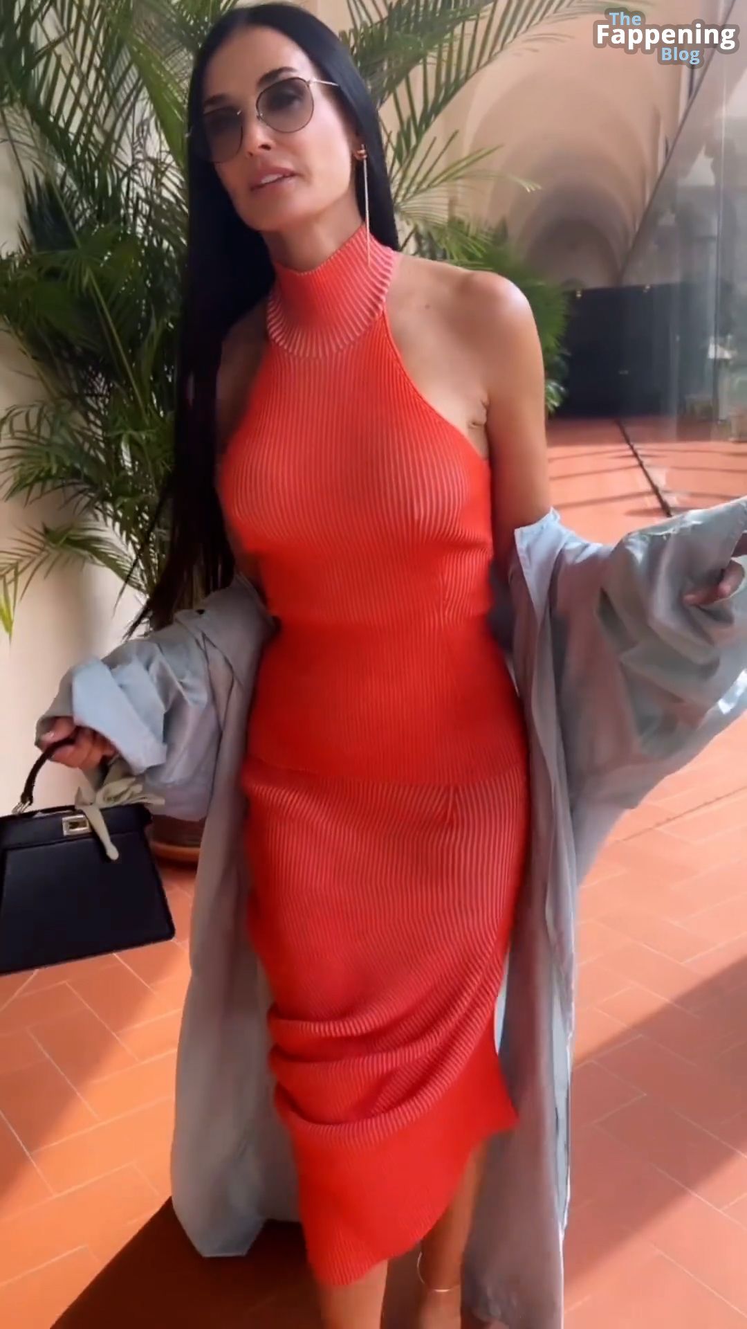 Vestindo um vestido vermelho justo e sexy, ela optou por não usar sutiã e deixou seus seios roubarem a cena. Seus mamilos estavam visíveis, criando uma vibe de “pokies” muito quente enquanto ela chegava ao evento. Demi sabe como fazer uma entrada triunfal e manter todos os olhos nela. Ela é uma verdadeira rainha do estilo!