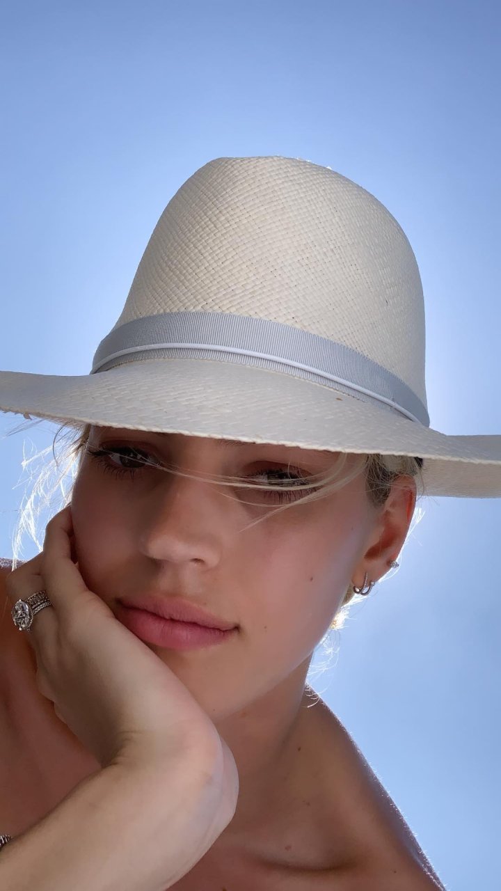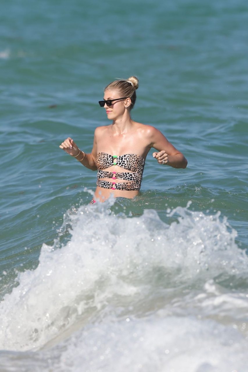 A bela modelo da Victoria’s Secret usava o cabelo preso em um coque e ostentava sua silhueta em um design de estampa de leopardo com fivelas neon. Gabby, que havia acabado de desembarcar de um voo, usava um biquíni preto simples.
