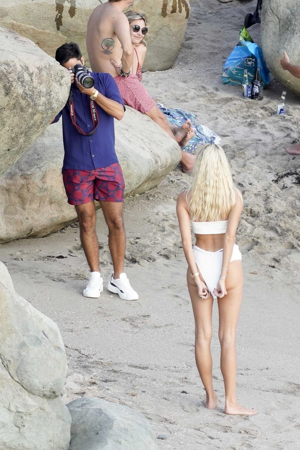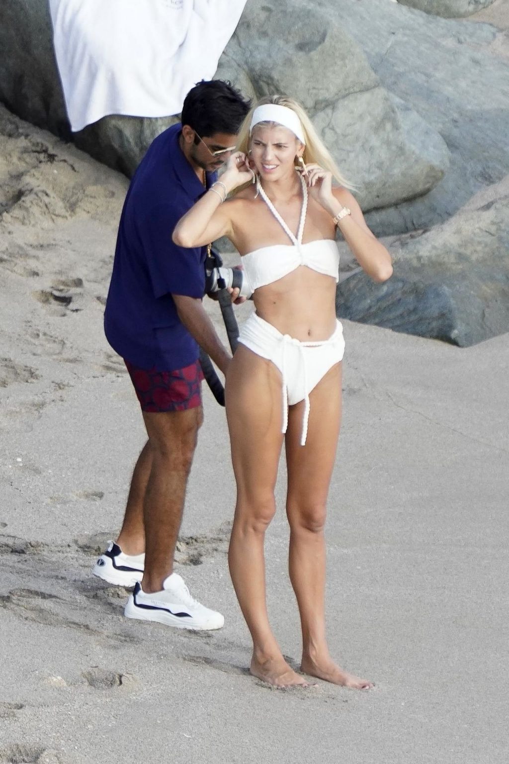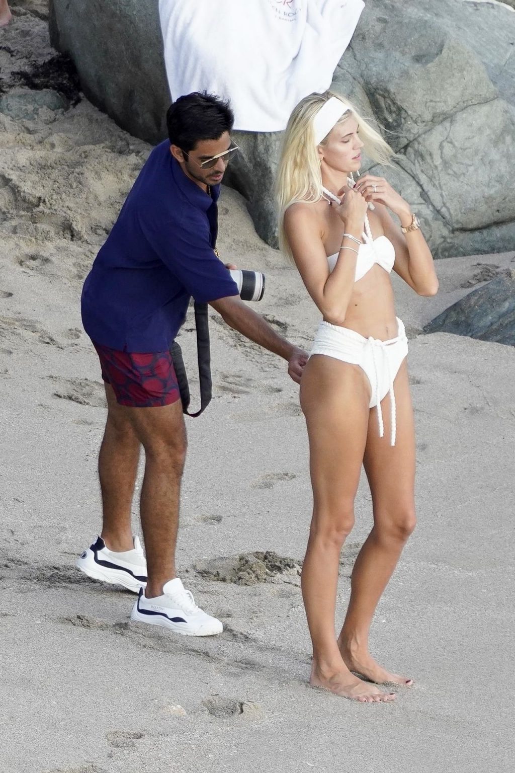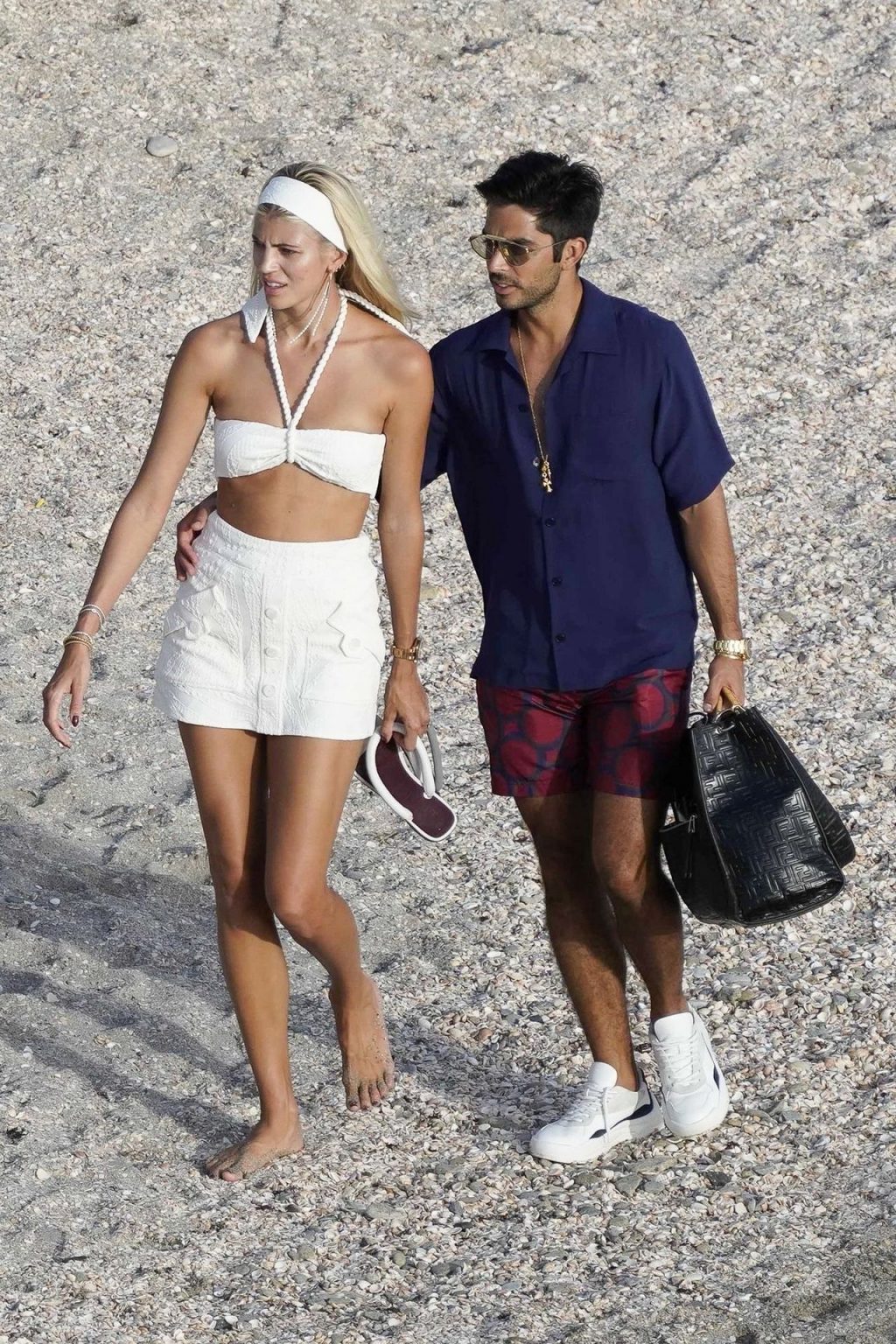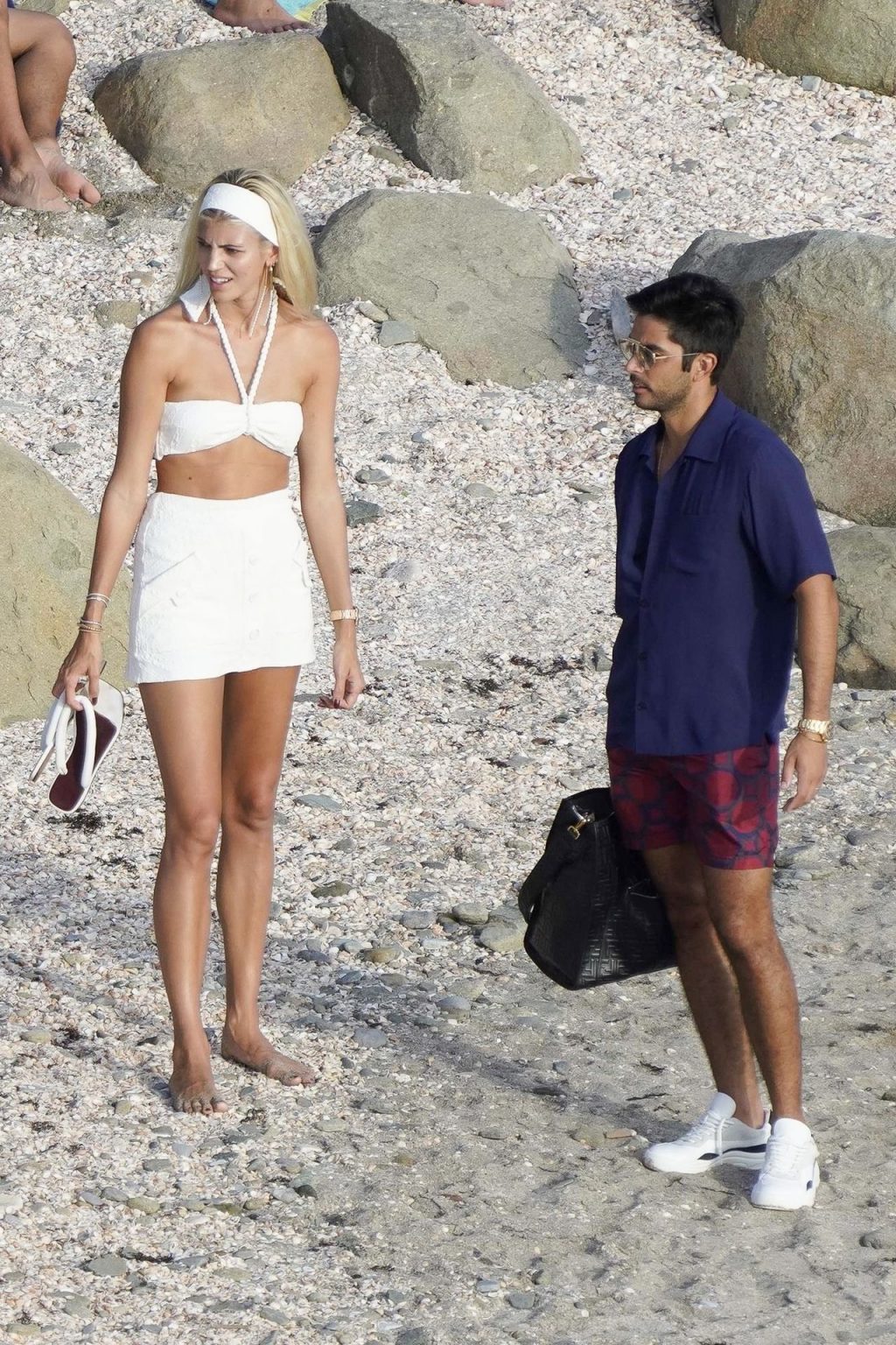 A modelo Devon Windsor exibe sua silhueta em um biquíni branco enquanto ela e seu marido Johnny Barbara comemoram o primeiro aniversário de casamento em St. Barts, 14/11/2020.