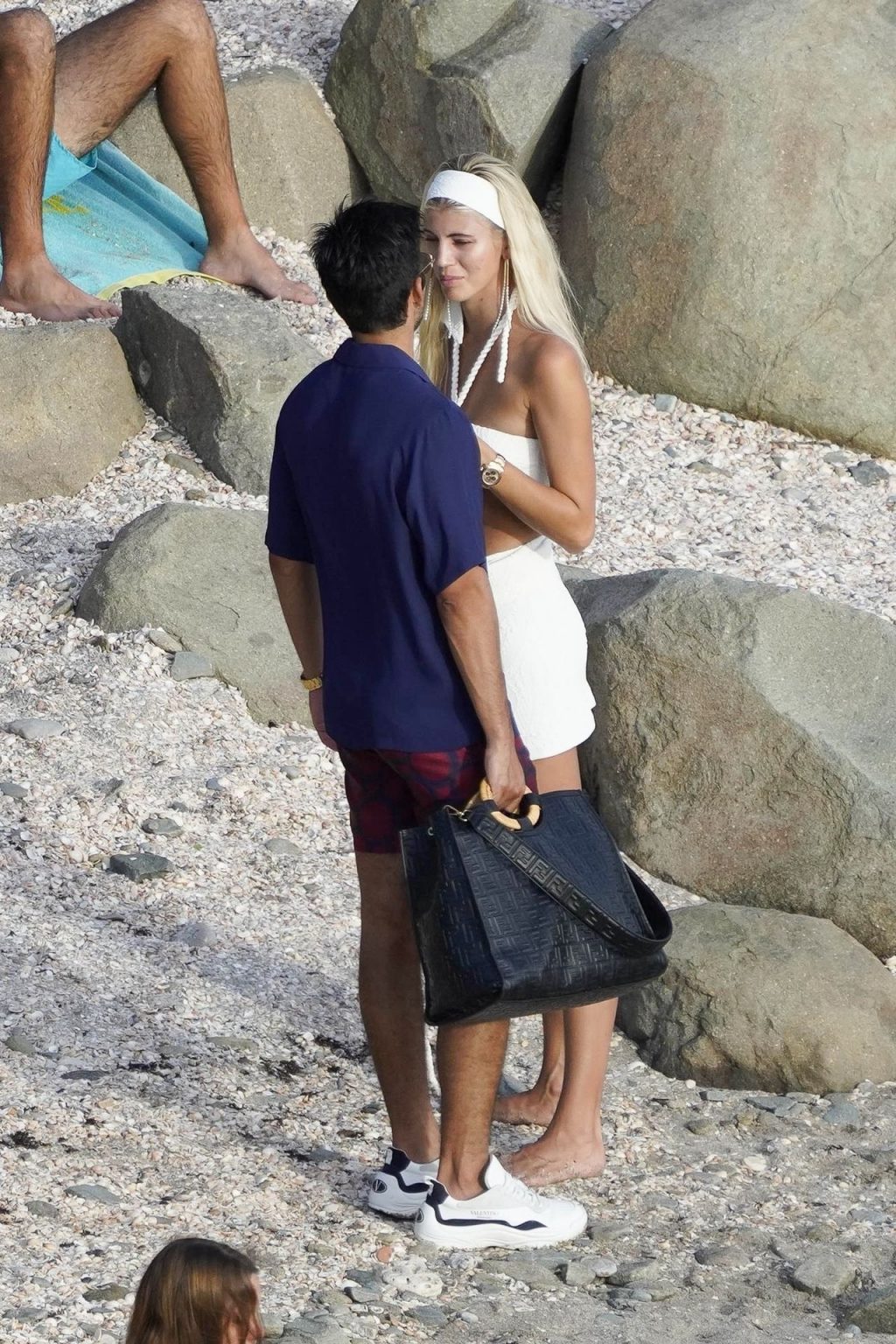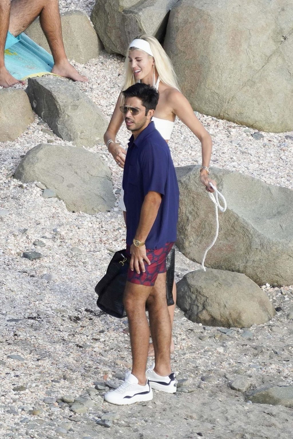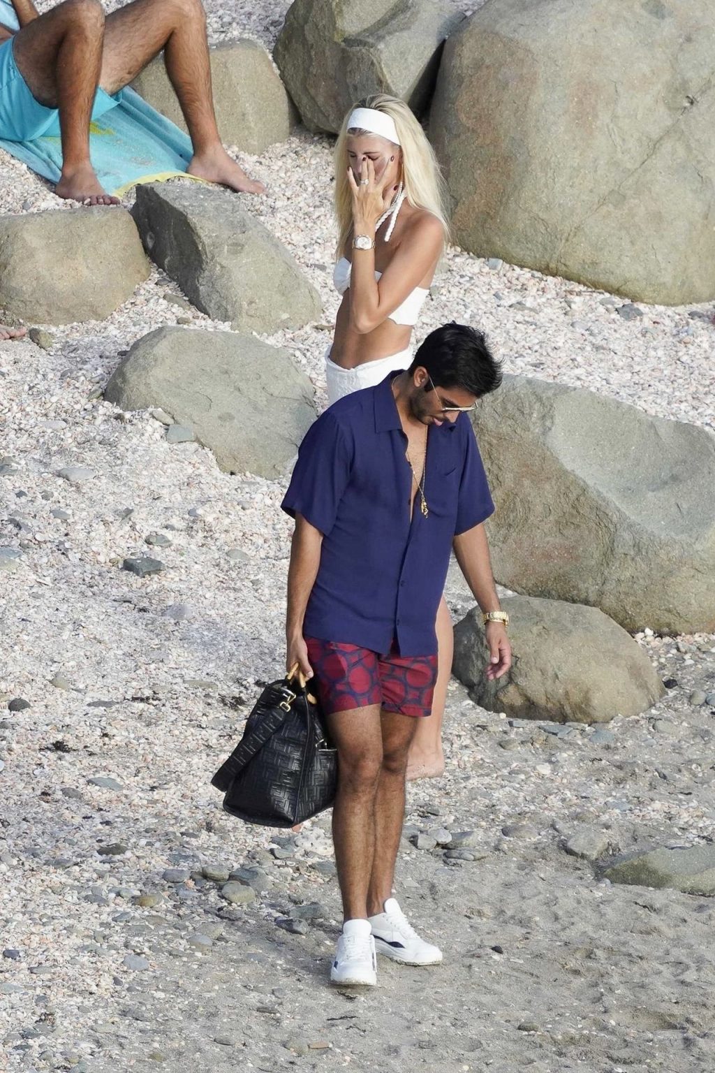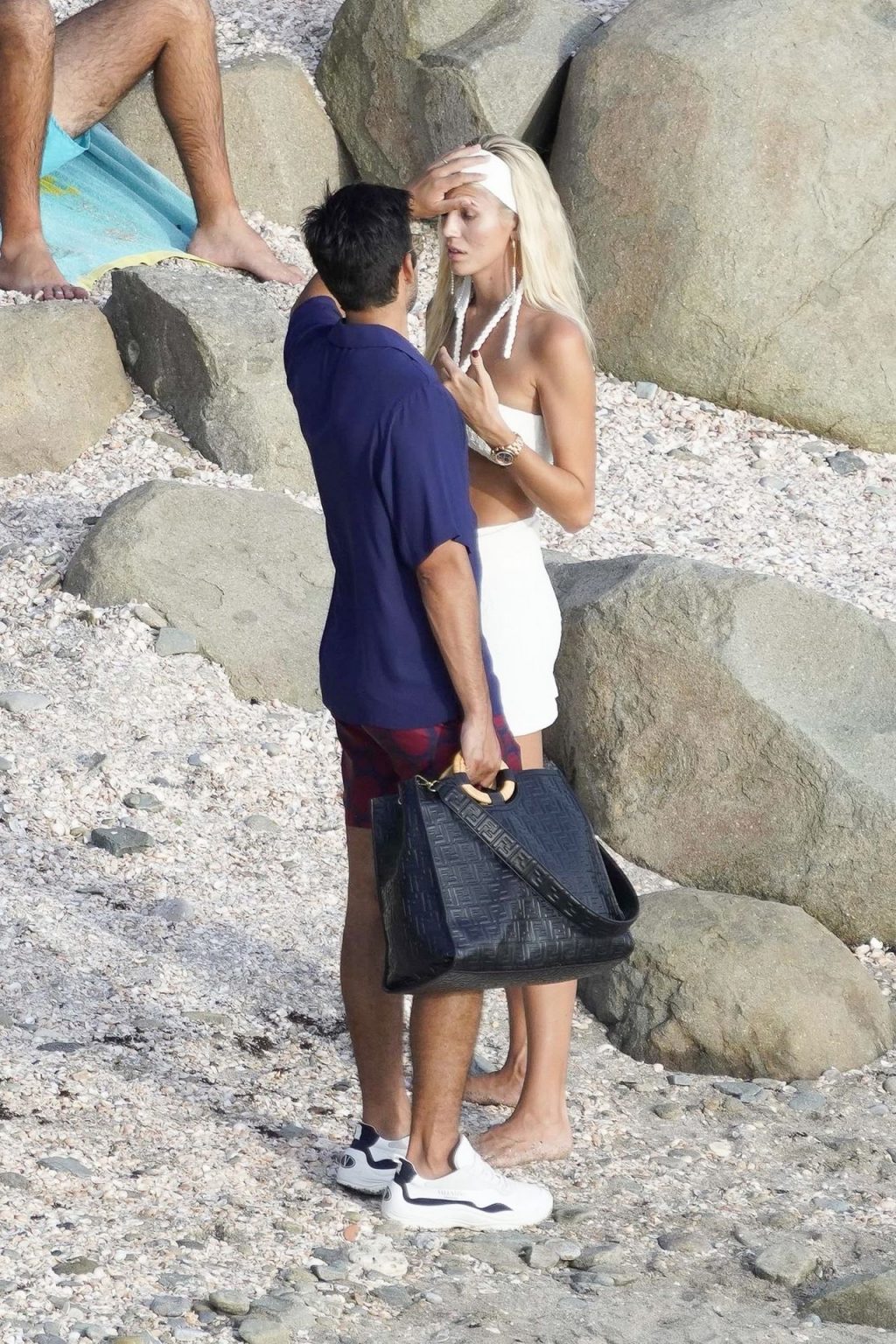 A modelo Devon Windsor exibe sua silhueta em um biquíni branco enquanto ela e seu marido Johnny Barbara comemoram o primeiro aniversário de casamento em St. Barts, 14/11/2020.