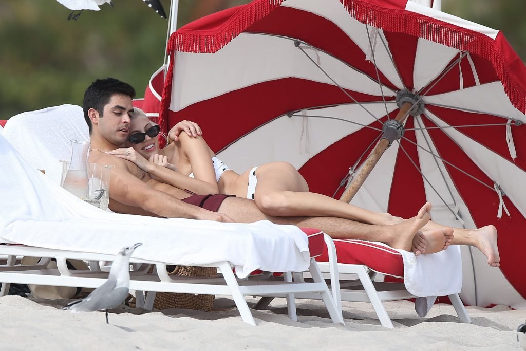 Com menos de uma semana para o grande desfile da Victoria’s Secret em Nova York, Devon parecia despreocupada e totalmente apaixonada enquanto se aconchegava ao seu amado antes de dar um mergulho no oceano.