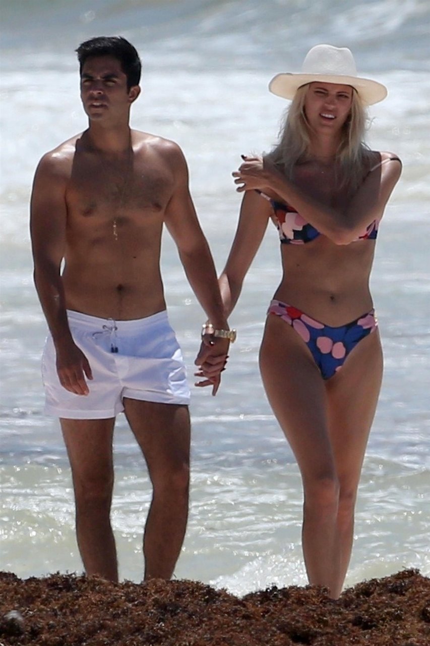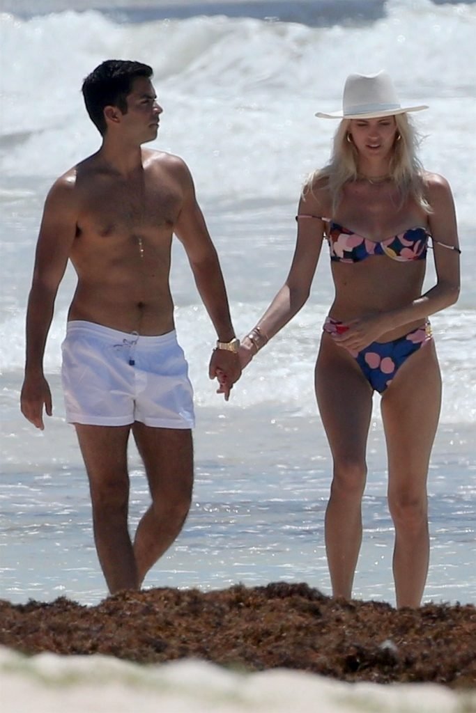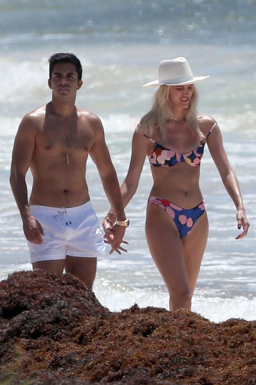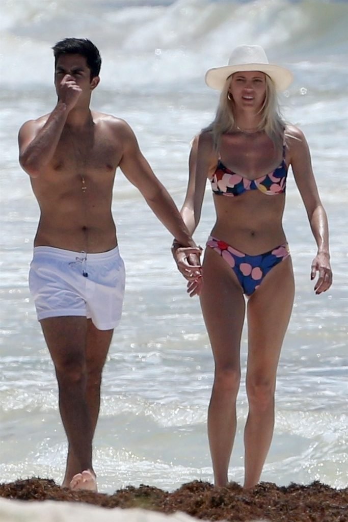 Model Devon Windsor (24) e seu namorado Johnny Dex foram vistos exibindo seus corpos perfeitos na praia em Tulum, México, 10/06/2018. Os dois estão no México para o ensaio fotográfico de Devon para a Net-a-Porter.