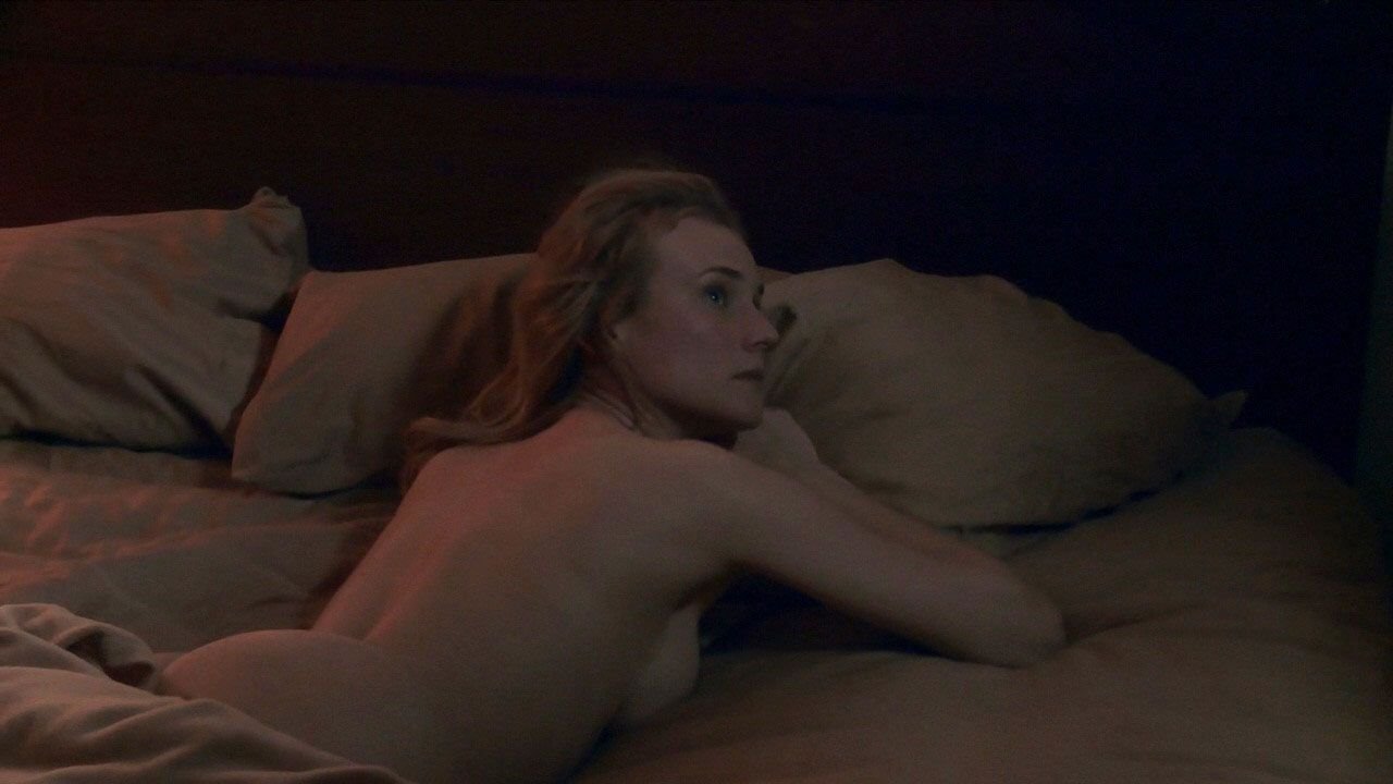Diane Kruger acorda deitada nua, mostrando a maior parte das costas e seios quando se vira.