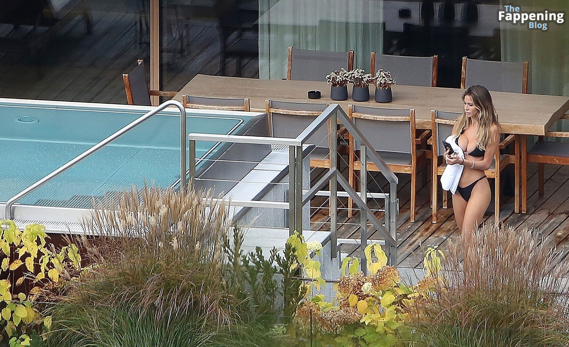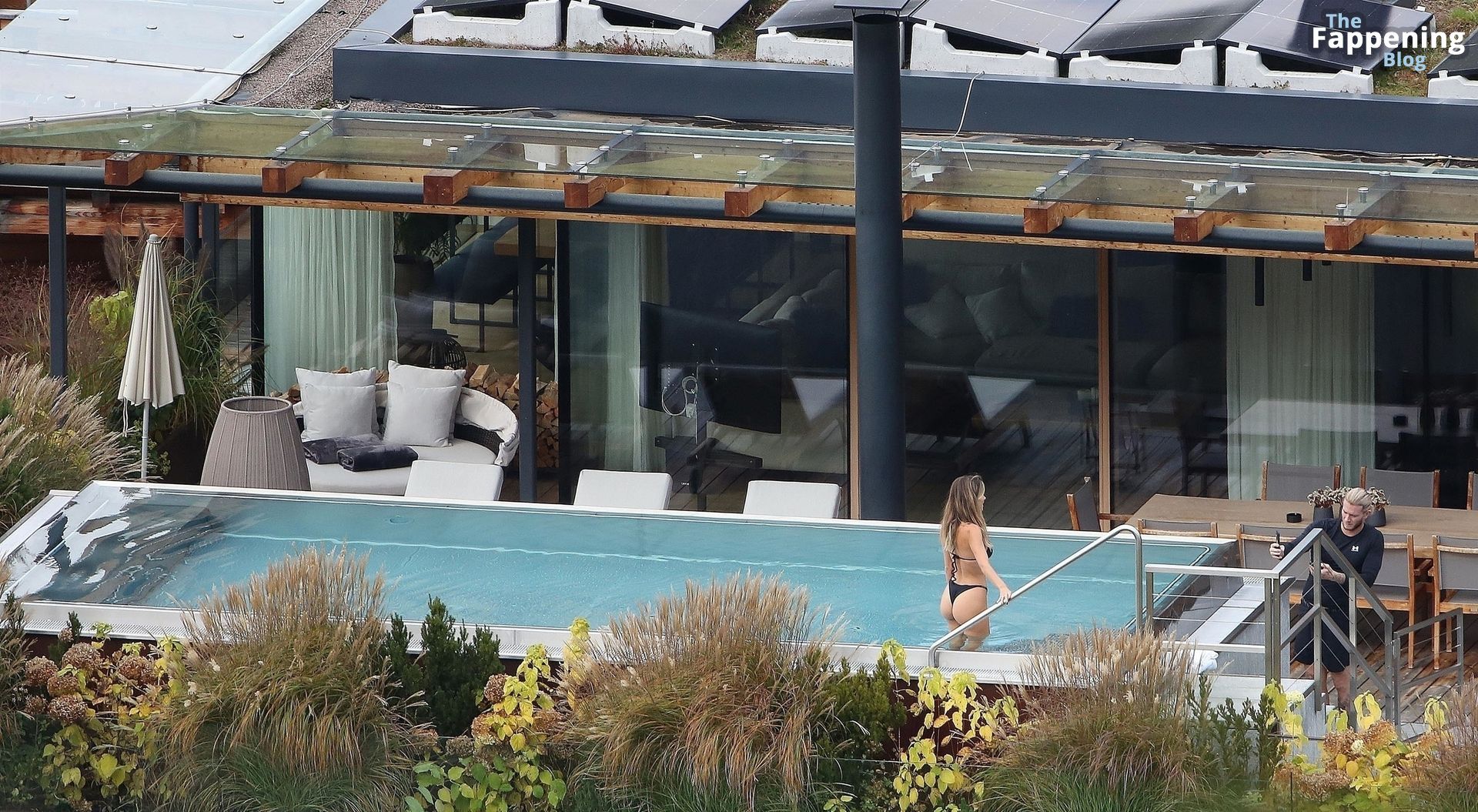 O casal, que se casou em junho, aproveitou um passeio em família e depois relaxou na piscina, onde Diletta exibiu sua silhueta sensual em um biquíni preto ousado.