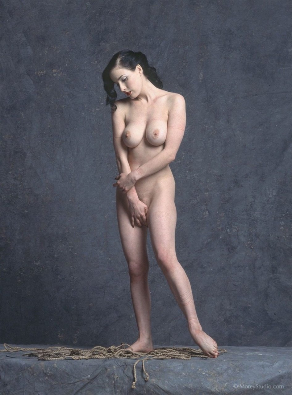 A Rainha do Burlesco Dita Von Teese mostrou seu frontal completo em um ensaio fotográfico nu por Craig Morey (2001).