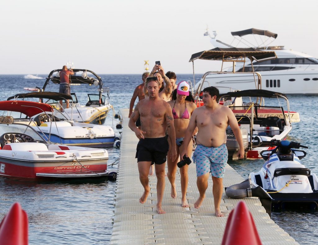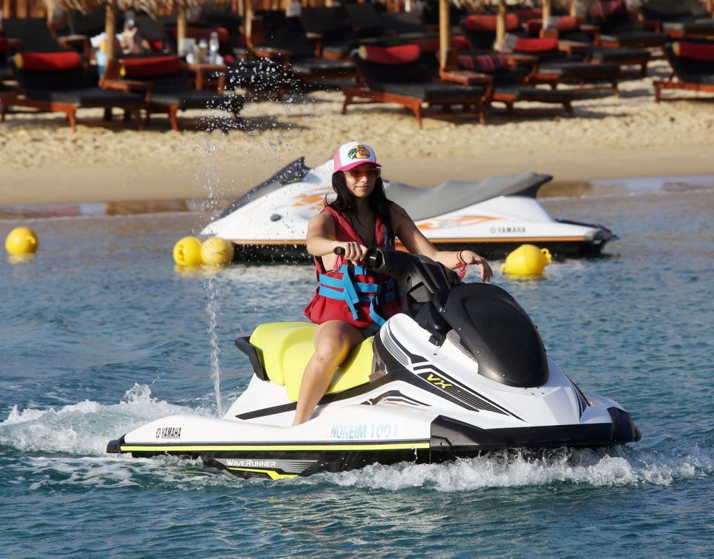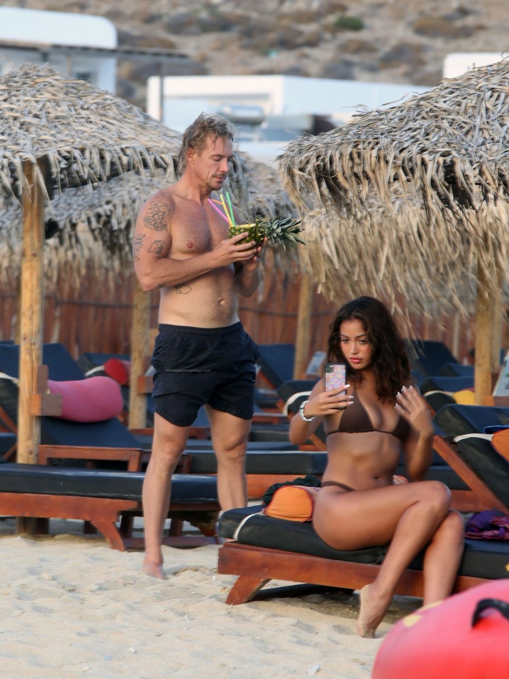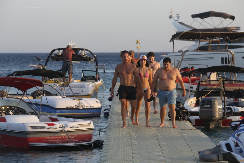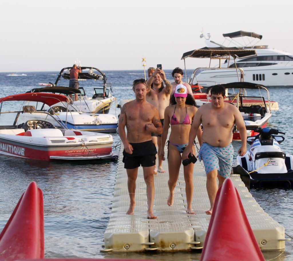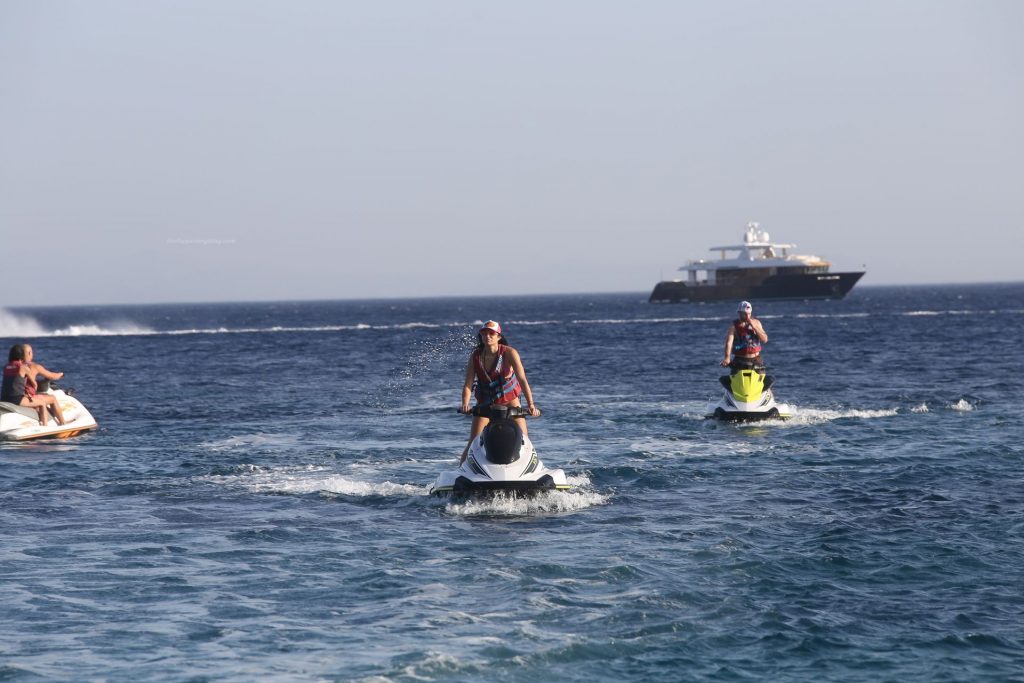 DJ Diplo foi visto visitando o Centro de Esportes Aquáticos Elia para praticar esqui aquático em Mykonos, Grécia, 08/04/2021. Diplo também foi visto com um grupo de amigas de biquíni incluindo Chantel Jeffries.