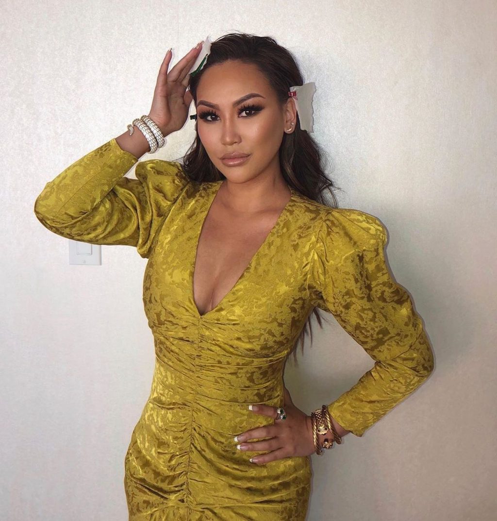 A estrela de reality show Dorothy Wang foi vista em um vestido amarelo no 3º Annual #REVOLVEawards 2019 realizado no Goya Studios em Hollywood, 15/11/2019.