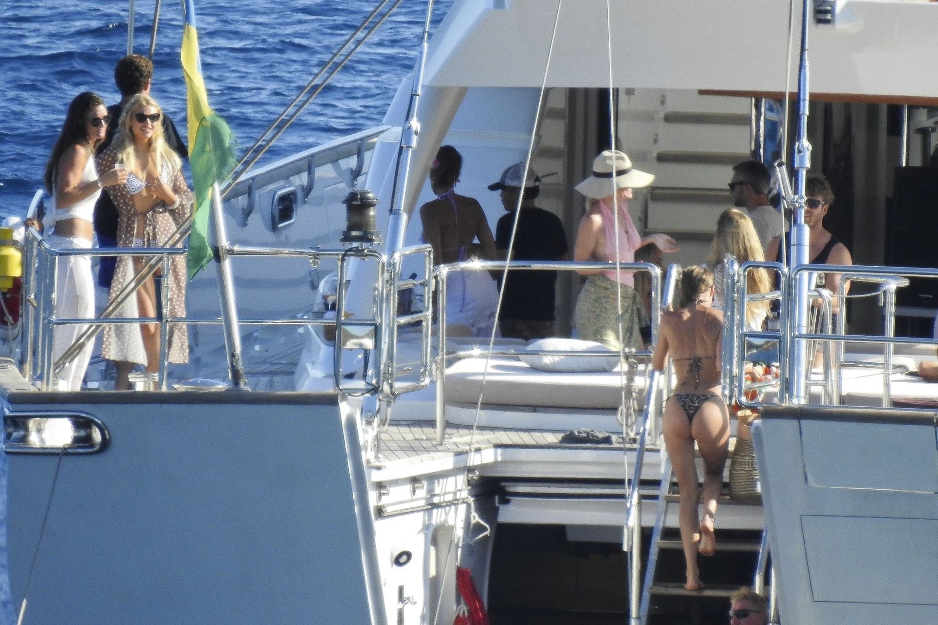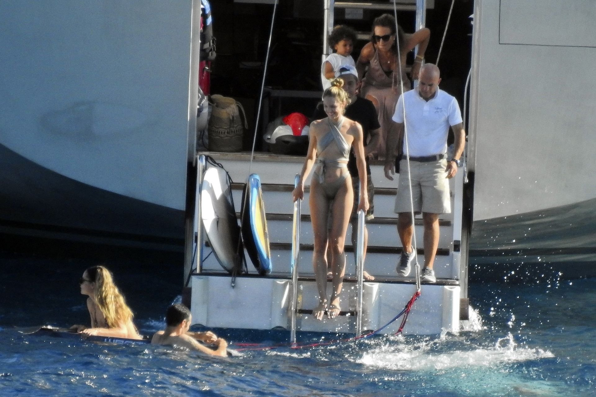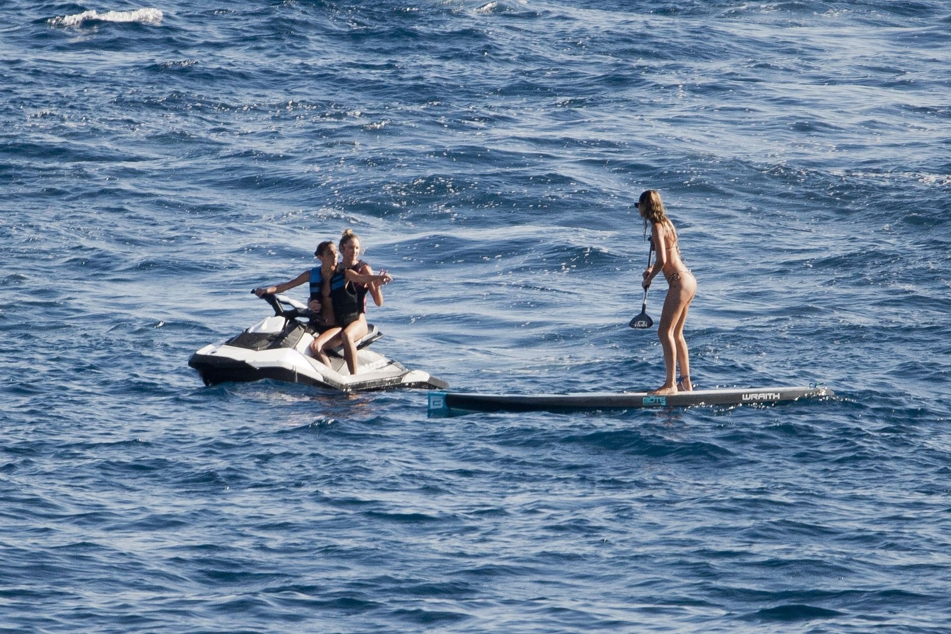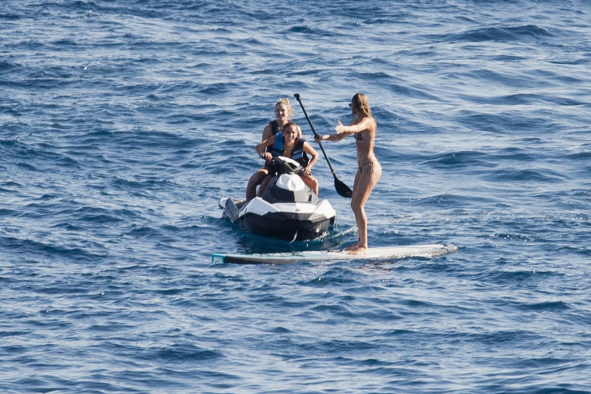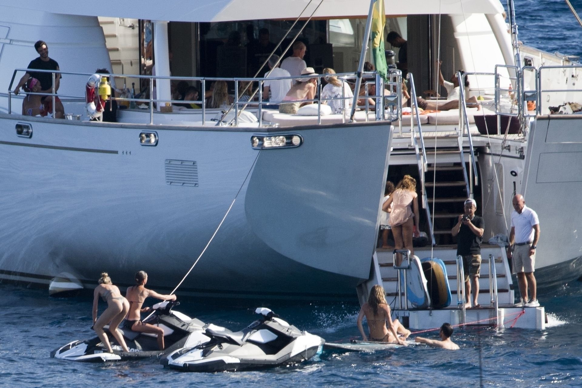 DJs Sunnery James e Ryan Marciano, o ator Glenn Powell e as supermodelos Doutzen Kroes, Candice Swanepoel, Joan Smalls começam a festa a bordo de uma embarcação de luxo em Ibiza, 14/08/2019. Também a bordo estão o produtor de cinema Mohamed al Turki e o socialite Richie Akiva.