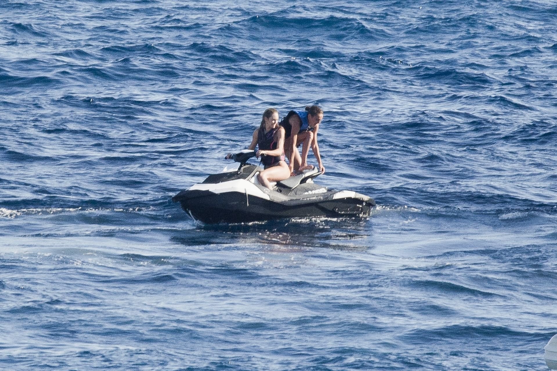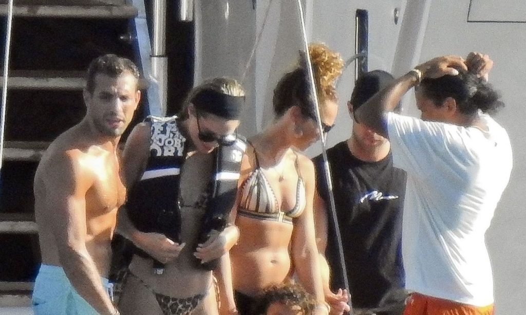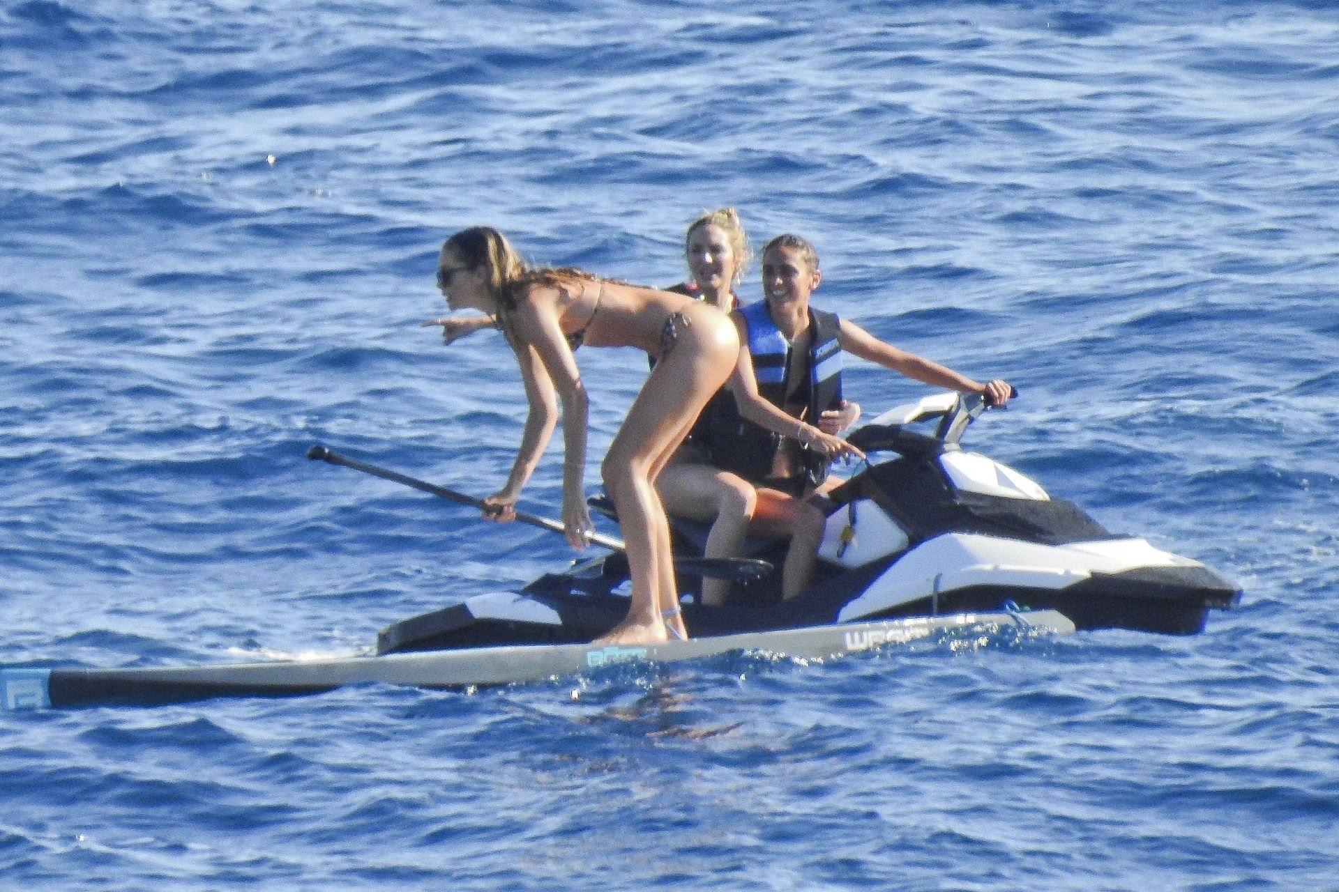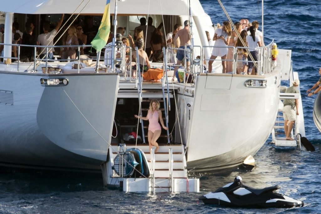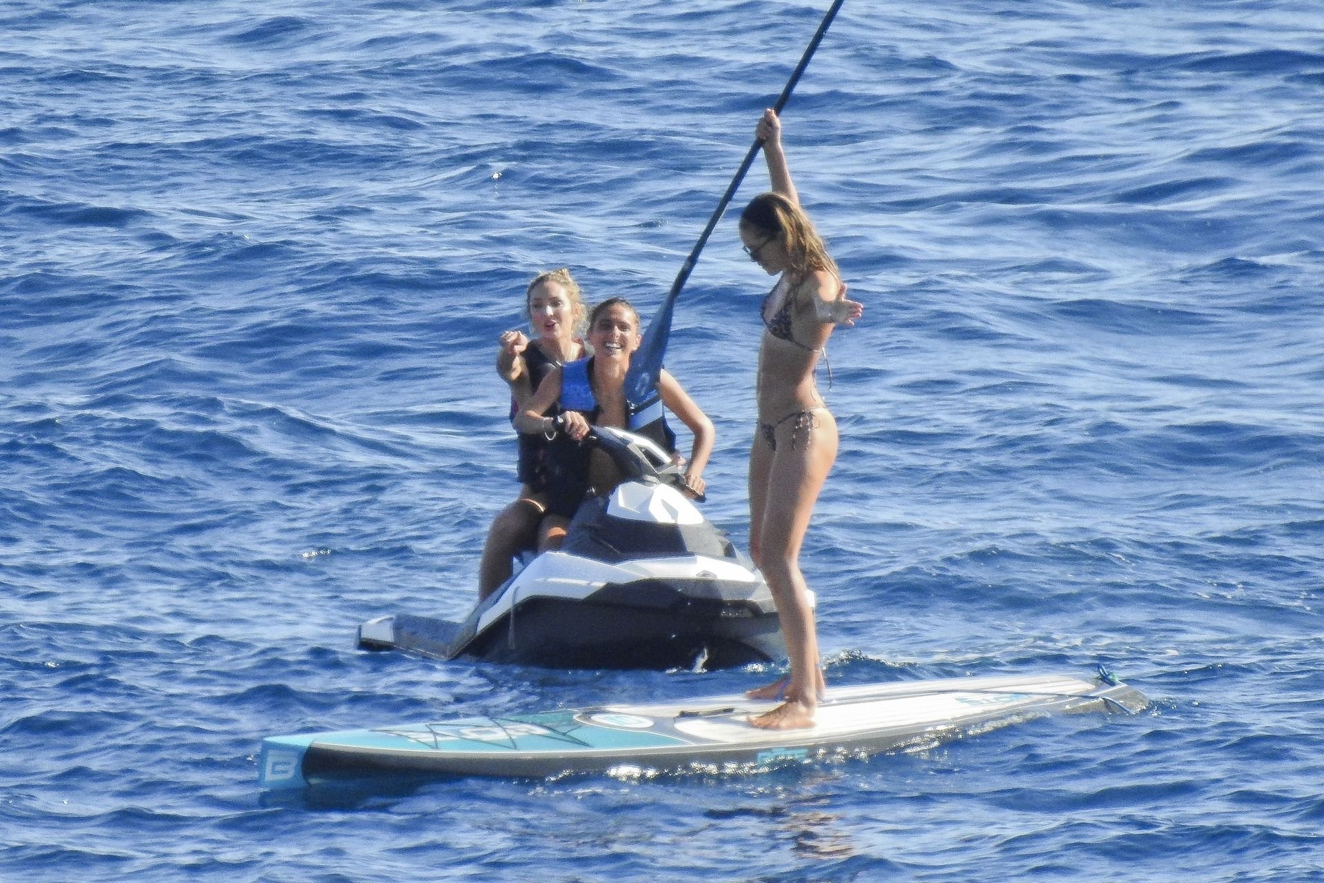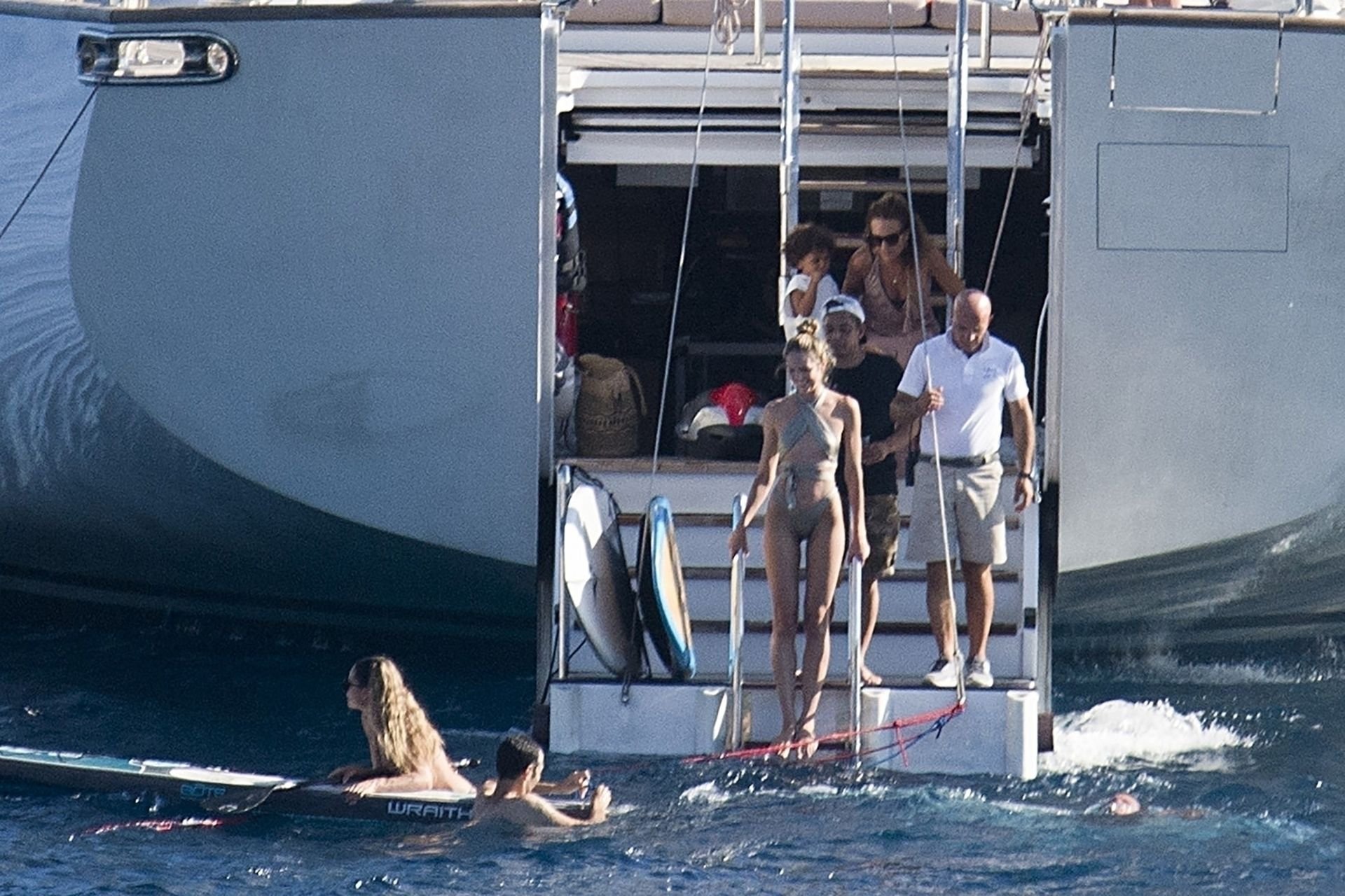 DJs Sunnery James e Ryan Marciano, o ator Glenn Powell e as supermodelos Doutzen Kroes, Candice Swanepoel, Joan Smalls começam a festa a bordo de uma embarcação de luxo em Ibiza, 14/08/2019. Também a bordo estão o produtor de cinema Mohamed al Turki e o socialite Richie Akiva.