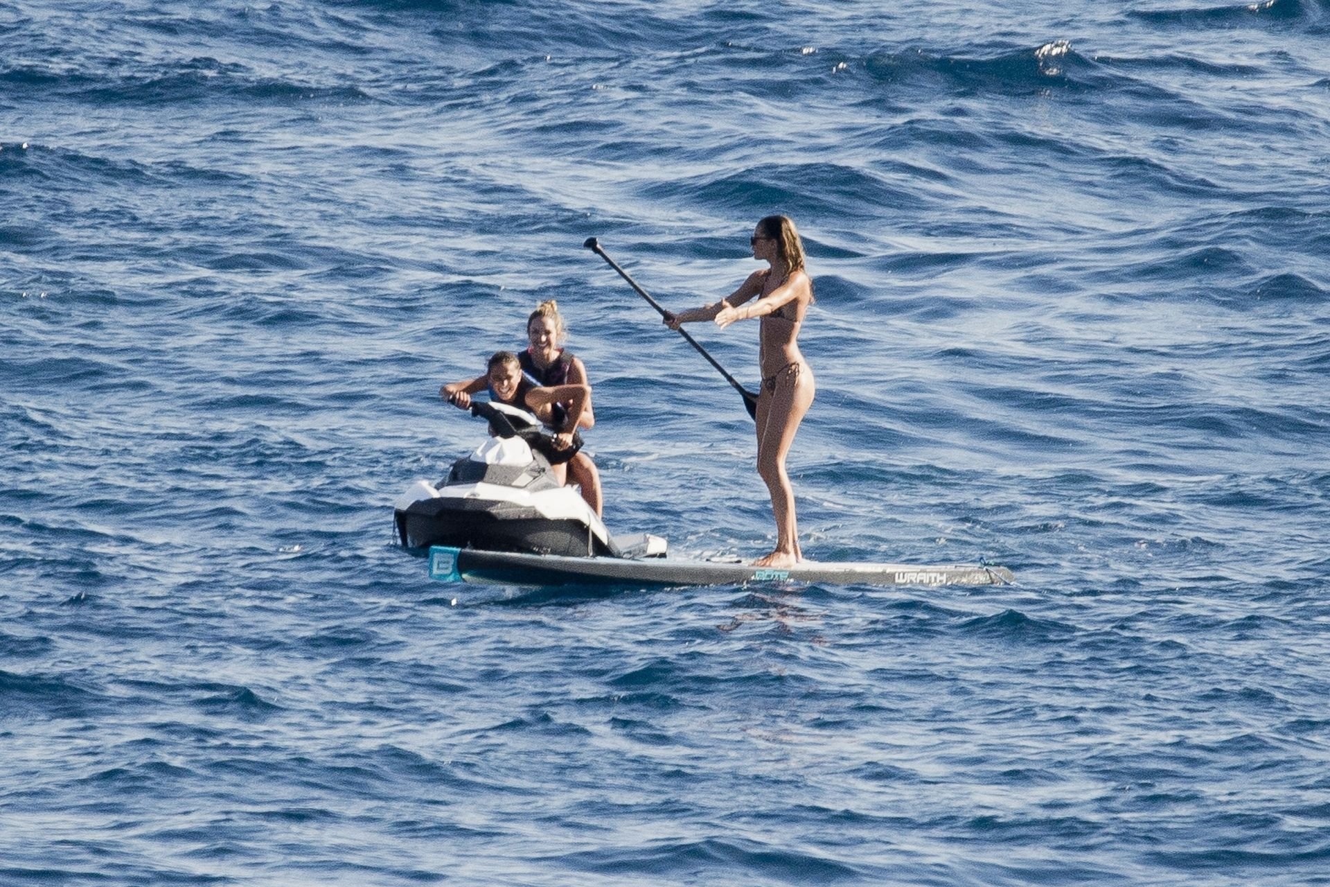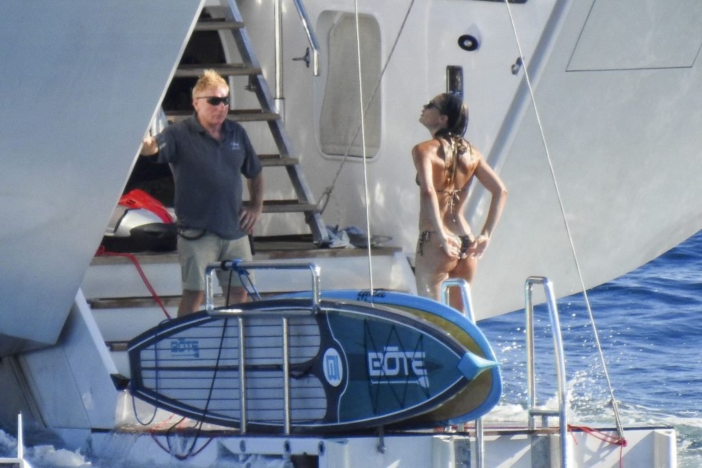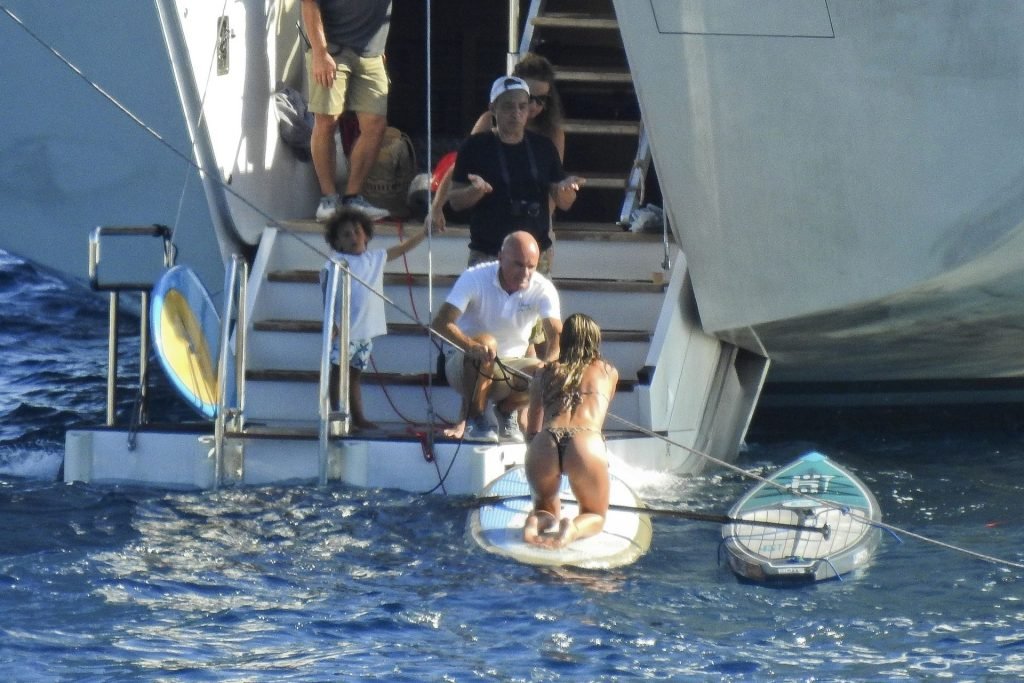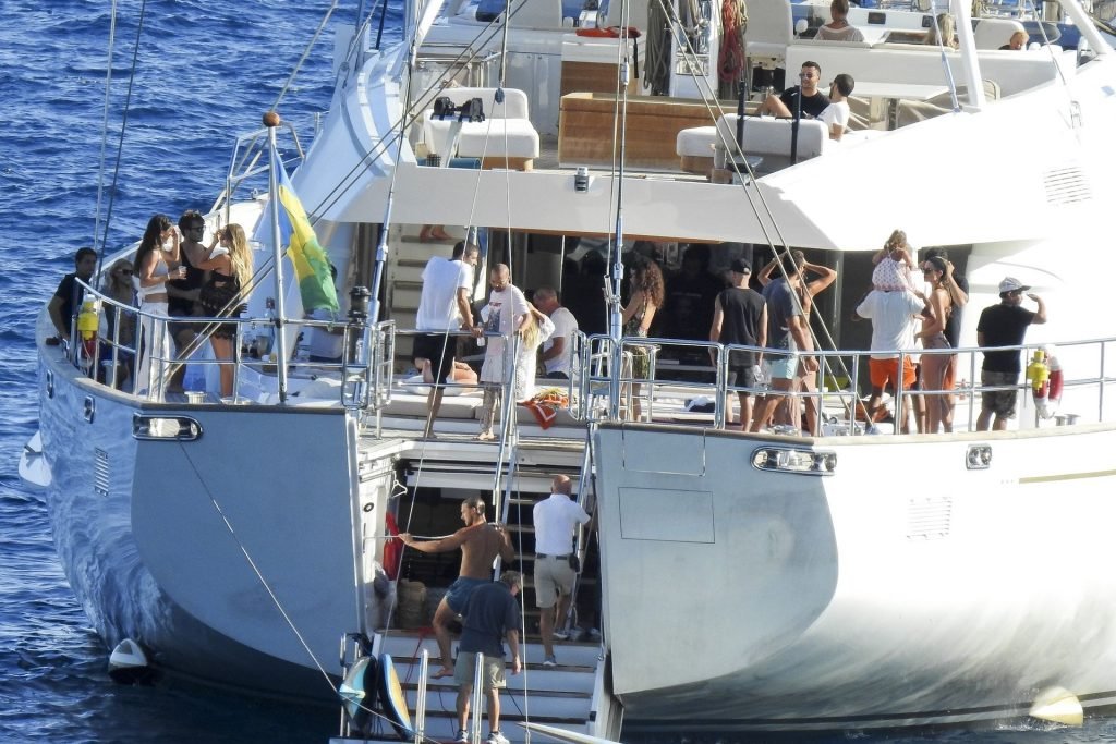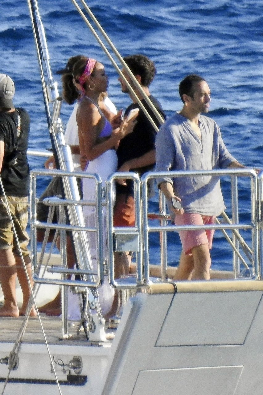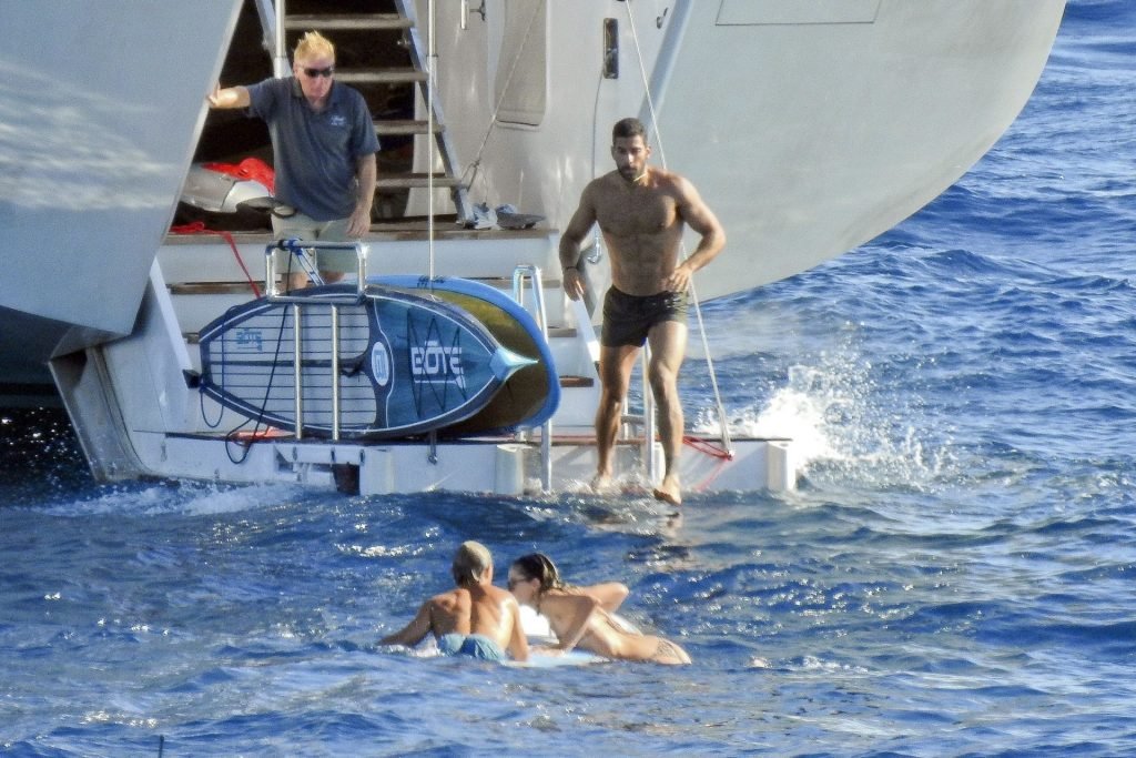 DJs Sunnery James e Ryan Marciano, o ator Glenn Powell e as supermodelos Doutzen Kroes, Candice Swanepoel, Joan Smalls começam a festa a bordo de uma embarcação de luxo em Ibiza, 14/08/2019. Também a bordo estão o produtor de cinema Mohamed al Turki e o socialite Richie Akiva.
